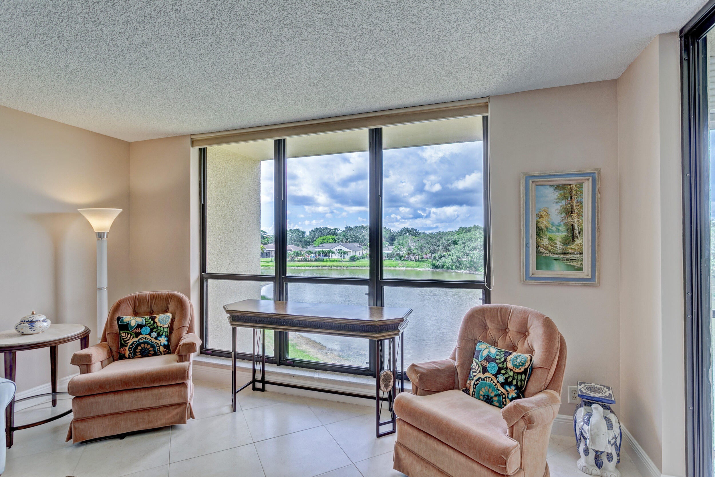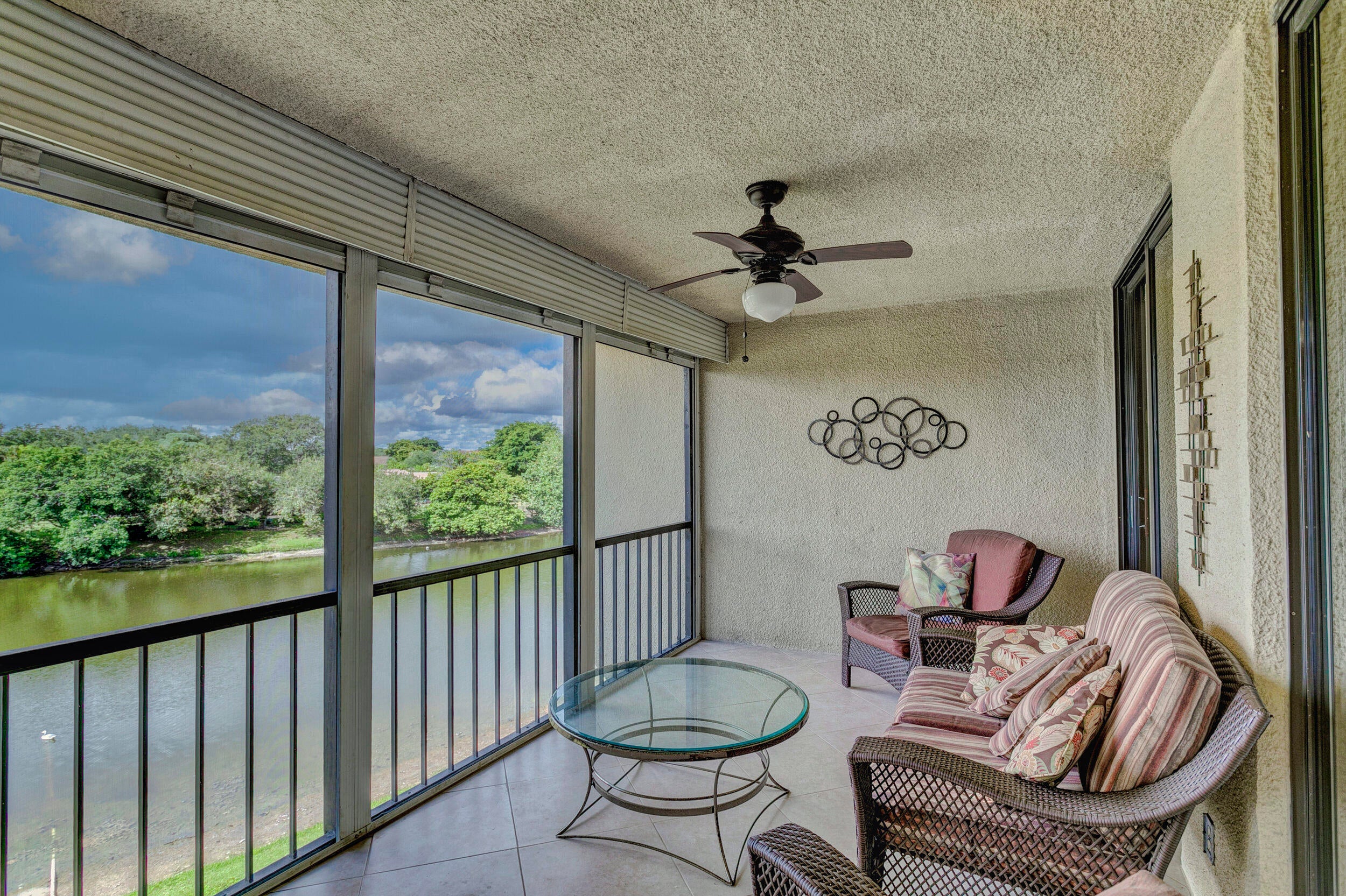 Fabulous 2 bedroom, 2 bath condo with beautiful lake views from every room! Eat in kitchen, covered, screened balcony is shaded all afternoon & evening for enjoyment. Large utility room with full sized washer & dryer plus extra storage. Offered nicely furnished and turnkey! Rent includes all utilities plus cable and high speed internet! Tenant pays electric over $100/mo. Neighborhood has 3 heated pools, 2 tennis/pickleball courts, lakeside clubhouse. Lots of green space to enjoy quiet walks under majestic oaks and past serene lakes! 55+ community close to everything! Pet friendly neighborhood allows 1 pet under 25 lb. Floor plan in document section. 1/2 mile to either I-95 or turnpike. Three grocery stores & multiple great restaurants all walkable! Available now!!!