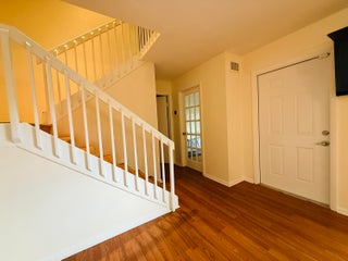 Spacious and charming NEWLY PAINTED 3/3 townhouse nestled in the serene & friendly community of Sherwood Lakes known for its scenic, natural beauty. Desirable open floor plan with 1BR & 1BA on first level. NEW roof, newer AC (2022), All NEW hardwood floors throughout. NEW fridge (2025). Primary suite features RENOVATED bathroom, walk-in closets & private balcony. Unit comes with complete set of hurricane shutters. 2 assigned parking spots in front with guest parking. Olympic-size heated community pool, baby pool, playground, walking trails, basketball & tennis courts just steps away! HOA covers amenities, roof, exterior painting, lawn/landscaping, reserves. Conveniently located near the beaches, shopping, restaurants, I-95, the FL Turnpike & PBA.
