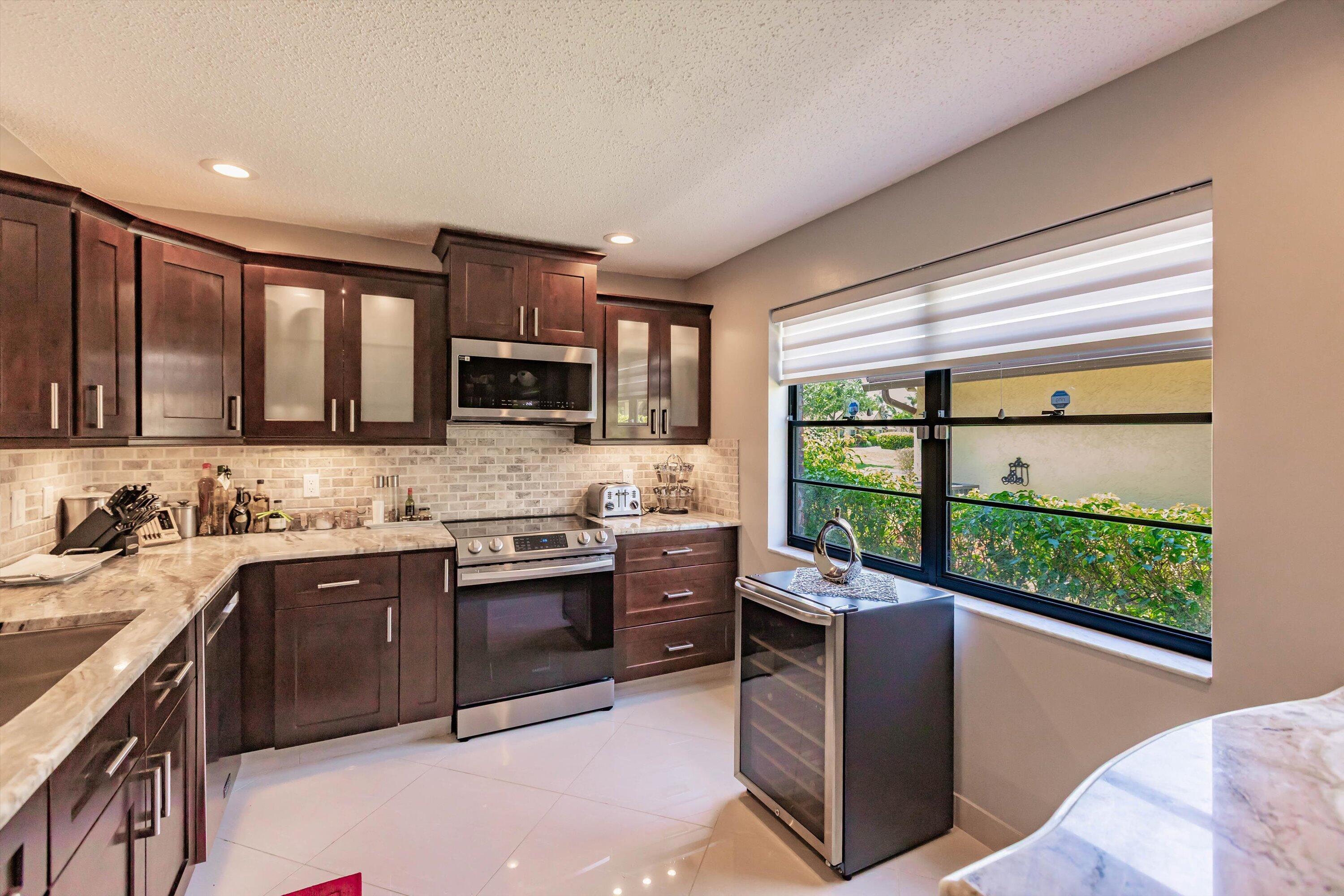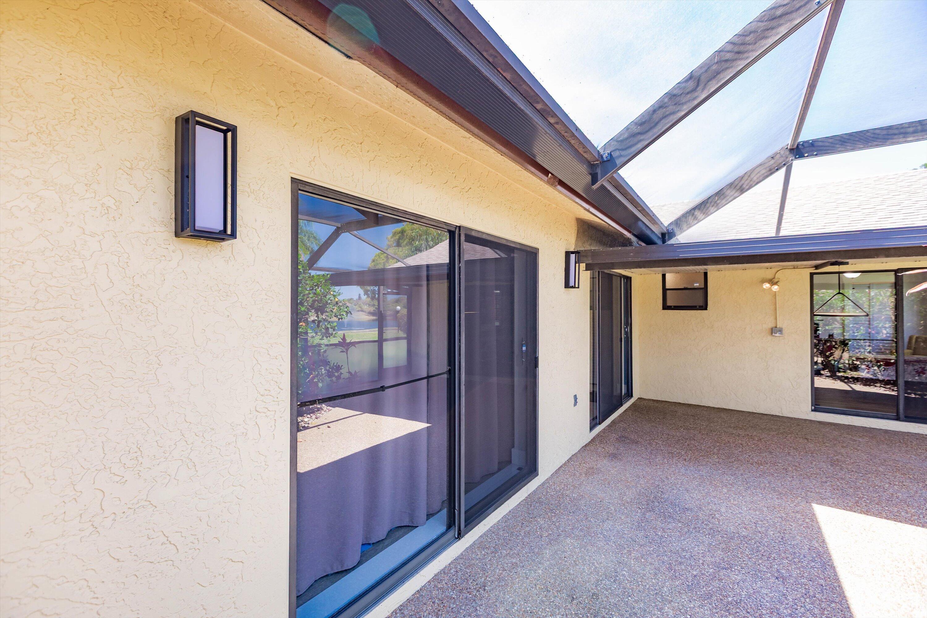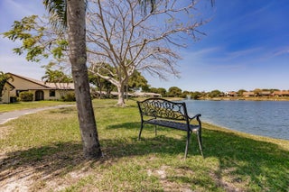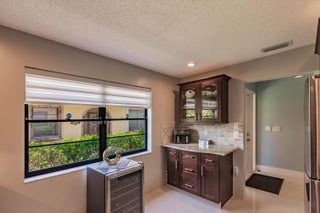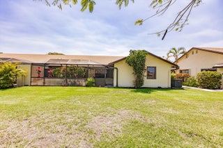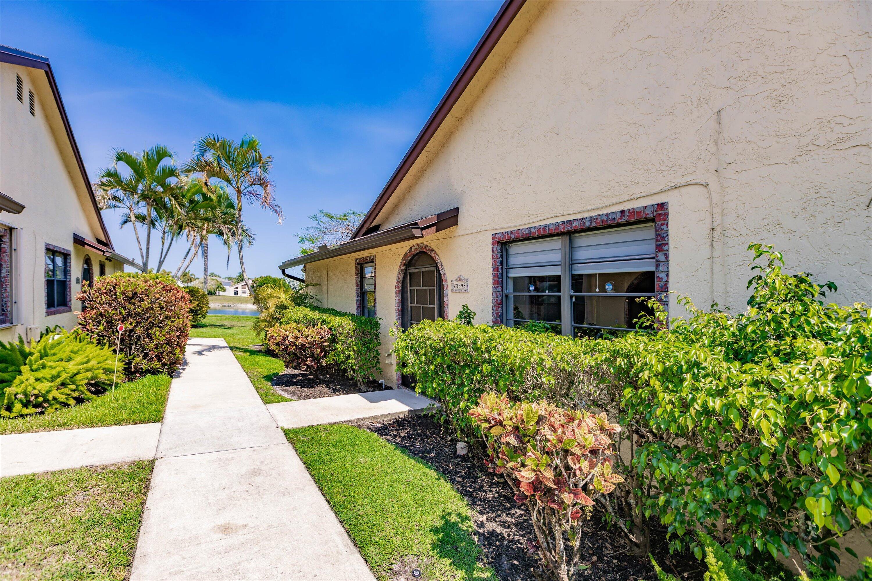Welcome to Lakes of Boca Barwood, a pet-friendly 55+ community! This beautifully updated 2-bedroom, 2-bath villa features the largest split-bedroom floor plan and offers stunning lake views. The kitchen, remodeled approximately 3 years ago, boasts stainless steel appliances and quartz countertops. Both the air conditioning and water heater are brand new, and the roof was replaced in 2022. The home has no polybutylene pipes.Spacious porcelain tile floors run through the main living areas, while the bedrooms have brand new waterproof floors. Enjoy the expansive screened-in patio, accessible through sliding glass doors from both bedrooms and the living room--perfect for indoor-outdoor living, rain or shine.Both bedrooms offer large closets, and the oversized laundry room is under air for added convenience. The bathrooms feature updated vanities, toilets, and sinks. Assigned covered parking includes extra storage, and the community offers a clubhouse, tennis courts, and a scenic jogging/walking path around the lake.