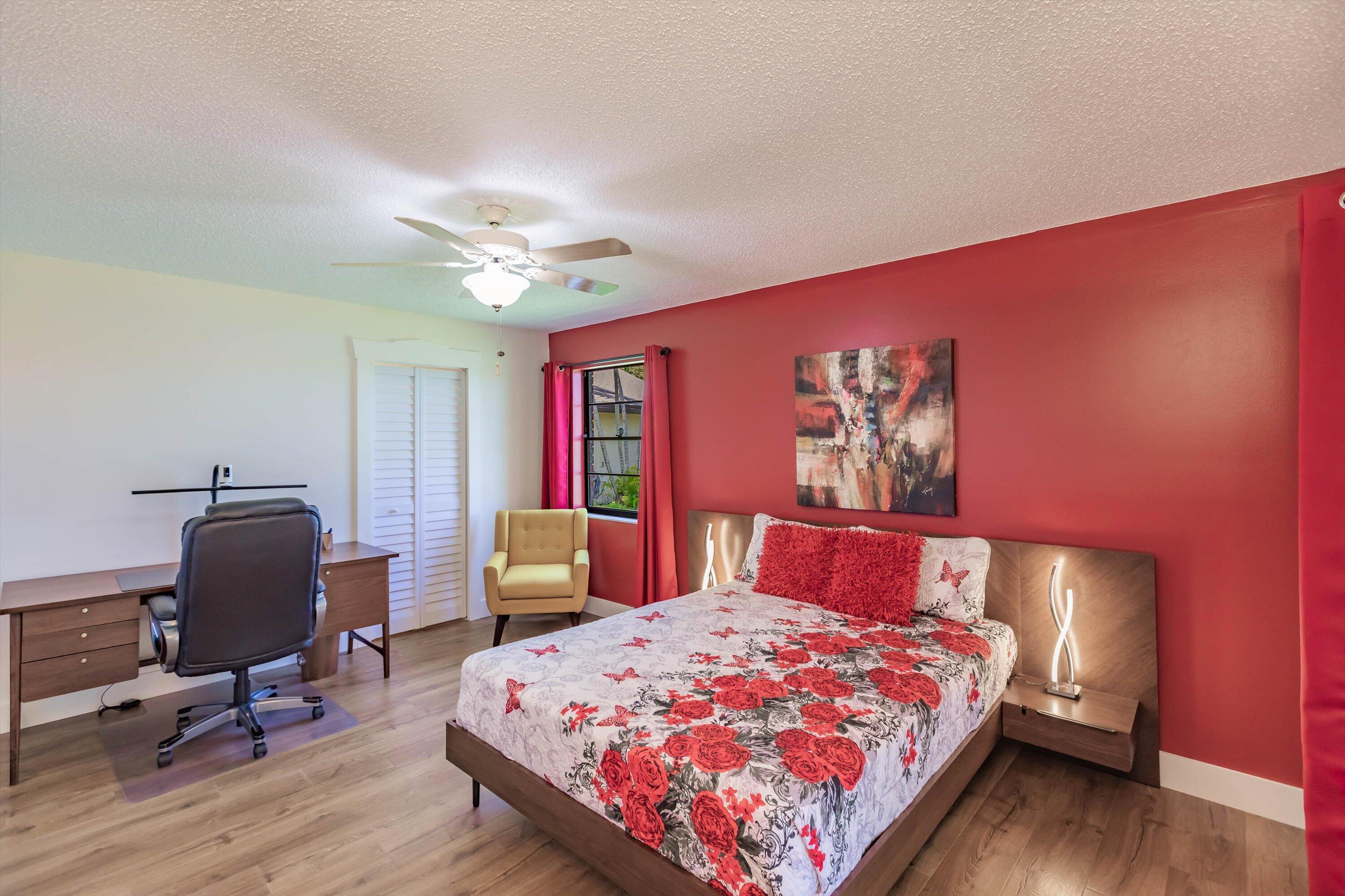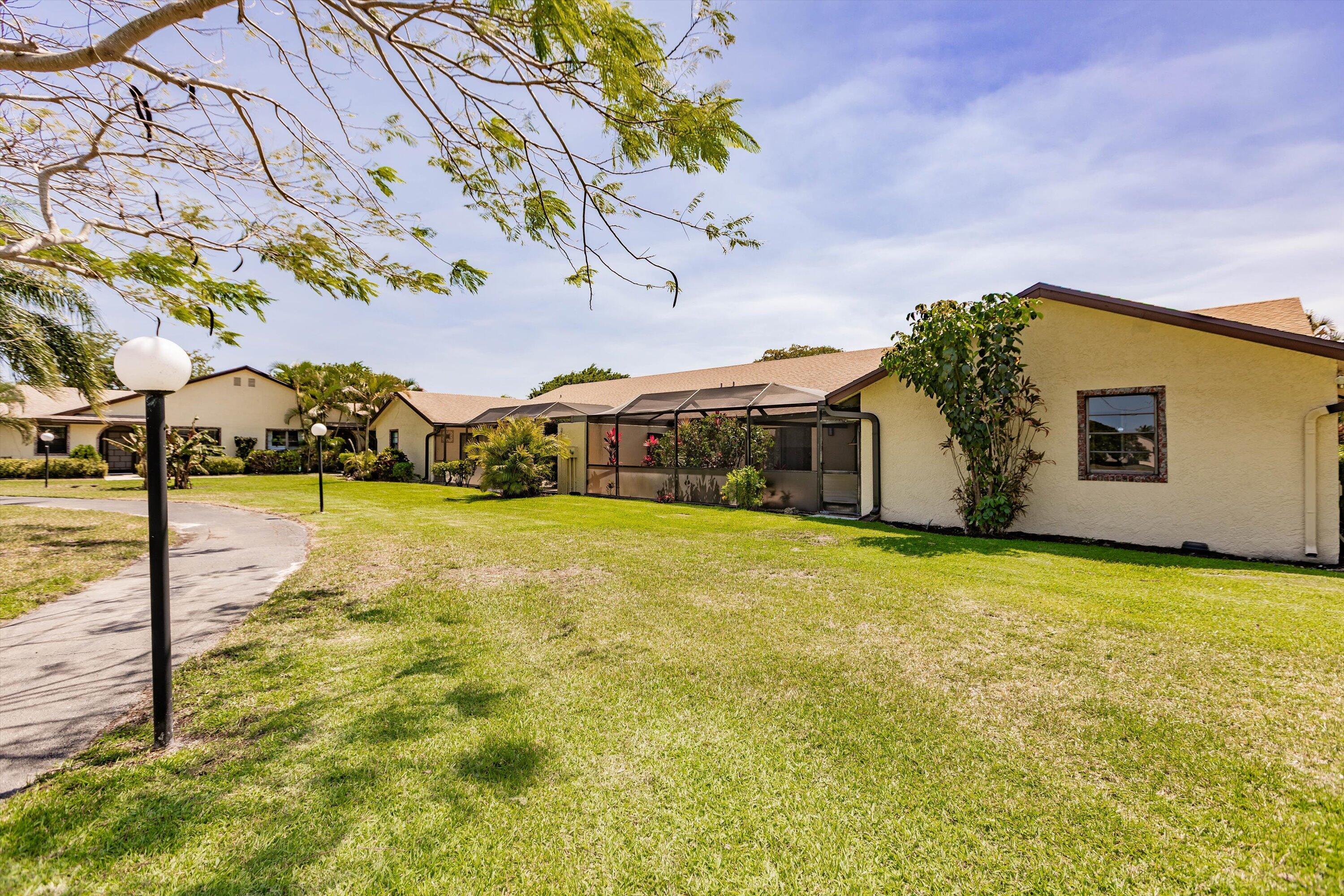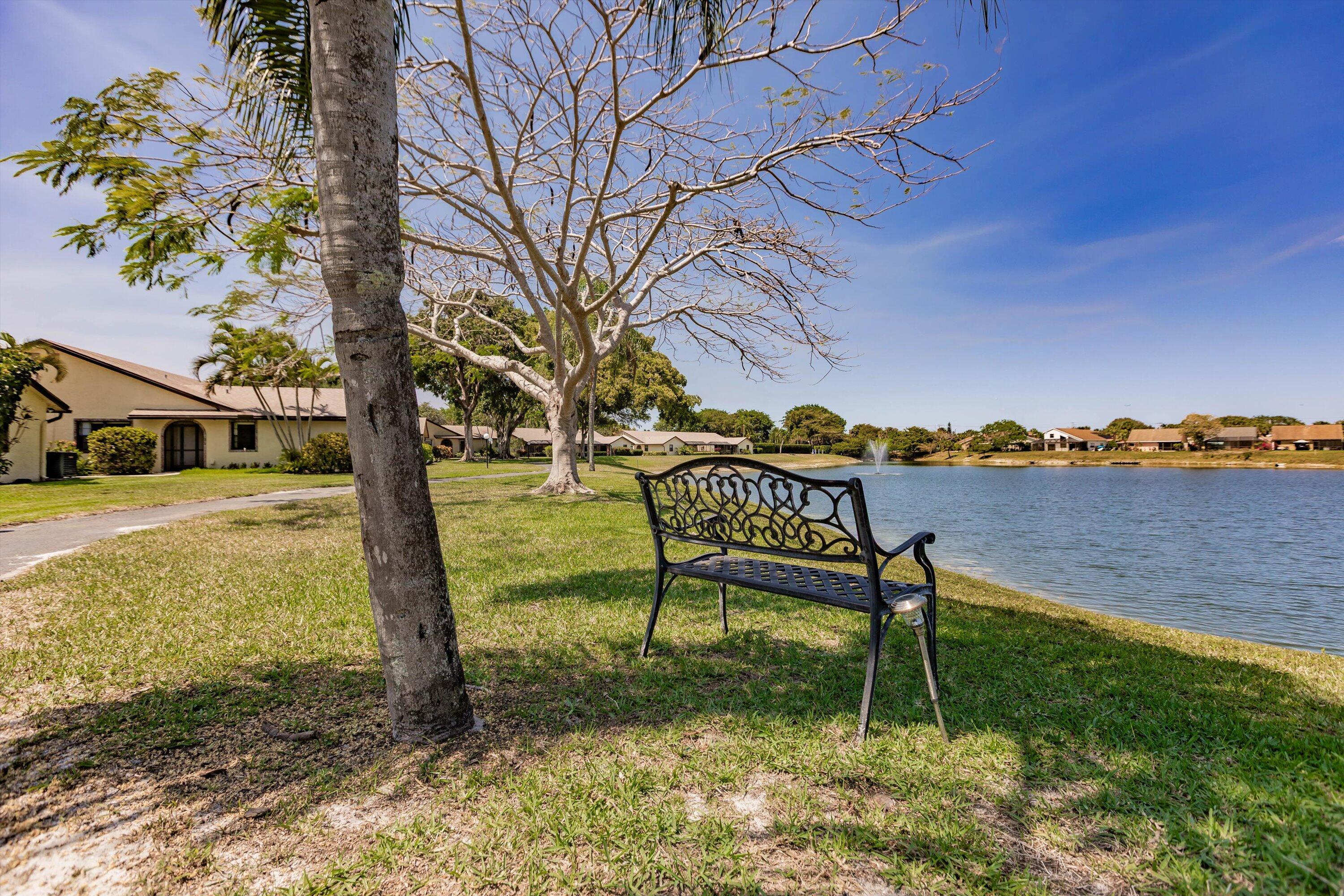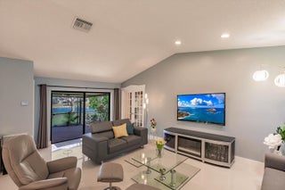 Welcome to Lakes of Boca Barwood, a pet-friendly 55+ community! This beautifully updated 2-bedroom, 2-bath villa features the largest split-bedroom floor plan and offers stunning lake views. The kitchen, remodeled approximately 3 years ago, boasts stainless steel appliances and quartz countertops. Both the air conditioning and water heater are brand new, and the roof was replaced in 2022. The home has no polybutylene pipes.Spacious porcelain tile floors run through the main living areas, while the bedrooms have brand new waterproof floors. Enjoy the expansive screened-in patio, accessible through sliding glass doors from both bedrooms and the living room--perfect for indoor-outdoor living, rain or shine.Both bedrooms offer large closets, and the oversized laundry room is under air for added convenience. The bathrooms feature updated vanities, toilets, and sinks. Assigned covered parking includes extra storage, and the community offers a clubhouse, tennis courts, and a scenic jogging/walking path around the lake.