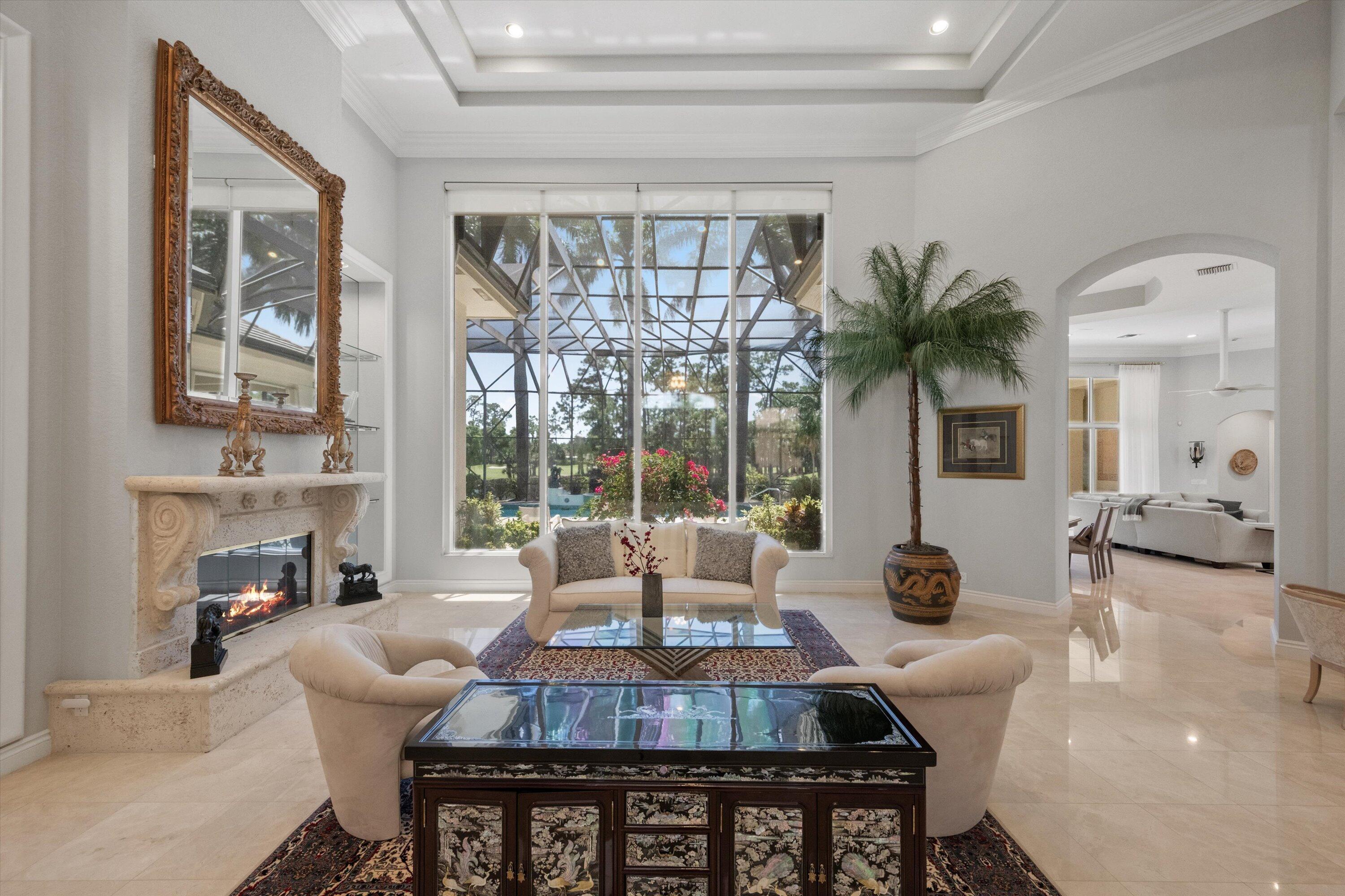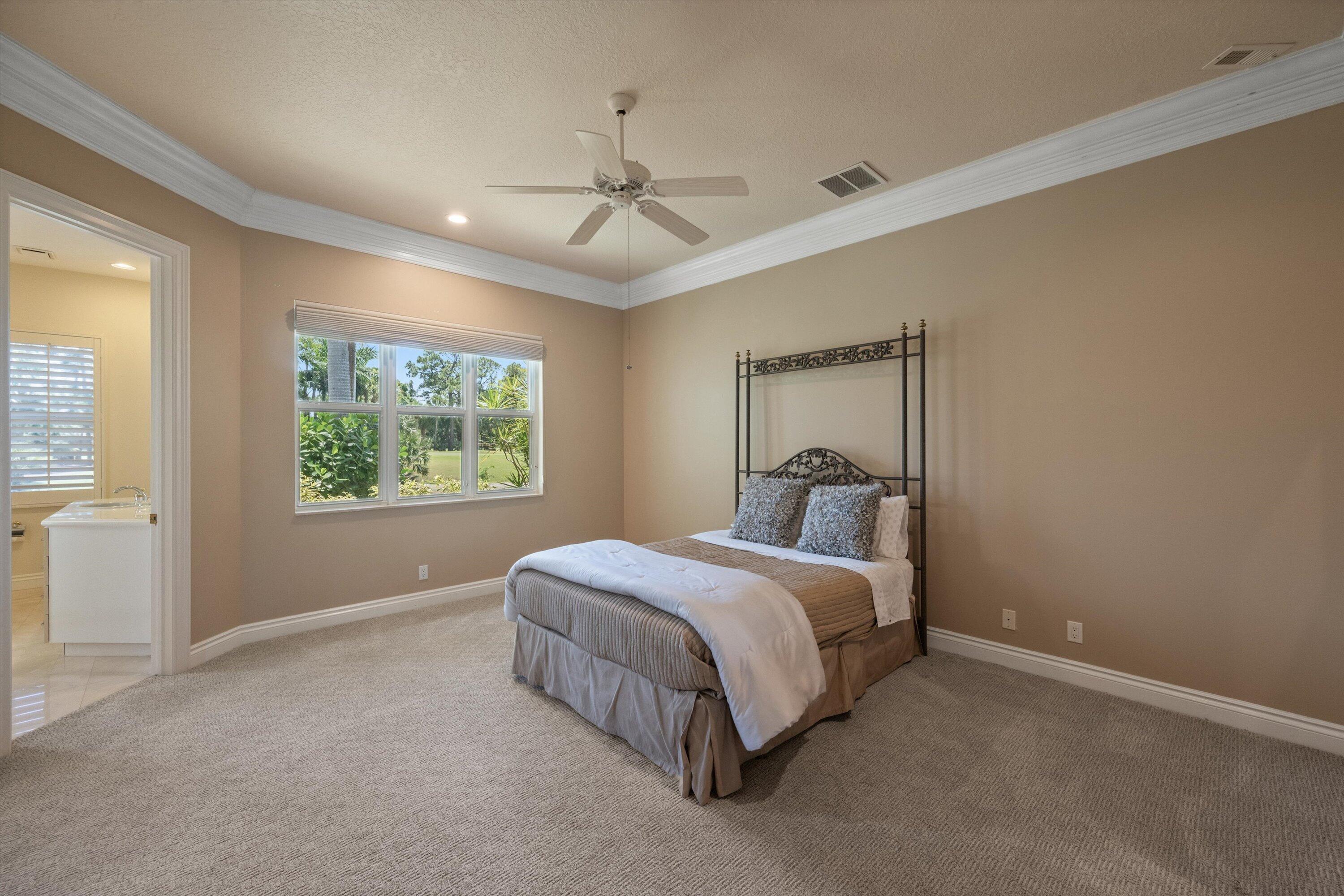$555K PRICE REDUCTION! 1648 Cypress Row Drive in Breakers West Country Club, a stunning one-story residence with over 5,600 SF of living area and 4 Bedrooms + Office, an Exercise Room, 4.5 Baths and 4-Car Air-Conditioned Garage. Located on 0.53 acre lot on PREMIER cul-de-sac street, this property delivers breathtaking water and golf views as far as your eye can see of the Breakers West Rees Jones Course. Designed by Randall Stofft Architects, this custom built home boasts dramatic 18ft ceilings and an abundance of natural light from the floor-to-ceiling windows/doors in main living areas. The outdoor living area rivals the inside with over 2,000 SF of screened patio. Updated in 2019 w/marble stone deck, new pool surface & new waterline in the 16'x 36' pool.The Primary Suite istruly sanctuary featuring the 22' x 22' bedroom with beautiful bowed window, a sitting room overlooking the pool, a separate Exercise Room, 2 custom fitted walk-in closets (one being 15ft x 15ft in size) and marble Primary Bath with 2 vanities, separate tub and marble shower. The 3 spacious Guest Bedrooms each have ensuite baths and walk-in closets. The Chef's Kitchen with center island offers ample space for meal prep/entertaining, pantry closet, counter seating and lovely breakfast area with bowed window overlooking the pool. The kitchen overlooks the Family Room and has sliding doors opening to the covered loggia. For the car enthusiast, there is 4-car garage with a separate, dedicated AC system as well as a 10' x 5' air-conditioned storage closet! For peace of mind, this home is protected by accordion hurricane shutters, permanent Generac generator with 500 gal propane tank installed 2019, tile roof replaced in 2014. 4 AC systems-2017 Breakers West is a unique country club community where club memberships are NOT mandatory. However, residents have the choice of optional/non-mandatory club memberships at either Breakers West (including Breakers Beach Club in the Summer months) or memberships are Mayacoo Lakes Country Club. Breakers West is conveniently located to downtown West Palm Beach financial center known as "Wall Street South", Kravis Center, Norton Art Museum, Worth Ave shopping, Dixie Highway's eclectic shops, PBI airport as well as Wellington equestrian amenities. Don't miss this great opportunity to enjoy the Palm Beach County lifestyle this season!