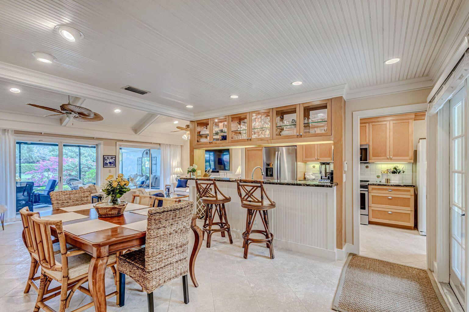 Lovely seasonal and off season rental available in Jonathan's Landing! This 2 bedroom, 2 bathroom villa features an updated kitchen with granite countertops, a furnished lanai including a fire pit and grill, and tranquil lake views from the kitchen, living room, and master bedroom.