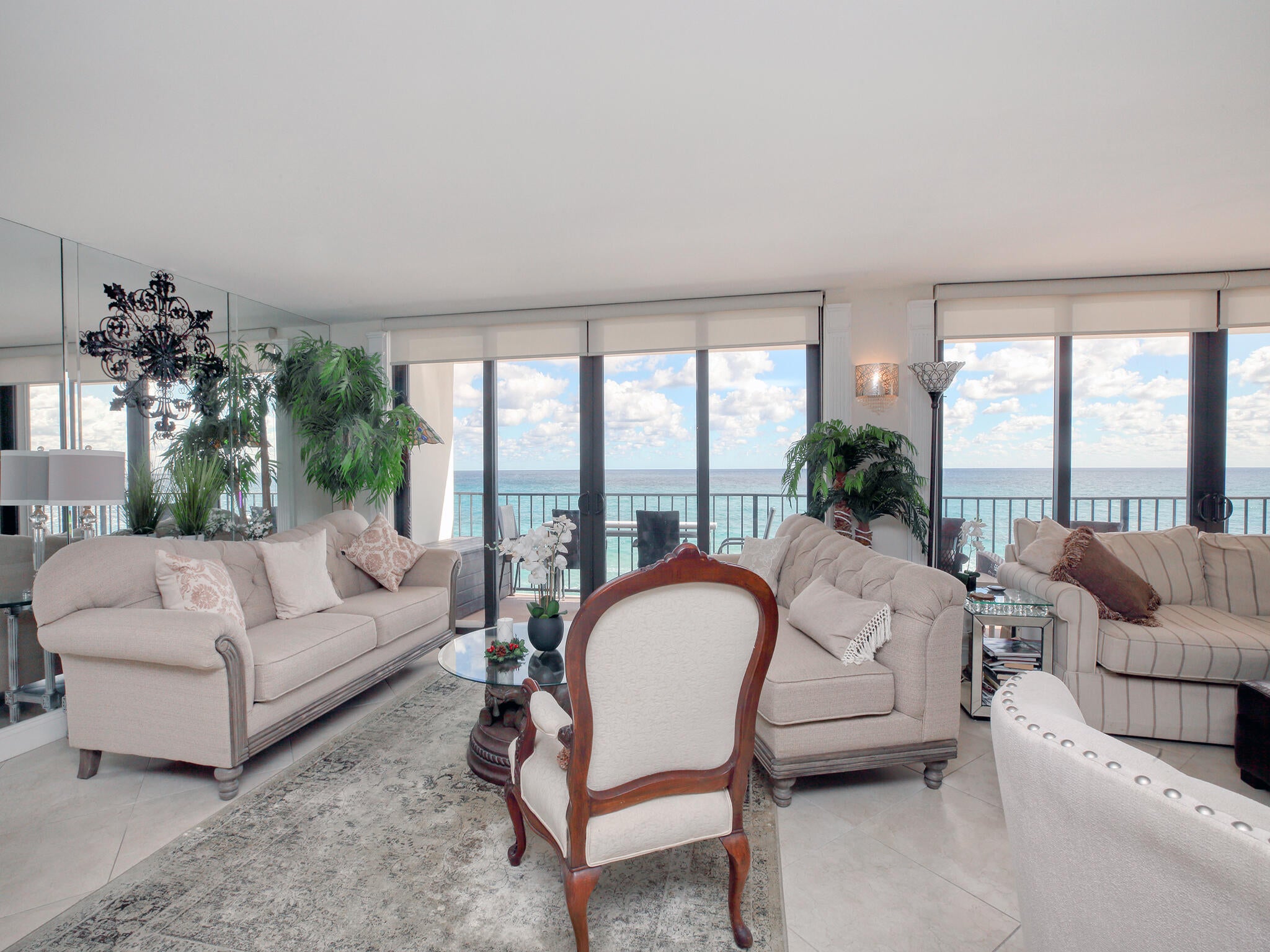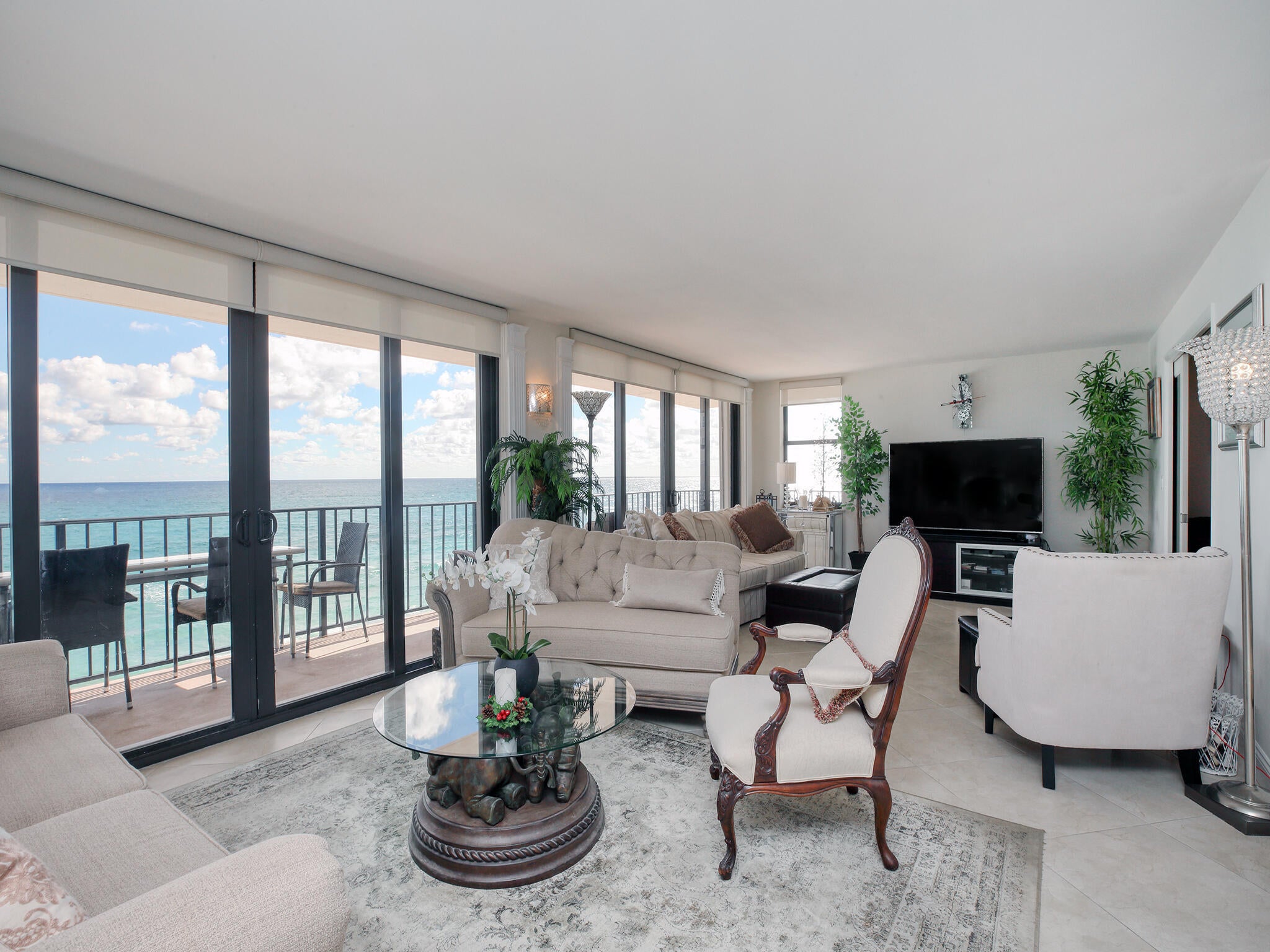 Specular direct ocean front on the sand. Great Palm Beach location. Corner unit direct ocean views around. Relax and enjoy views on the 45 foot wrap around balcony. Its Paradise and a must see.This spacious two bedroom is tastefully decorated and fully furnished.