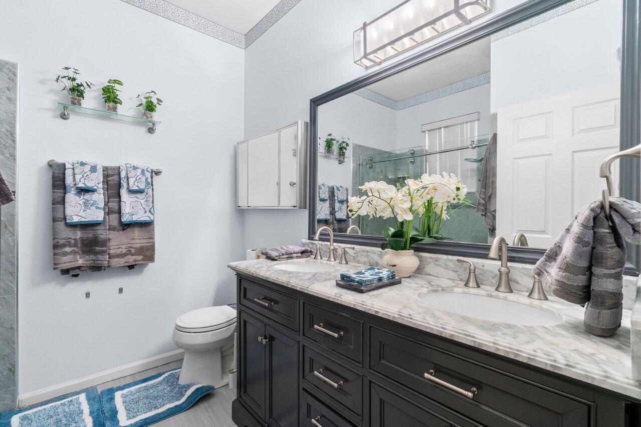 Charming 3-Bedroom, 2-Bathroom Home in Fairway Isles - Step into this charming home featuring a split floor plan for added privacy. The upgraded bathrooms include dual sinks in the master suite & new tile flooring, adding a fresh and modern touch.The open-concept kitchen offers a breakfast bar, perfect for casual meals or entertaining. Relax in the spacious living room & dining area, designed for both comfort and functionality. Enjoy seamless indoor-outdoor living with French doors leading from the master to a private patio, ideal for morning coffee or evening relaxation. This home is equipped with a whole-home generator, ensuring peace of mind during any power outage.Residents benefit from a manned gate for added security, plus access to basketball, tennis, jog & bike trails.