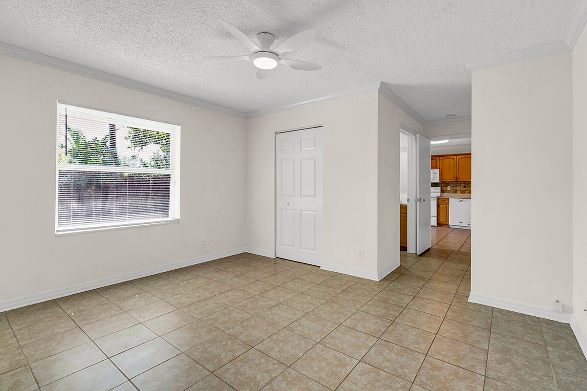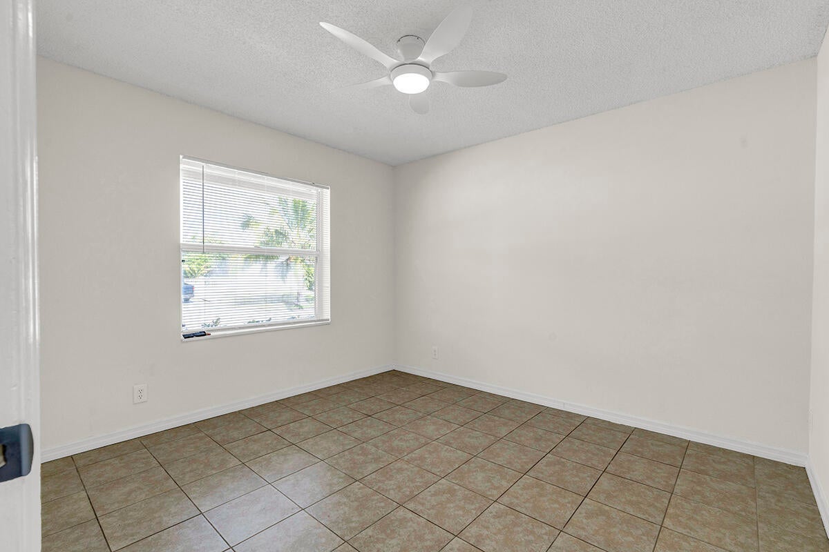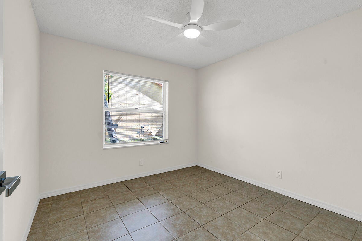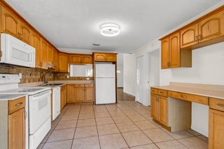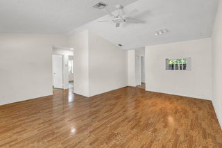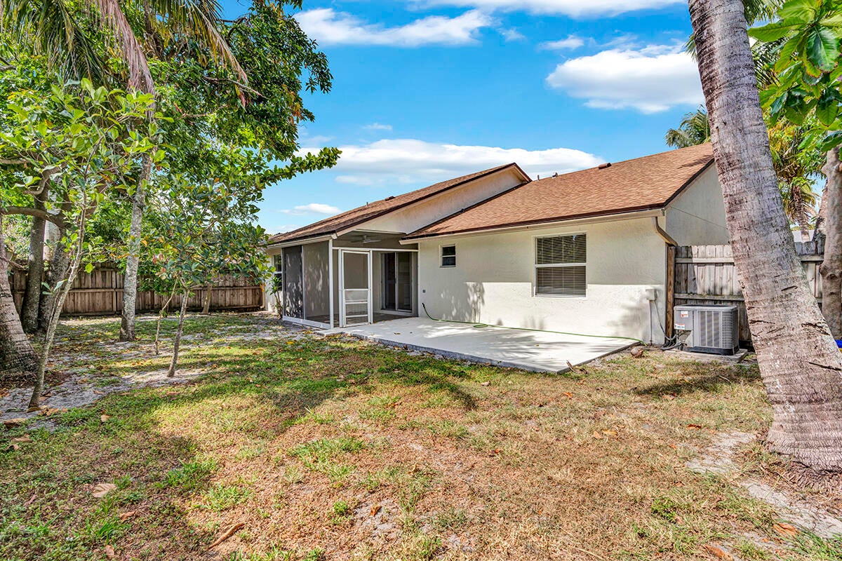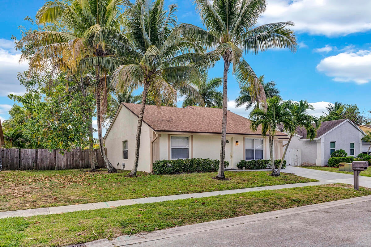 Welcome to this lovely home in a desirable neighborhood! This home features 4br /2 bth split plan home. Freshly painted inside and out, with high ceiling in the great room, a spacious eat-in kitchen with new quartz countertops, solid wood cabinets and a separate desk area with storage. Rooms are light and bright, complete with new lighted remote control ceiling fans, and contemporary hardware. For your convenience, the 1 car garage features a washer and dryer. Enjoy the very private backyard with a large concrete patio and fabulous screen enclosed tiled room. Spend hours in the tropical fenced yard with children/pets, or open it to an expansive canal view.
