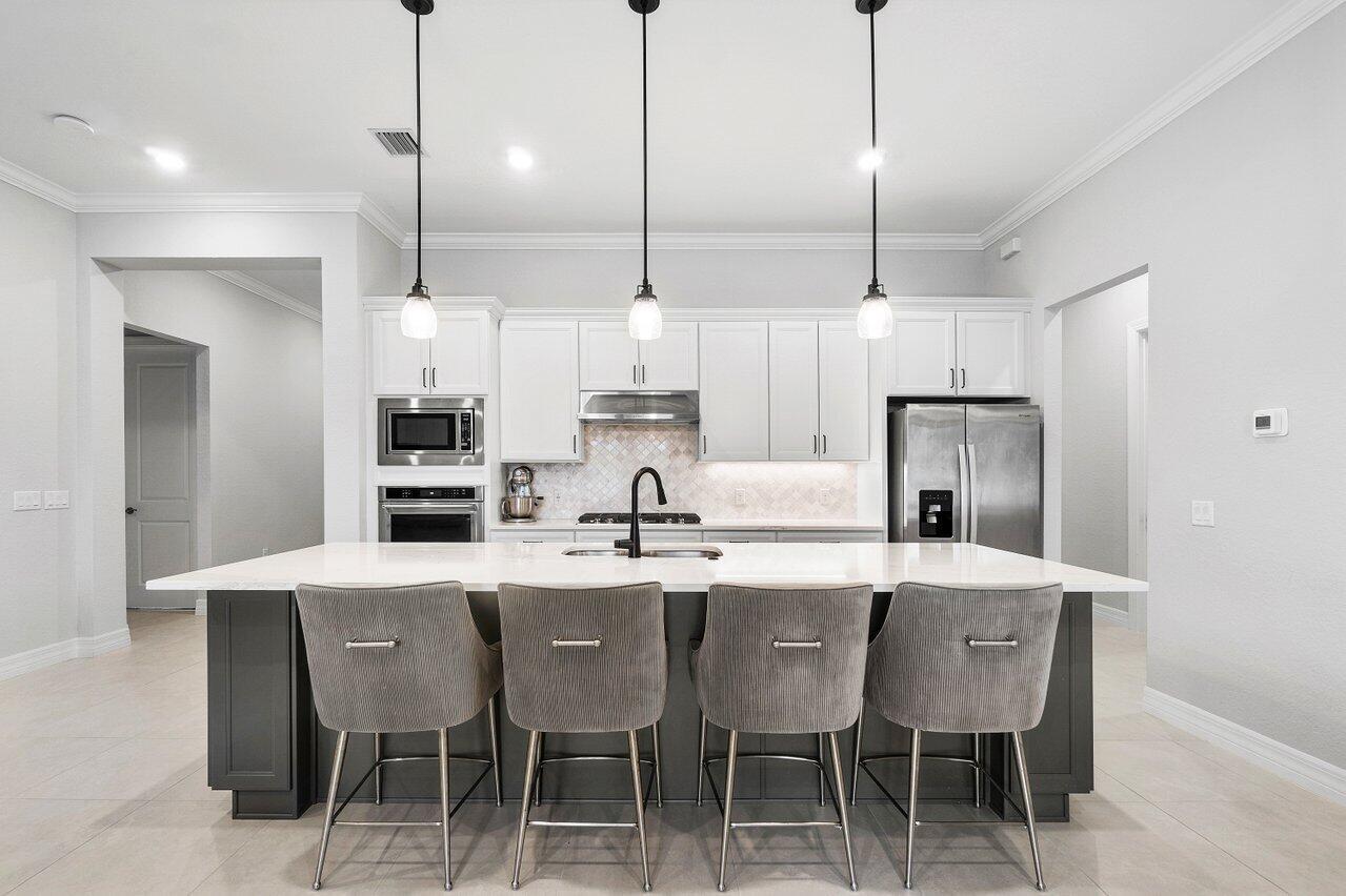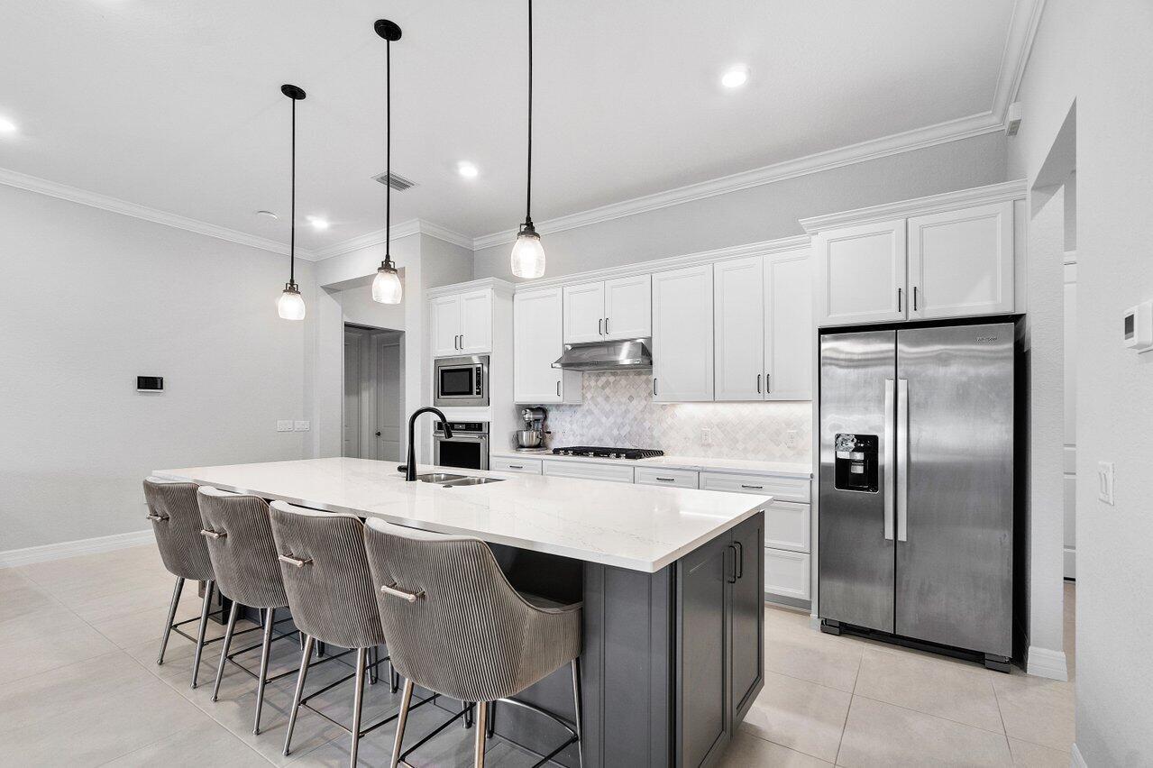 Why wait for new construction when this new stunning home is move-in ready? Why wait months for new construction when you can move right into this exceptional 2023 Stellar model home? Ideally situated in the prestigious, gated community of Windsong Estates, this beautifully crafted residence blends luxury, comfort, and convenience into one seamless lifestyle. Located just minutes from Wellington--the world-renowned equestrian hub--you'll enjoy the best of South Florida's vibrant and active living. Step inside and instantly feel at home. The open, single-story floor plan perfectly combines stylish design with everyday functionality. This is the dream ranch-style home you've been searching for--featuring open-concept living, elegant finishes, and thoughtful details throughand tall, graceful doors create a light, airy atmosphere while adding a touch of sophistication to every room. Boasting over $100,000 in premium upgrades, this energy-efficient home offers 4 spacious bedrooms and 4 modern bathrooms, providing comfort and flexibility for families of all sizes. Natural light pours into every corner, giving the home a warm and inviting glow. The gourmet kitchen is a chef's dream, equipped with high-end cabinetry, sleek modern appliances, an oversized pantry, and a natural gas connectionperfect for inspired culinary creations. The open-concept living area is anchored by a striking electric fireplace, offering a cozy yet contemporary space for relaxing or entertaining. The expansive primary suite is a true retreat, offering plenty of space for a king-sized bed and private sitting area. The spa-like en-suite bathroom features dual vanities, a walk-in shower, and serene design elements, while the oversized walk-in closet offers ample storage and organization. Step outside to your private backyard oasis. A screened-in, covered patiowith a built-in sinkmakes outdoor dining and entertaining effortless, all while enjoying serene lake views. The fully fenced yard adds both privacy and peace of mind. Located within a secure, gated community, Windsong Estates offers not just beauty, but also peace of mind and a true sense of neighborhood exclusivity. The low monthly HOA fee includes internet service and exterior lawn maintenance, adding exceptional value and stress-free living. With world-class shopping and dining just minutes away at Wellington Mall, convenience is at your doorstep. Families will love being near top-rated elementary, middle, and high schools. Adventurers will appreciate the home's proximity to Wellington's renowned attractions, public beaches just 9 miles away, and easy access to I-95 and Florida's Turnpikeall within 10 miles. Plus, West Palm Beach, Downtown Delray Beach, and Palm Beach International Airport are only a quick 30-minute drive. Don't miss this rare opportunity to own a practically brand-new, move-in-ready home without the wait. Schedule your private tour today and discover the exceptional lifestyle that Windsong Estates has to offer!