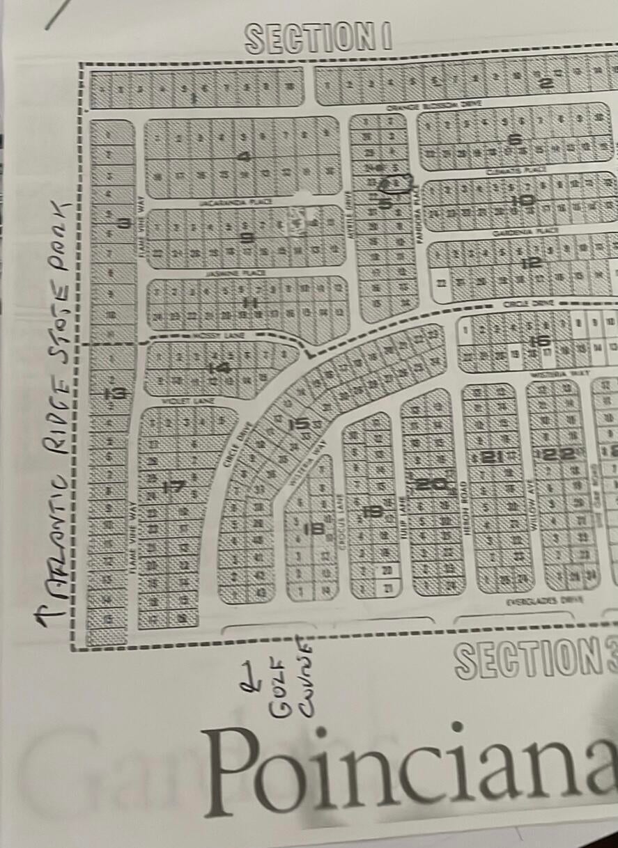 Lot for sale, in Poinciana Gardens, Hobe Sound. No hook ups at this time. Dirt road access. Campers and ATVs ok. This lot is high and dry with pines and palmetto's.