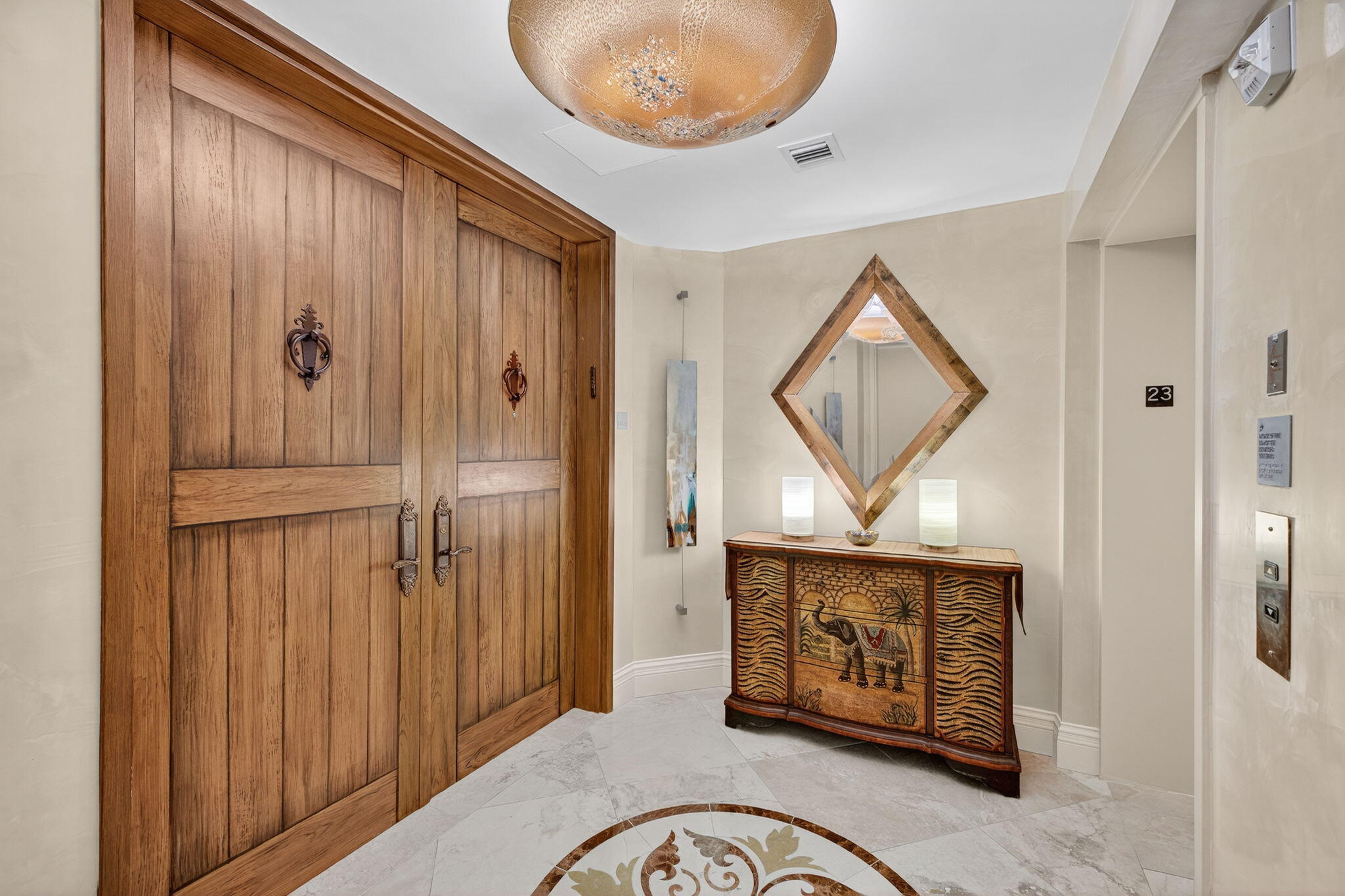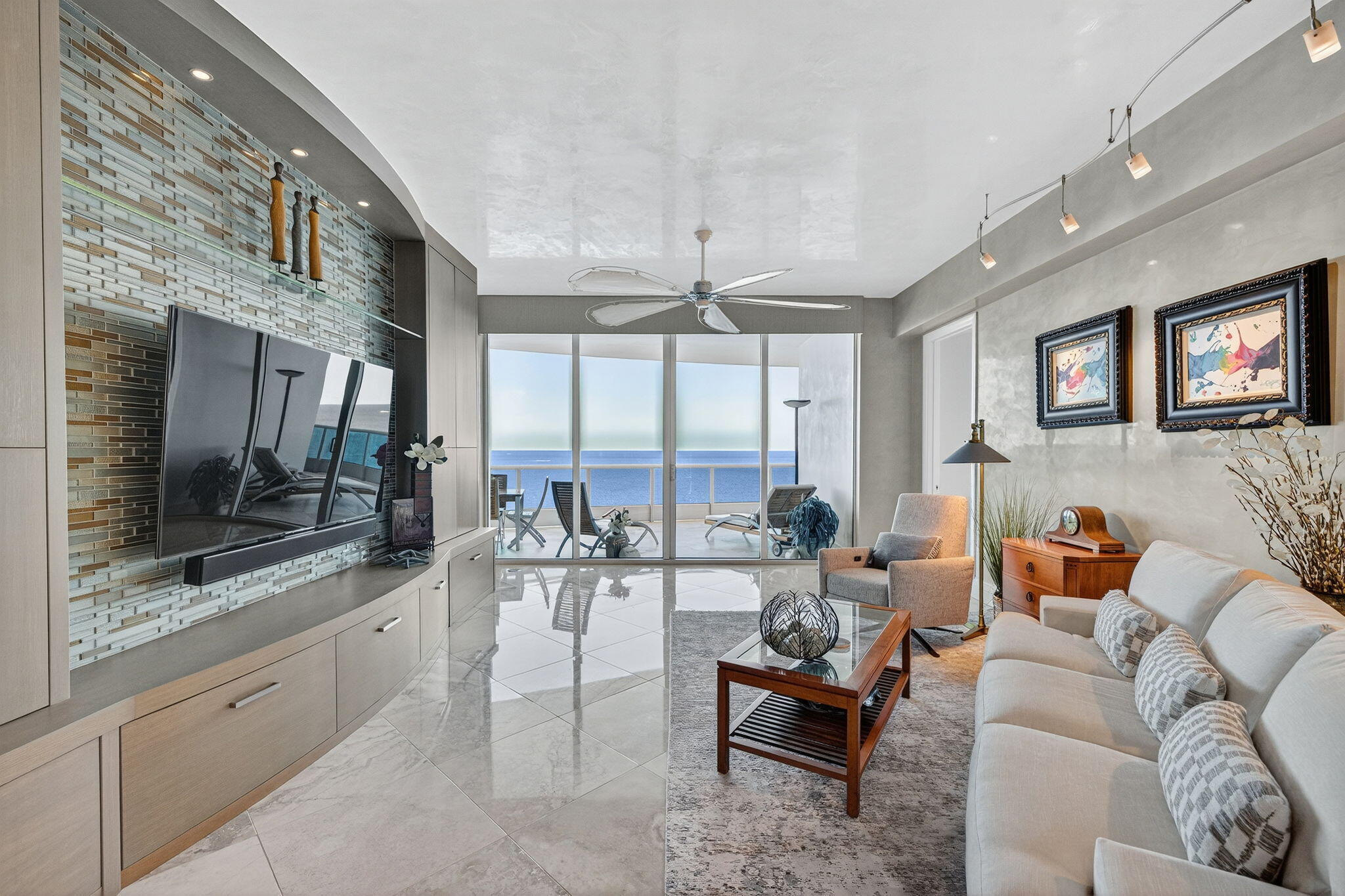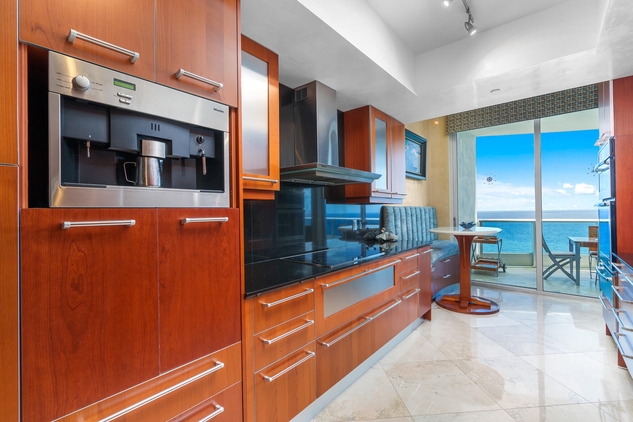 Oceanfront Penthouse! Sophisticated coastal living in this 3-bed, 4.5-bath custom designed condo at Aquazul, Lauderdale-by-the-Sea. Spanning 2,572 SF; Private Elevator entry, floor-to-ceiling windows, panoramic ocean views & three balconies boast sunrise & sunset vistas. High-end finishes include Italian cabinetry, marble floors, Venetian plaster and a custom wet bar w/wine fridge, ice maker(Penthouse units enjoy higher ceilings than non-Ph units). Primary suite offers an oversized walk-in closet and spa-inspired bath with Jacuzzi tub and shower. Resort-style amenities include beach service, oceanfront pool, gym, saunas, tennis/pickleball court, dog park, BBQ area and a private, extra-large, climatized storage unit and 4 deeded parking spots, EV access. Pet-friendly.Step Into Luxury today!