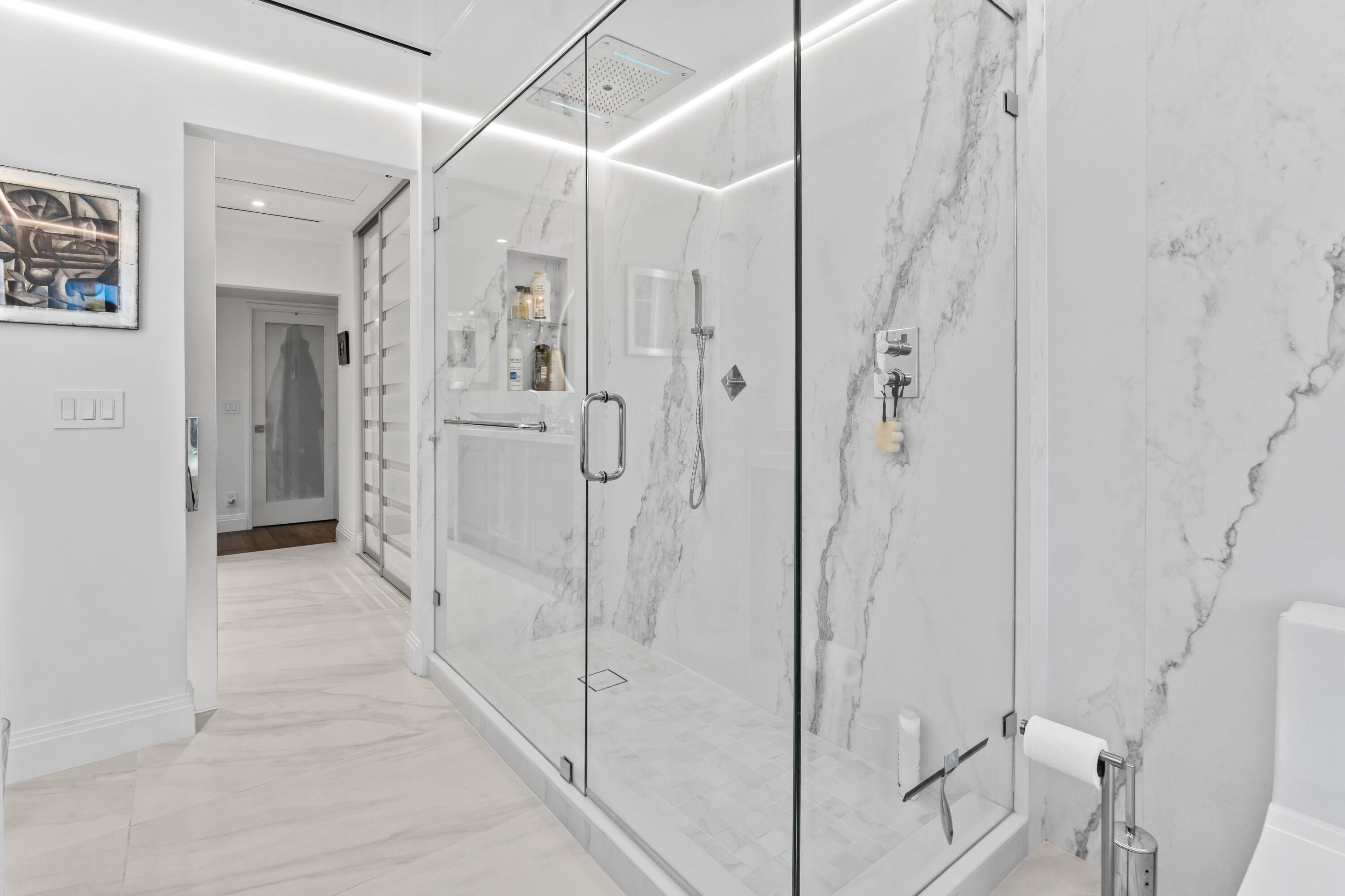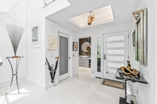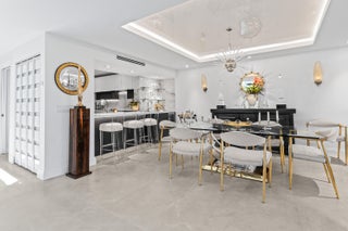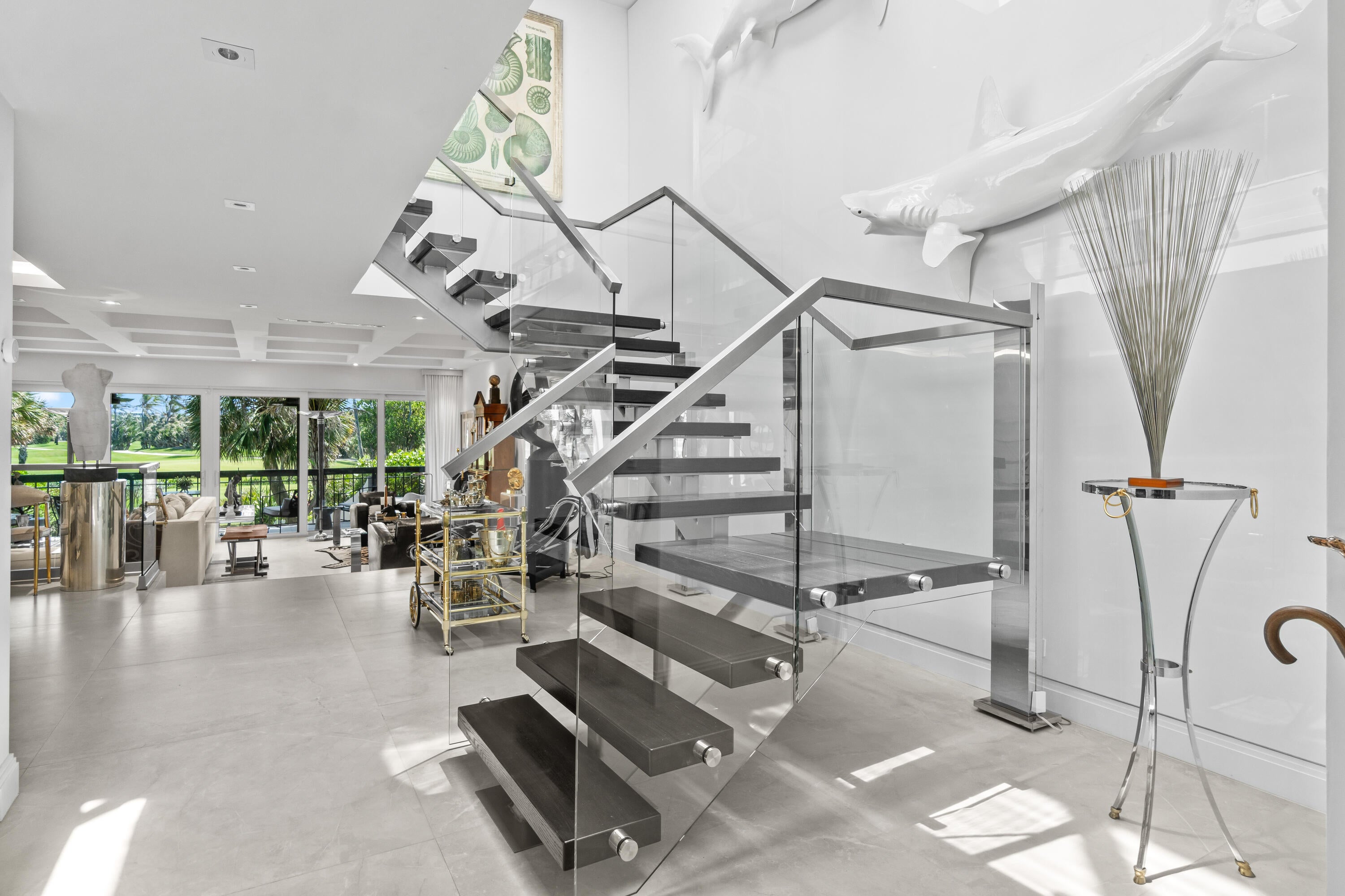 Sun-filled southern exposure with stunning views of the Palm Beach Par 3 Golf Course, Intracoastal, and Ocean. This modern 3BR/2.5BA home is fully renovated and professionally furnished to perfection. Features include a high-end kitchen with sitting area, spacious living and dining rooms, and a terrace leading to a private garden. An elevator connects all levels from the 2-car garage to the top-floor bedrooms. The primary suite offers soaring ceilings, a private terrace, spa-like bath, and generous closets. Two additional bedrooms, a full bath, and laundry complete the upper floor. Tres Vidas offers a manned gate, tennis court, and deeded beach access. Next to Palm Beach Par 3 Golf Course and Palm Beach Tennis Center. Minutes to Worth Avenue and top resorts.