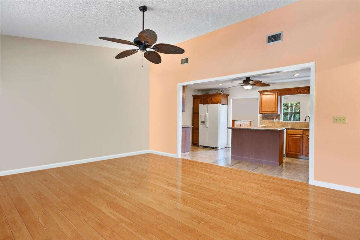 Discover your own private retreat with this charming single-family home, featuring 2 bedrooms, 2 bathrooms, and a convenient 1-car garage. Step inside and appreciate the beautiful flooring that flows seamlessly throughout. The inviting kitchen boasts a functional center island, perfect for everyday living and entertaining. Host gatherings in the formal dining room, complete with a stylish wet bar. Situated on over an acre of fully fenced land, this property offers exceptional privacy and includes a serene private pond. With ample space for outdoor activities, hobbies, and even storing recreational vehicles, this home presents a fantastic opportunity to embrace a relaxed Florida lifestyle. Imagine the possibilities of making this wonderful property your own!