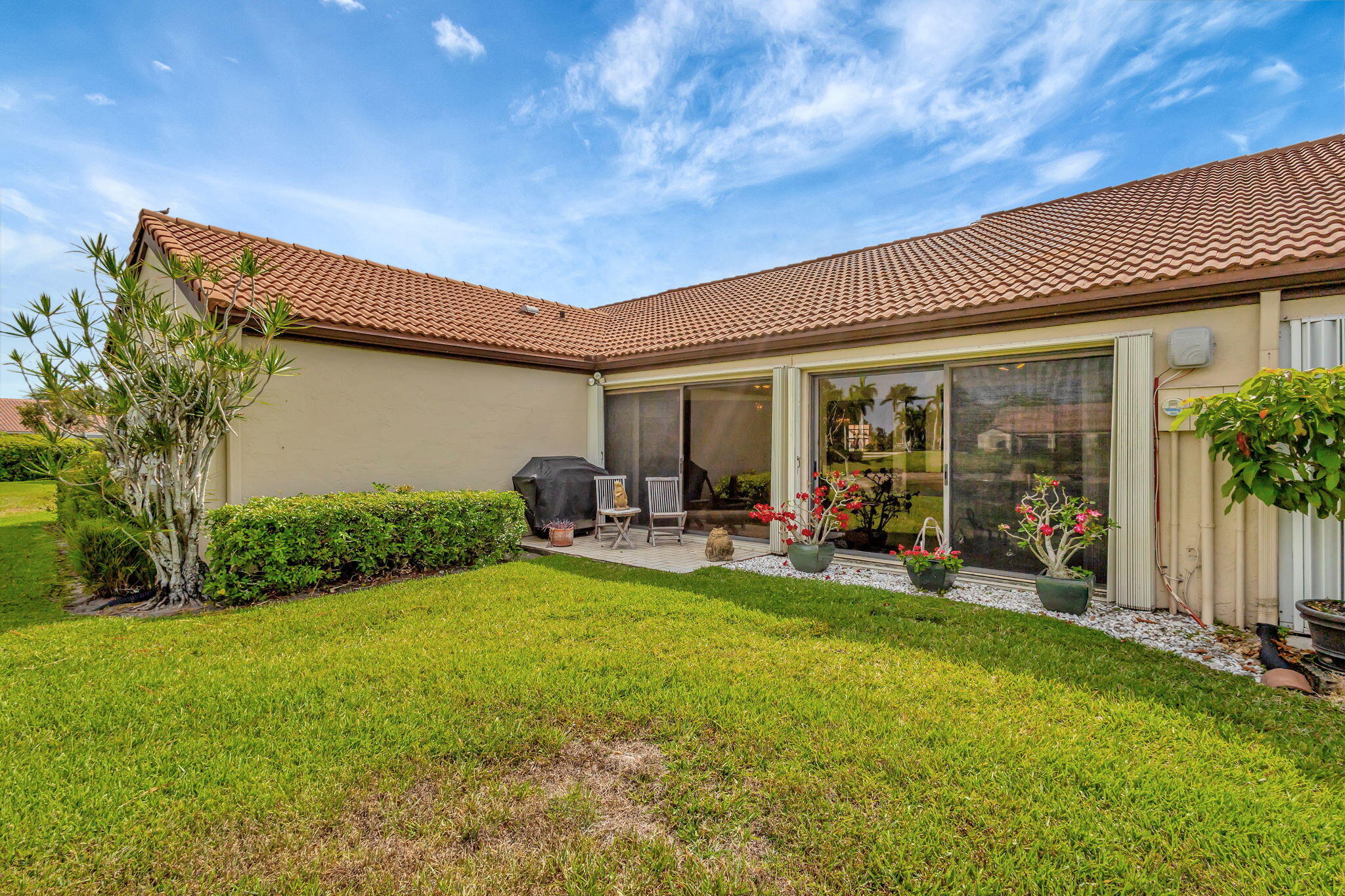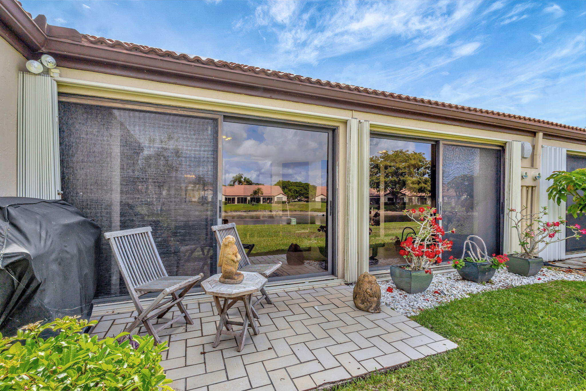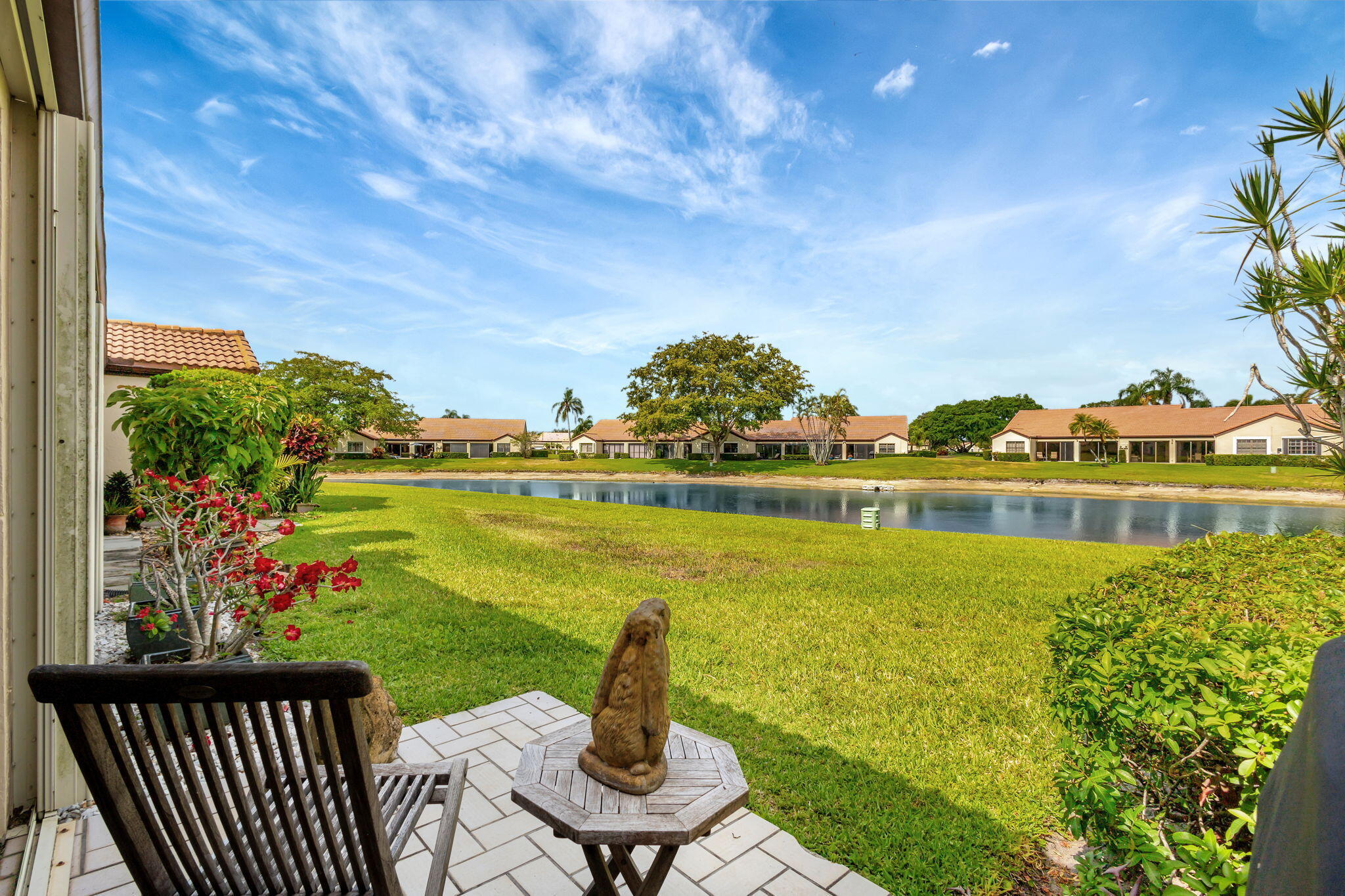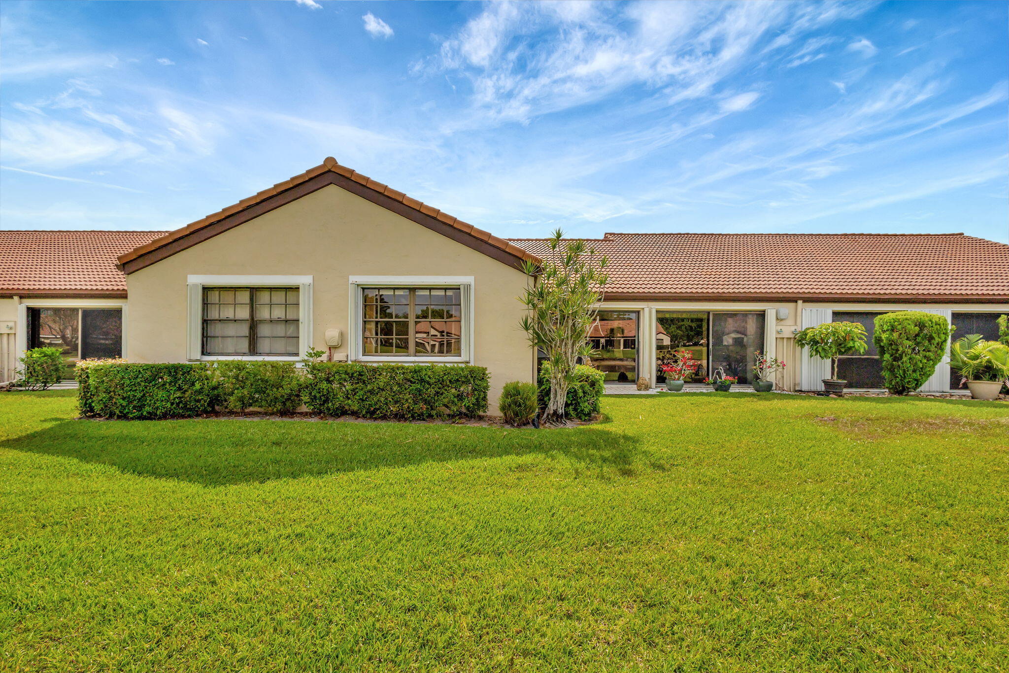 Welcome to your serene oasis in the highly desired active adult 55+ community of The Moorings at Aberdeen! This beautifully designed 2 bedroom, 2 bathroom villa offers a thoughtful layout with just the right amount of space, comfort, and style--perfect for low-maintenance living in a resort-style setting. Enjoy tranquil water views from the open living and dining area, where large glass sliding doors invite natural light to fill the space and showcase the peaceful scenery outside. Vaulted ceilings add an airy touch, enhancing the feeling of openness throughout the home. The spacious owner's suite features a walk-in closet and a private en-suite bath complete with a walk-in shower and dual sinks.A generously sized second bedroom and full guest bathroom ensure comfort and privacy for family and visitors alike. Additional highlights include a 1-car garage and a full-size washer and dryer. Located within a vibrant, centrally located 55+ community, residents of The Moorings at Aberdeen enjoy access to exceptional amenities including 3 pools, a clubhouse, fitness center, tennis and pickleball courts, game rooms, a sauna, and moreall with no mandatory membership fees. Conveniently close to top-rated shops, restaurants, and everyday conveniences, this is the perfect place to live the South Florida lifestyle you've been dreaming of.