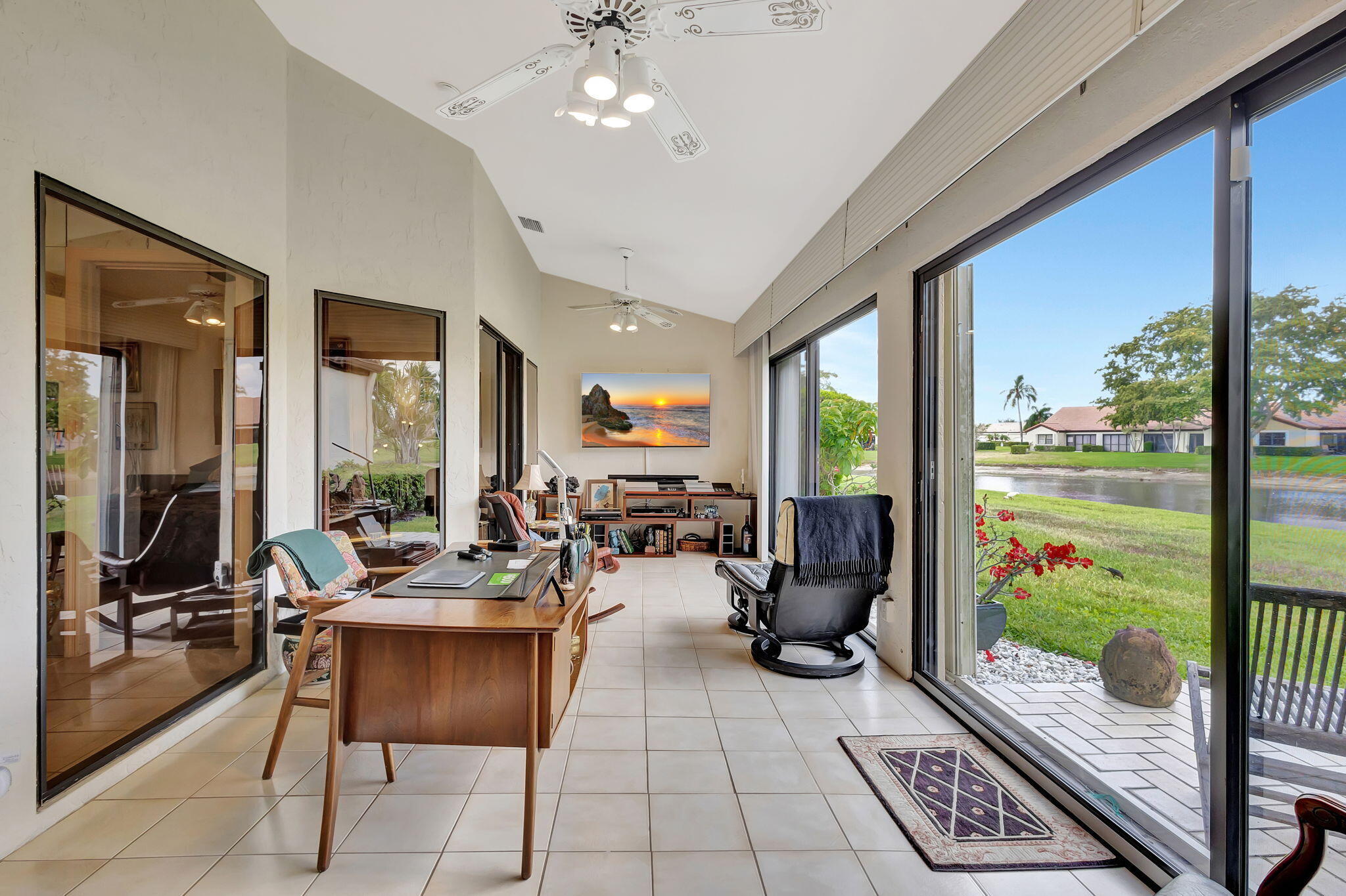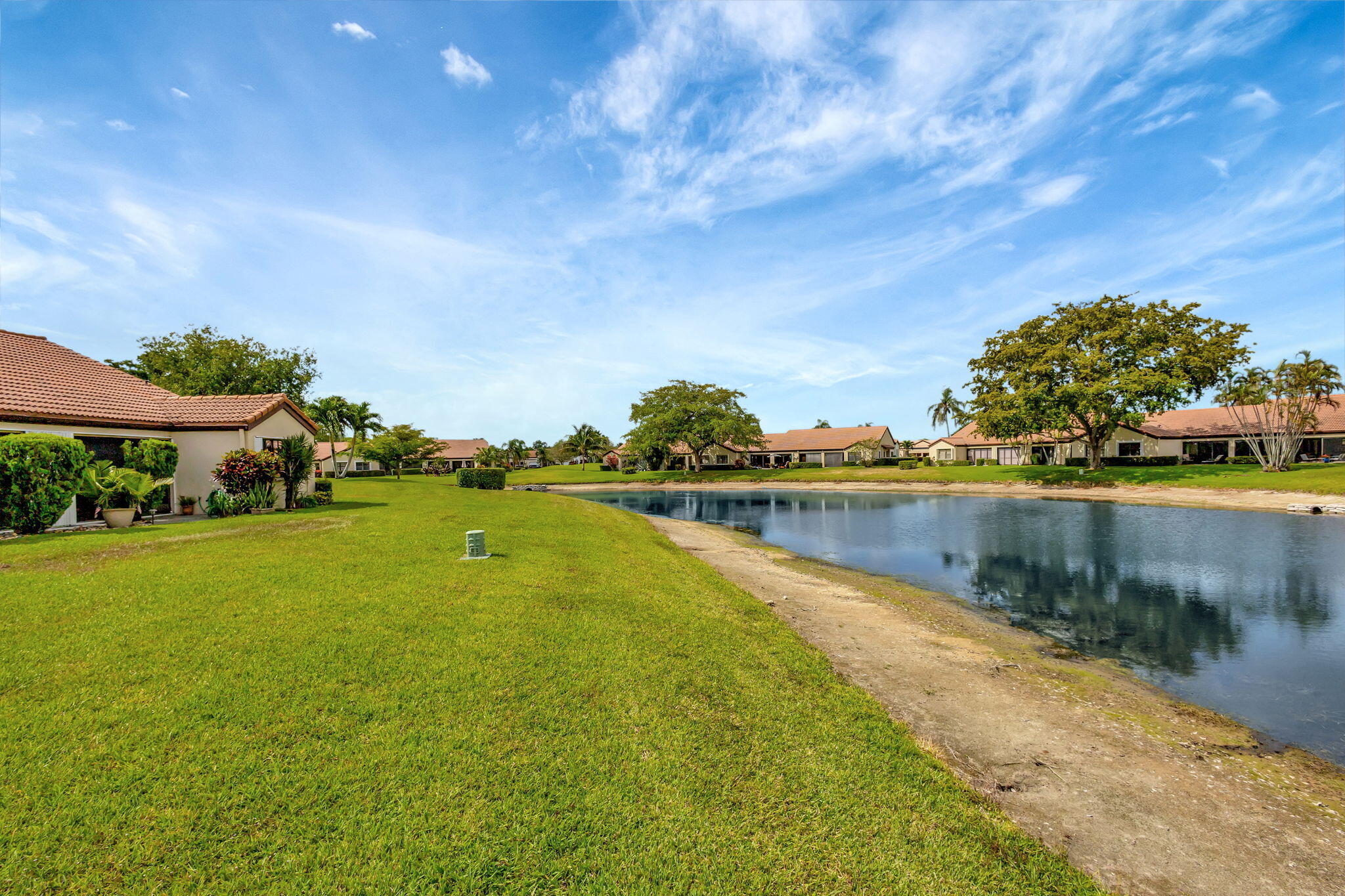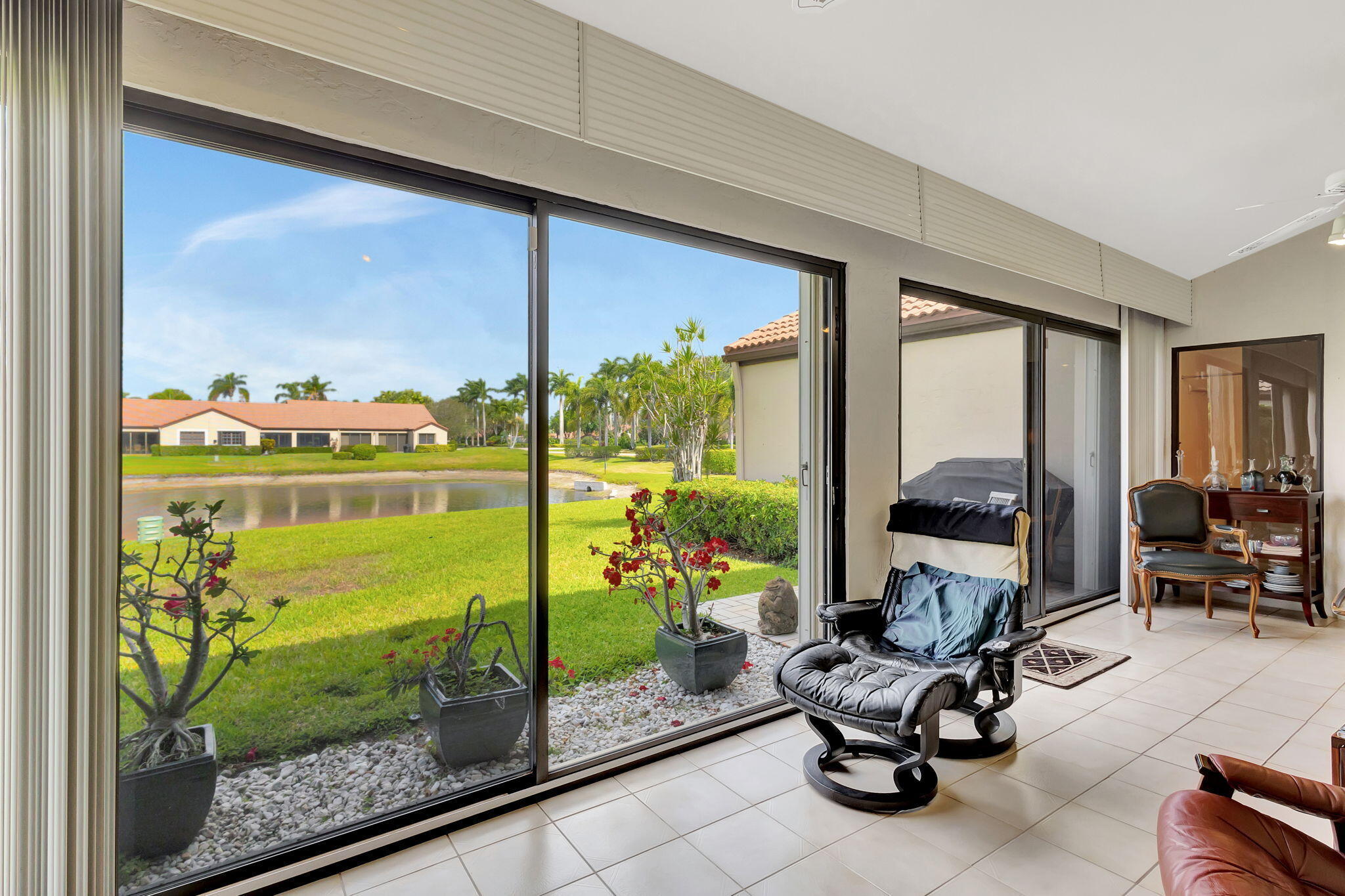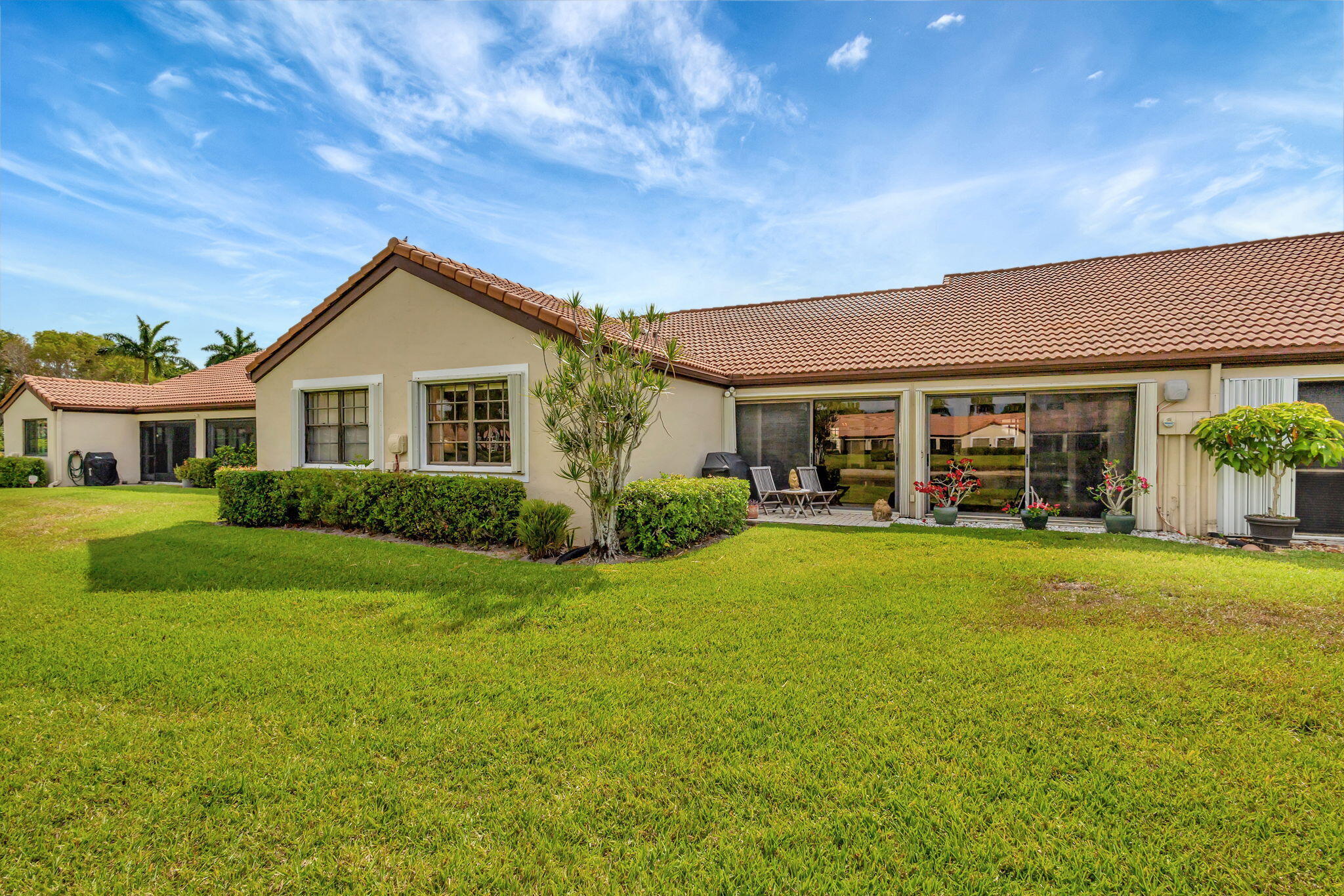 Welcome to your serene oasis in the highly desired active adult 55+ community of The Moorings at Aberdeen! This beautifully designed 2 bedroom, 2 bathroom villa offers a thoughtful layout with just the right amount of space, comfort, and style--perfect for low-maintenance living in a resort-style setting. Enjoy tranquil water views from the open living and dining area, where large glass sliding doors invite natural light to fill the space and showcase the peaceful scenery outside. Vaulted ceilings add an airy touch, enhancing the feeling of openness throughout the home. The spacious owner's suite features a walk-in closet and a private en-suite bath complete with a walk-in shower and dual sinks.A generously sized second bedroom and full guest bathroom ensure comfort and privacy for family and visitors alike. Additional highlights include a 1-car garage and a full-size washer and dryer. Located within a vibrant, centrally located 55+ community, residents of The Moorings at Aberdeen enjoy access to exceptional amenities including 3 pools, a clubhouse, fitness center, tennis and pickleball courts, game rooms, a sauna, and moreall with no mandatory membership fees. Conveniently close to top-rated shops, restaurants, and everyday conveniences, this is the perfect place to live the South Florida lifestyle you've been dreaming of.