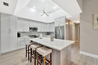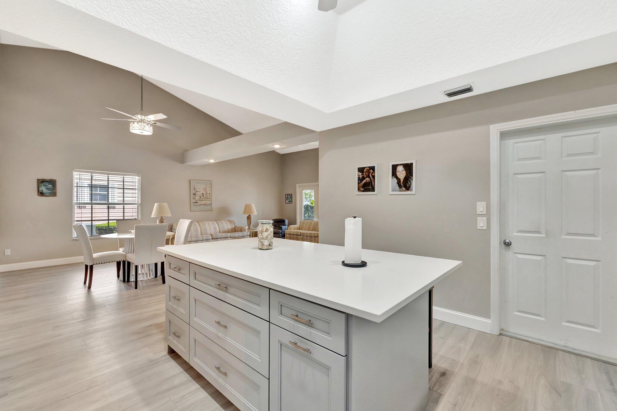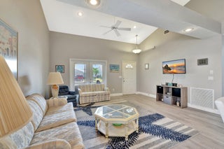 Enjoy peaceful golf club community on the south end of Ft. Pierce close to the river, the beaches, shopping, and downtown. Pool. Clubhouse/restaurant. Putting green. Membership to golf club not required. Villa kitchen has been recently updated with gorgeous white cabinets and large island with all new quartz countertops, new upgraded stainless appliances, & new electrical outlets & switches. New baseboards. New ceiling fans throughout.Selling furnished except the TV's. Washer & dryer negotiable. Accordion storm shutters on all windows. Wood blinds throughout. Enjoy the serenity & breezes from comfortable front screened in porch.