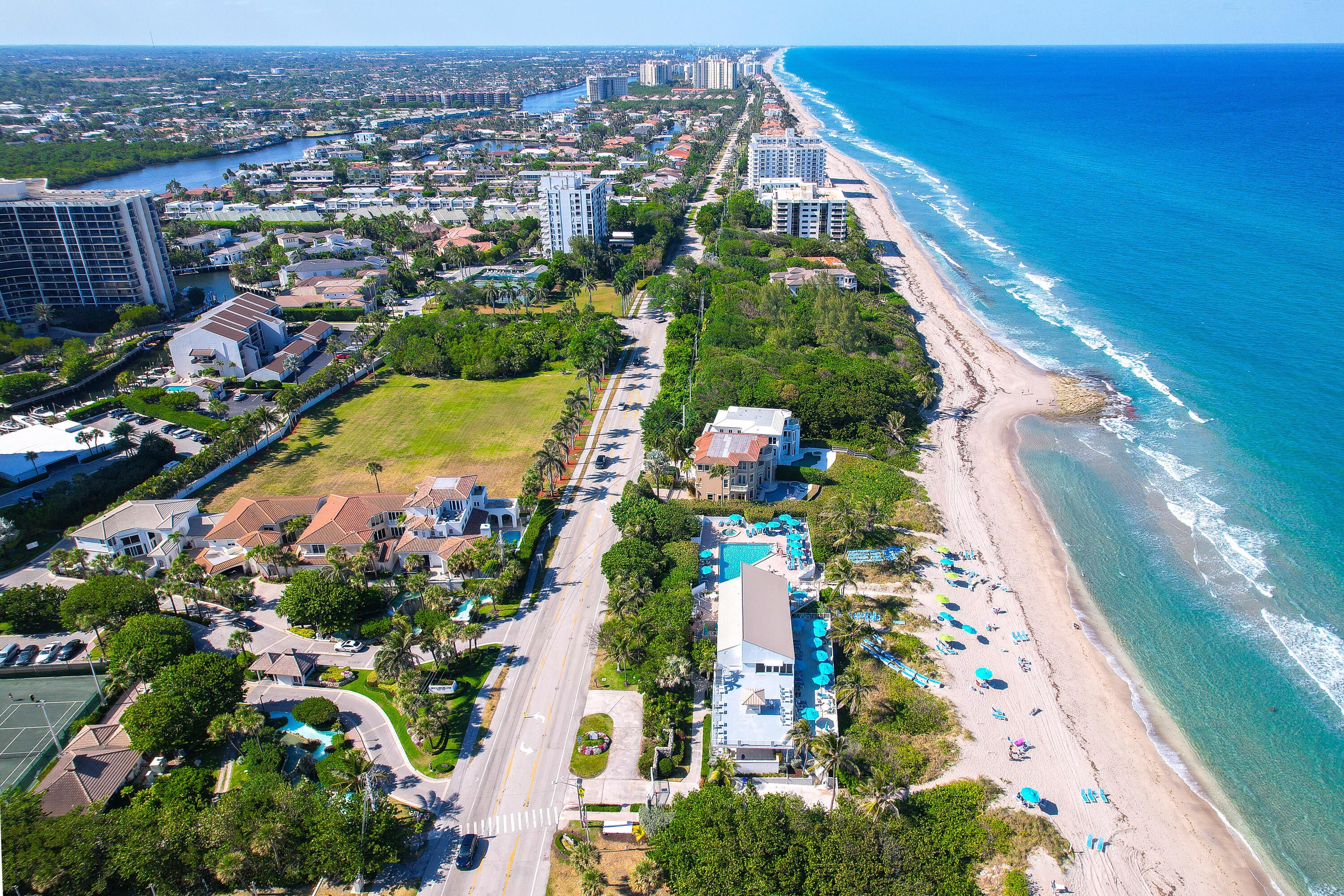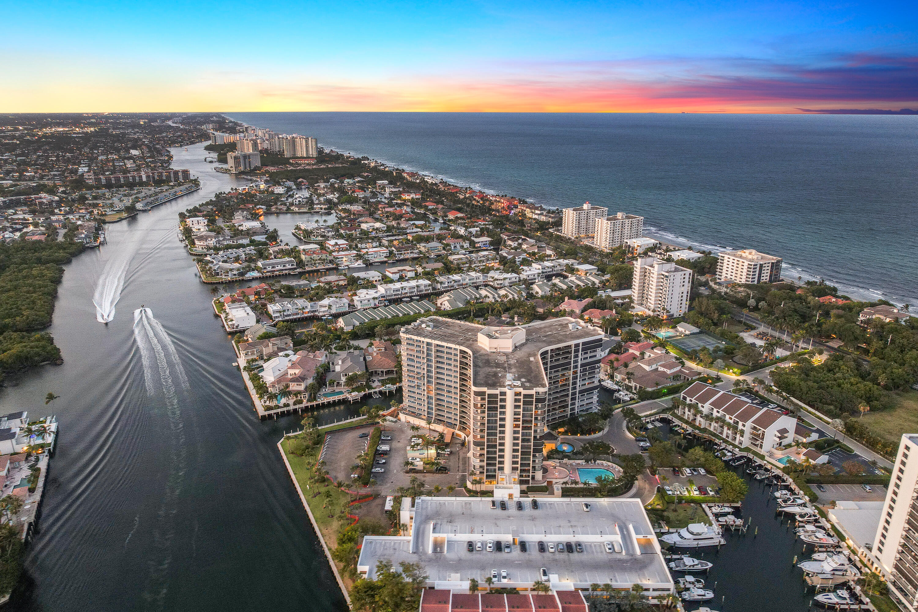 This well-appointed three-bedroom, southeast corner condo offers over 2,000 square feet of bright, airy living space in an exclusive Highland Beach community along scenic A1A. Enjoy stunning views of the ocean, marina, and pool, along with direct access to a private oceanfront beach club. The thoughtfully designed open floor plan seamlessly connects the expansive living room, dining area, and kitchen, creating an ideal setting for entertaining or everyday relaxation. Floor-to-ceiling impact windows fill the home with natural light and open to a wraparound balcony that showcases the surrounding coastal scenery. The gourmet kitchen is equipped with an oversized island, abundant cupboard space, wall oven and microwave,a built-in serve counter, and both a formal dining area and eat-in breakfast nookperfect for casual meals or elegant gatherings. The spacious primary suite features a custom walk-in closet, a makeup vanity, and a luxurious bathroom with floor-to-ceiling marble tile, dual sinks with extended counter space, dual shower heads, a built-in seat, and a frameless oversized shower. Additional highlights include a newer A/C, a double-door entry, inlaid marble flooring, full-size washer and dryer, and a hotel-style lobby that welcomes you home with sophistication. Residents of this prestigious Boca Highland enclave enjoy resort-style amenities including a 24-hour concierge, state-of-the-art fitness center, tennis courts, and a secure, gated community setting along the Intracoastal. All current assessments paid by seller.