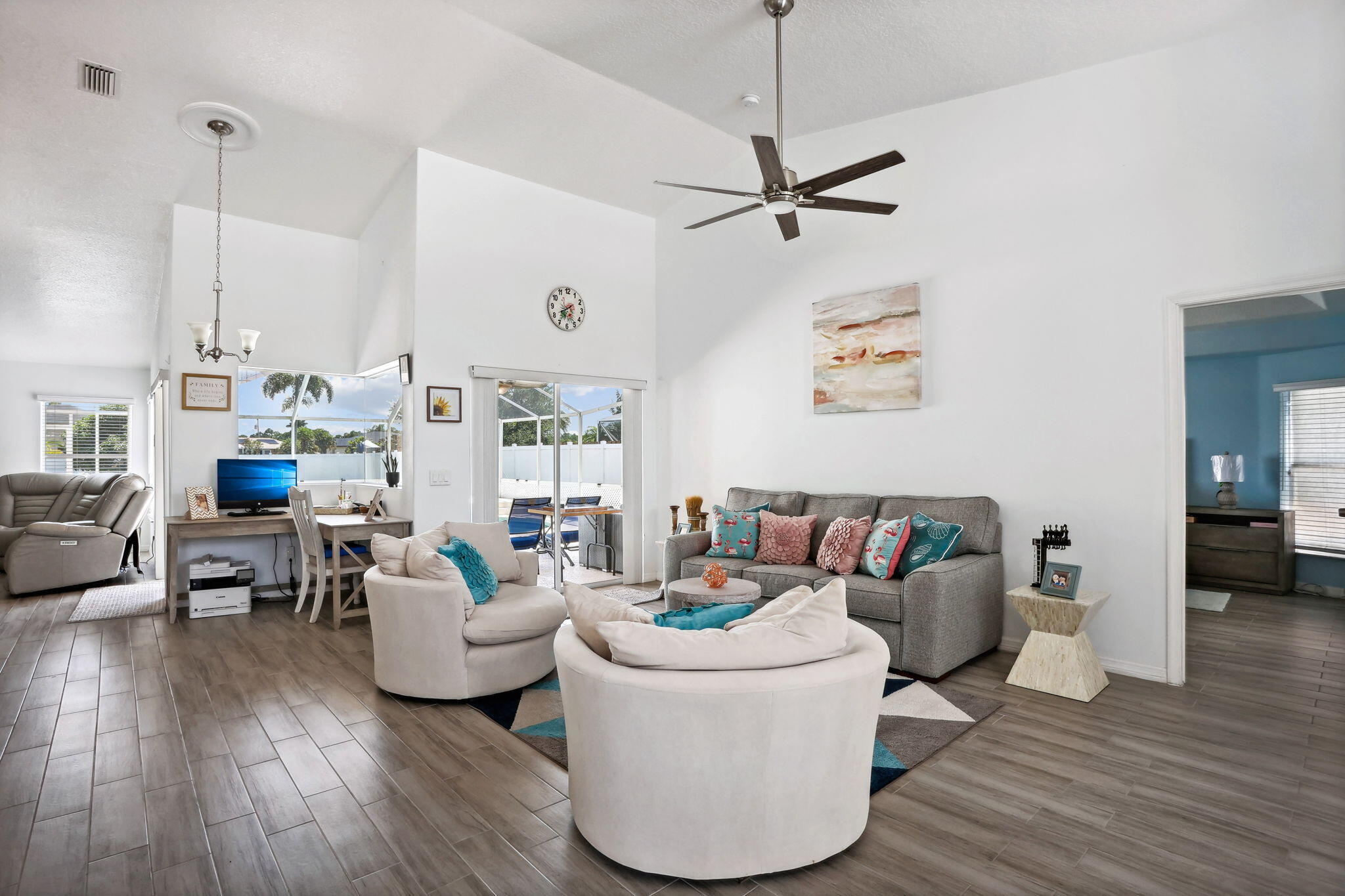 Gorgeous 4-bedroom, 3 bath pool home on a private oversize .38-acre lot backing to a canal. Large paver circular driveway (5,000 sqft +/-). Tile wood look flooring in all living areas & 2 bedrooms. Gorgeous kitchen with quartz countertops, SS appliances, hardwood cabinets, Split bedrooms with updated guest bath between 2 bedrooms & separate hallways to 4th bedroom & updated cabana bath. Trey ceiling, 2 walk-in closets & luxurious FULLY REMODELED bath in master suite. NEW ROOF 2024! Huge, screened patio, beautiful propane heated pool & spa, . Accordion shutters including around covered patio area. SELLER MOTIVATED DO NOT MISS THIS AMAZING HOME LOCATED IN THE BEST LOCATION IN PSL! MINUTES TO BEACHES, RESTAURANTS AND SHOPPING CENTERS!!! SELLER CONTRIBUTING TOWARDS BUYERS CLOSNG COST!