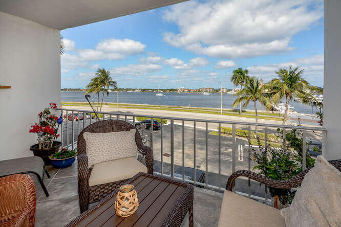 Enjoy front row seats to the boat show & sweeping views of Palm Beach's intracoastal waterway & the Island of Palm Beach from this perfectly positioned, updated 2 bedroom unit in Yacht Club Towers. This rarely available end unit offers a stylish, modern interior featuring an upgraded kitchen & bathrooms, hand scraped wood flooring & a spacious entertainment ready balcony overlooking the water.Highlights include: Assigned parking & ample guest parking, Community pool perfect for a post waterfront walk dip, Boutique building with only 44 residences, EXCEPTIONALLY LOW HOA covers water, sewer, trash, basic cable & building insurance. Small pets & rentals allowed with HOA approvalMinutes from premier shopping & dining, The Kravis Center, & PBIA.Come fall in love with your new view!