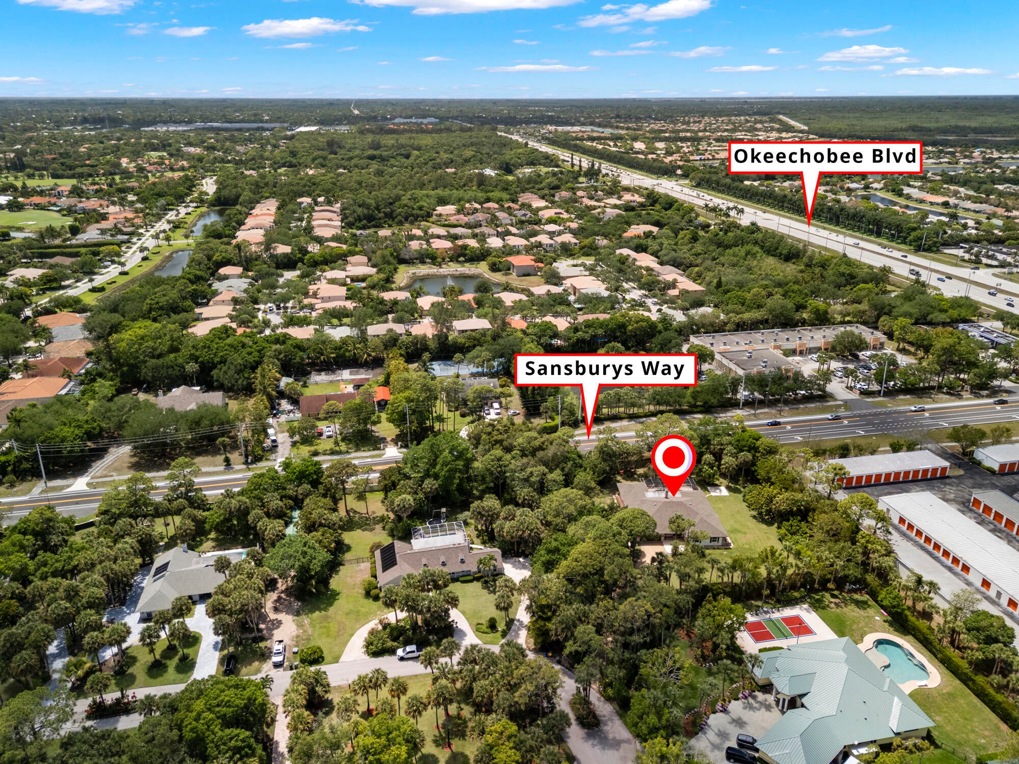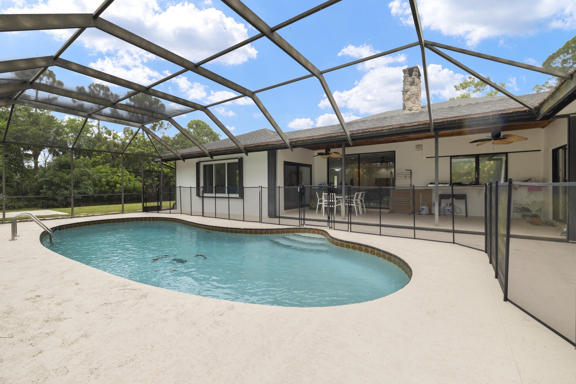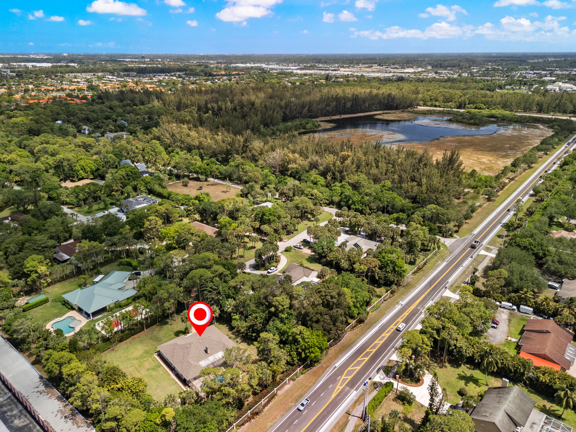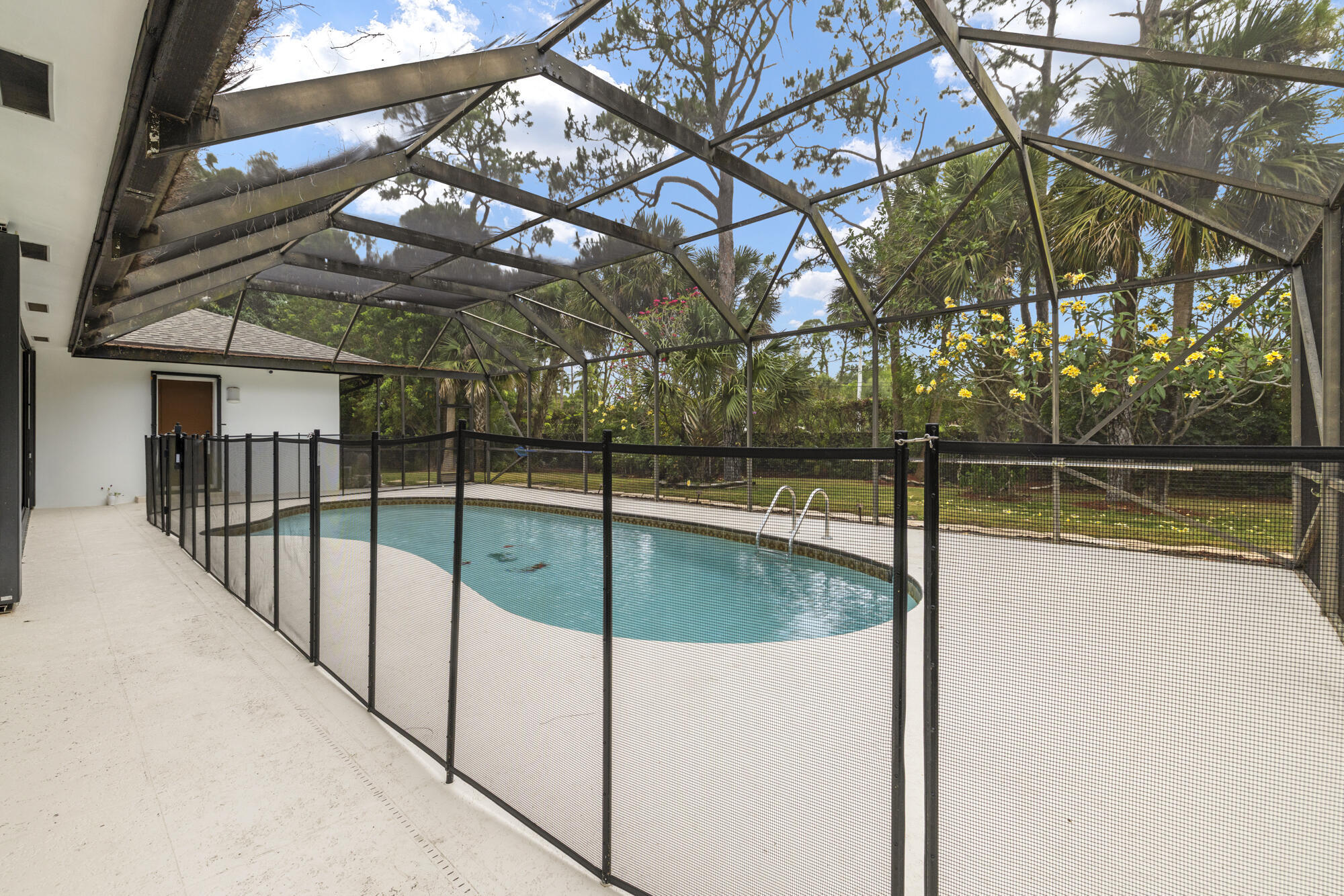 This stunning estate offers 5 oversized bedrooms, a flex room that can be converted into your sixth bedroom, 2 living rooms, renovated kitchen, fireplace, formal dining room, cabana bath, and separate laundry room--all across 4,100+ sq ft of living space. Oversized primary bedroom and bathroom with dual sinks and soaking tub. Situated on a 1.1-acre lot, the home features a screened, heated pool and a huge backyard ideal for birthdays, and entertaining. The home also includes impact windows, a new roof (2022), (2019) A/C, and a generator hook up. Enjoy a dramatic extended driveway with ample parking for guests, plus a 2-car garage. Surrounded by rare flowering plants and mature fruit trees including mango, avocado, papaya, lychee, sugar apple, and coconut, plus a vegetable garden.Located in a low-HOA gated community, just minutes away from top-rated schools like The King's Academy, Publix, restaurants, the amphitheater, South Florida Fairgrounds, PBI, Turnpike, and all your favorite stores. This is your chance to own a piece of land in South Florida while being close to everything you needall within a mile!
