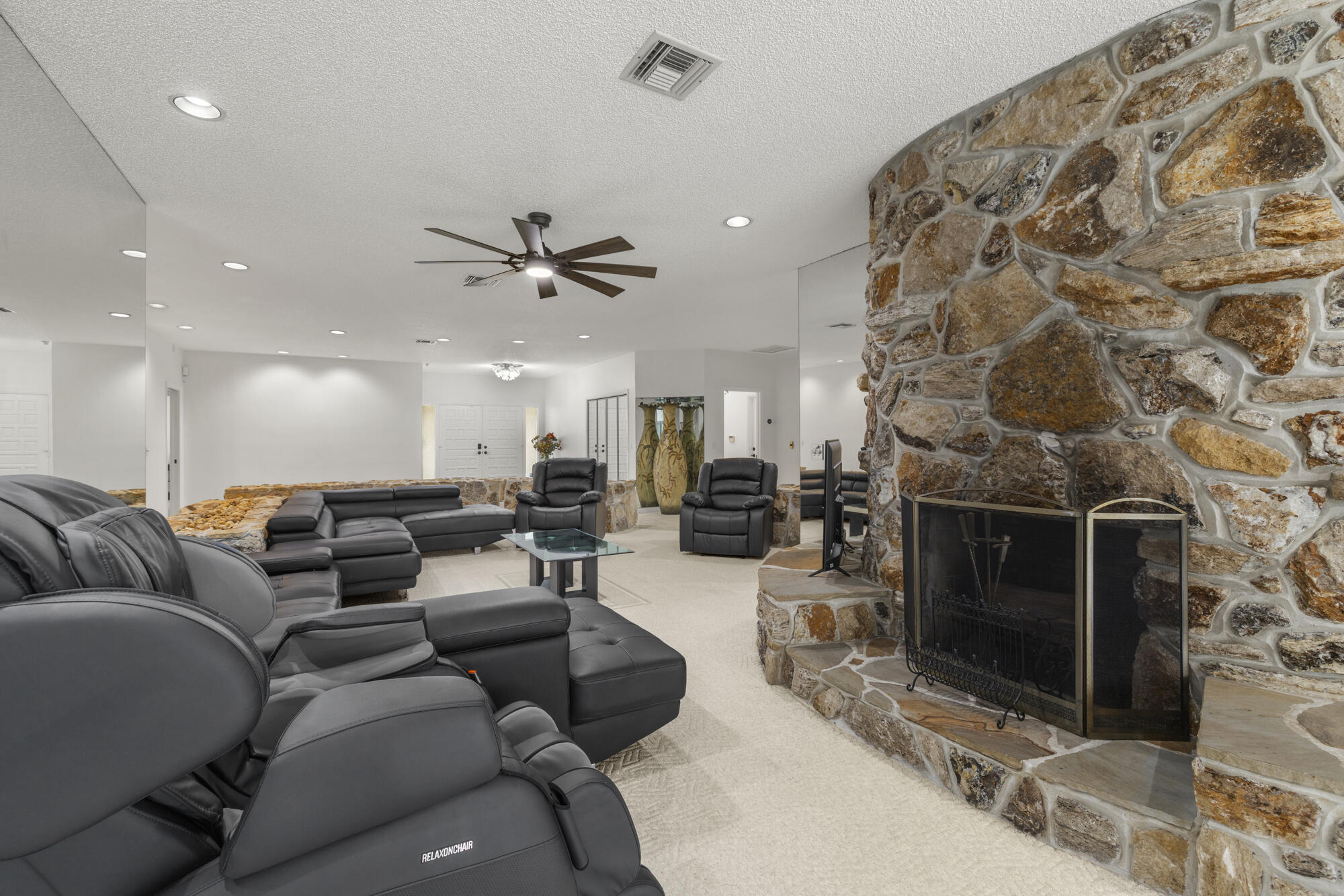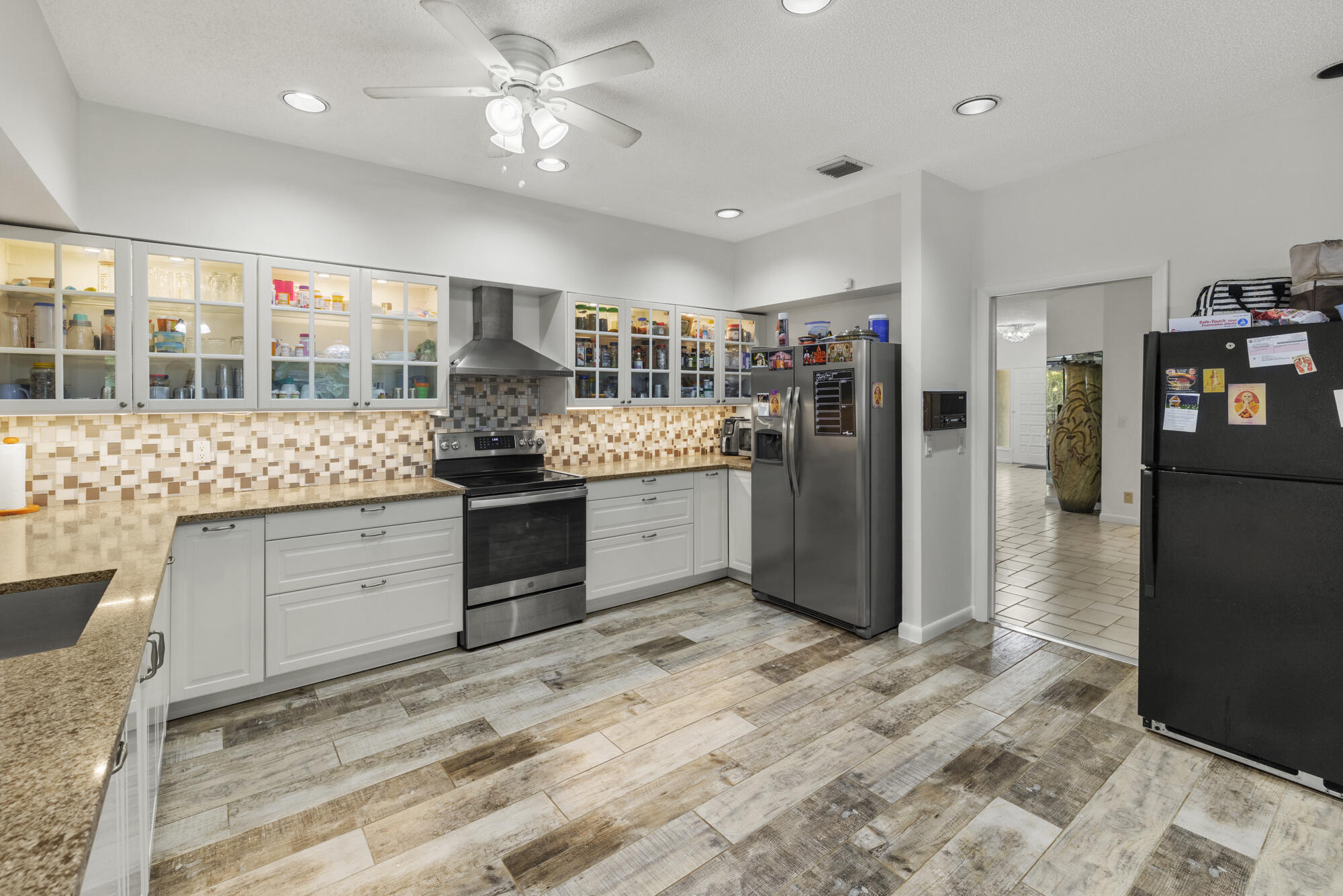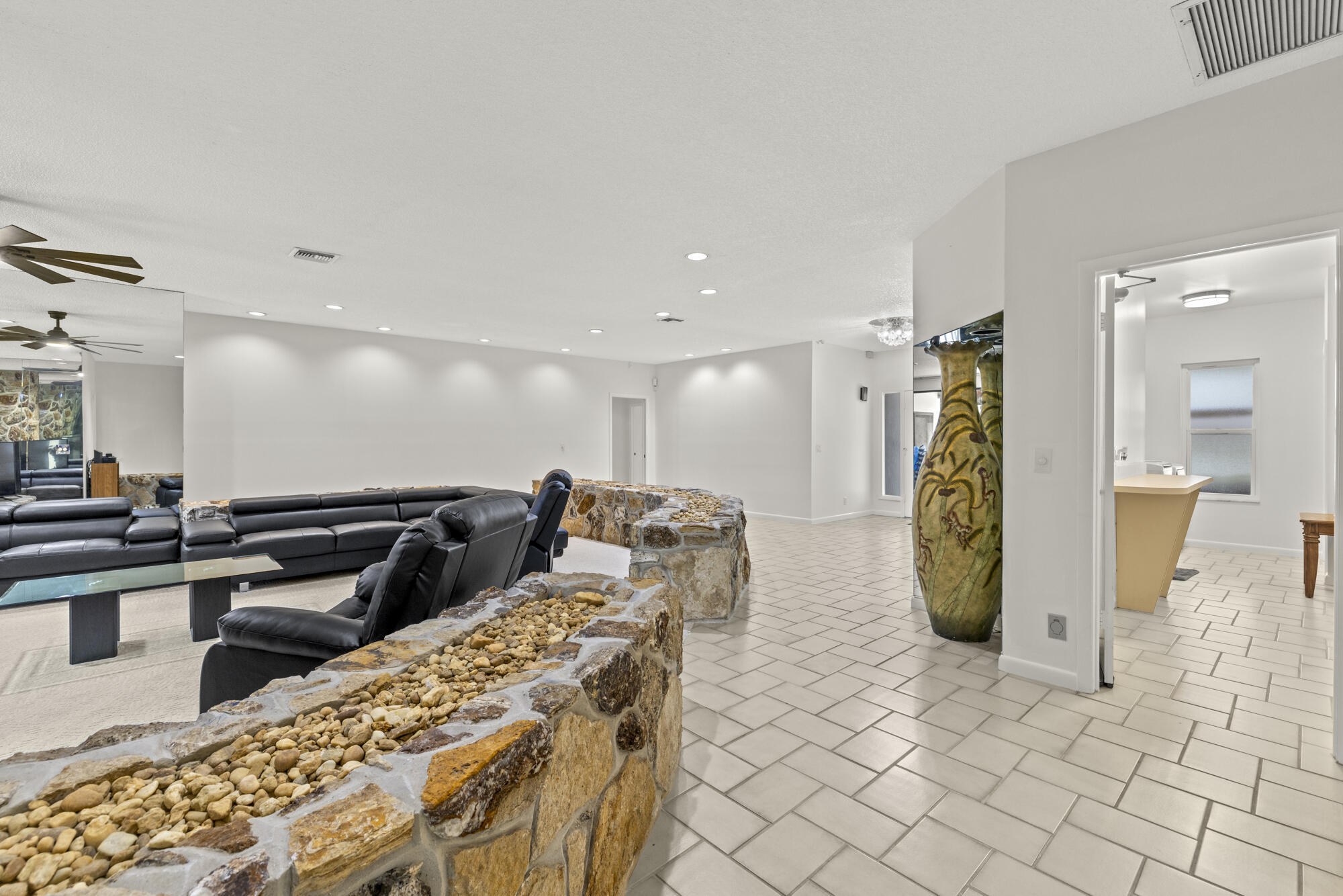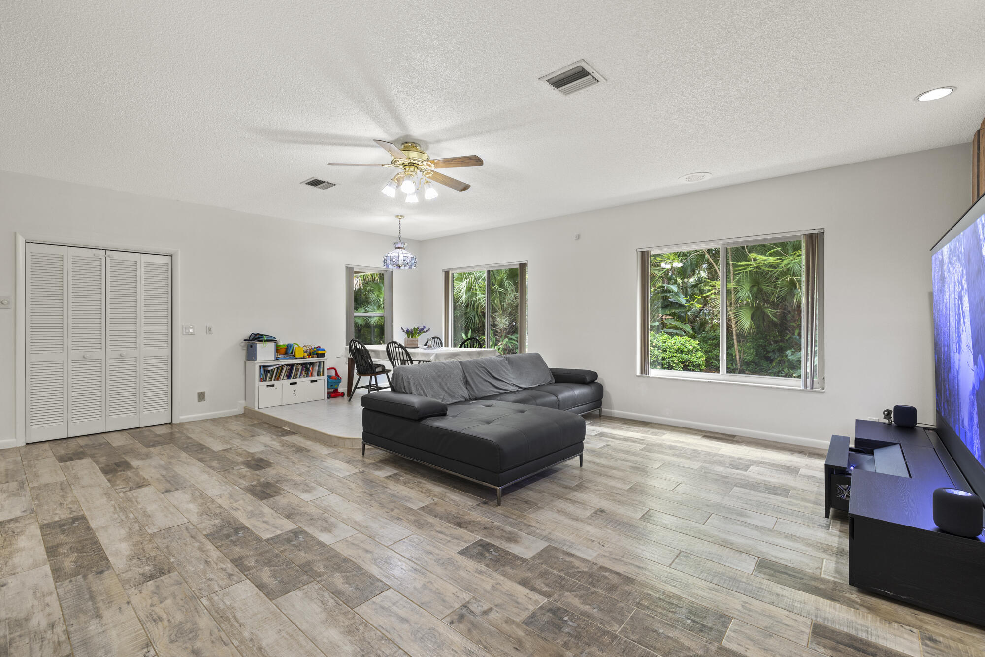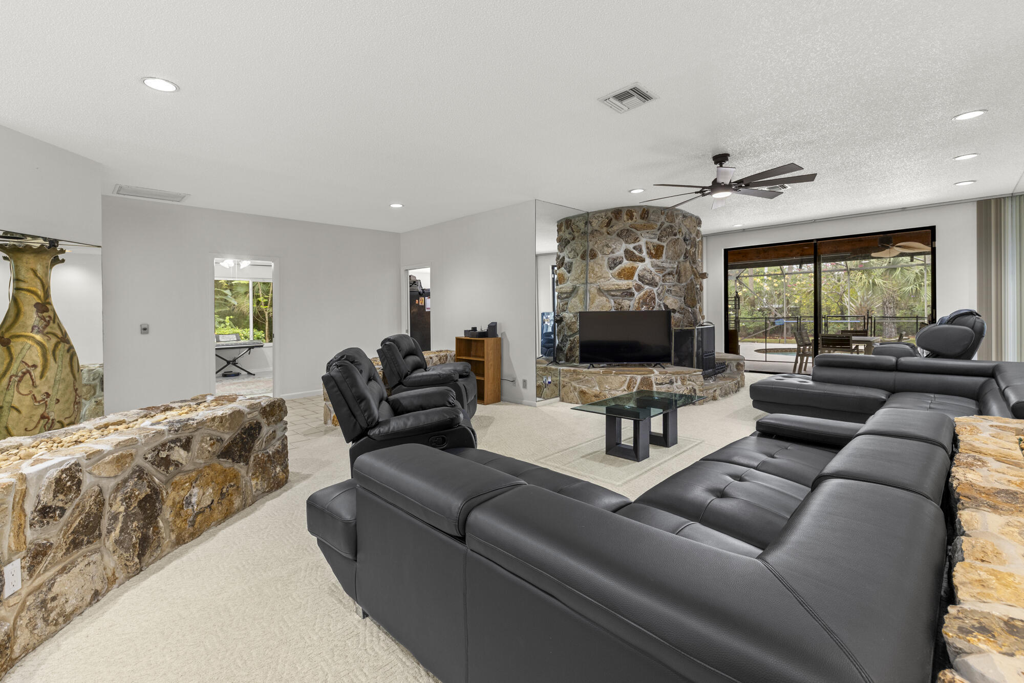 This stunning estate offers 5 oversized bedrooms, a flex room that can be converted into your sixth bedroom, 2 living rooms, renovated kitchen, fireplace, formal dining room, cabana bath, and separate laundry room--all across 4,100+ sq ft of living space. Oversized primary bedroom and bathroom with dual sinks and soaking tub. Situated on a 1.1-acre lot, the home features a screened, heated pool and a huge backyard ideal for birthdays, and entertaining. The home also includes impact windows, a new roof (2022), (2019) A/C, and a generator hook up. Enjoy a dramatic extended driveway with ample parking for guests, plus a 2-car garage. Surrounded by rare flowering plants and mature fruit trees including mango, avocado, papaya, lychee, sugar apple, and coconut, plus a vegetable garden.Located in a low-HOA gated community, just minutes away from top-rated schools like The King's Academy, Publix, restaurants, the amphitheater, South Florida Fairgrounds, PBI, Turnpike, and all your favorite stores. This is your chance to own a piece of land in South Florida while being close to everything you needall within a mile!