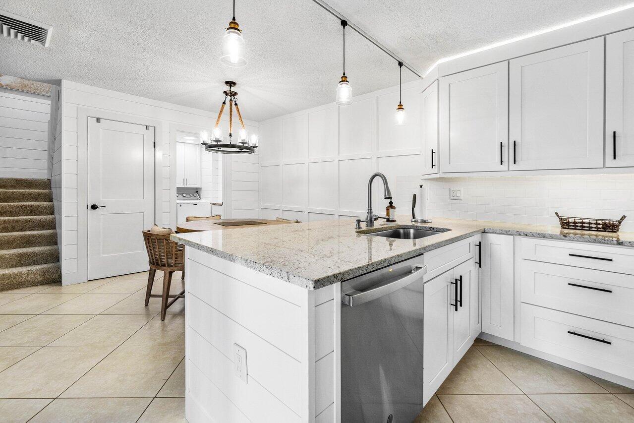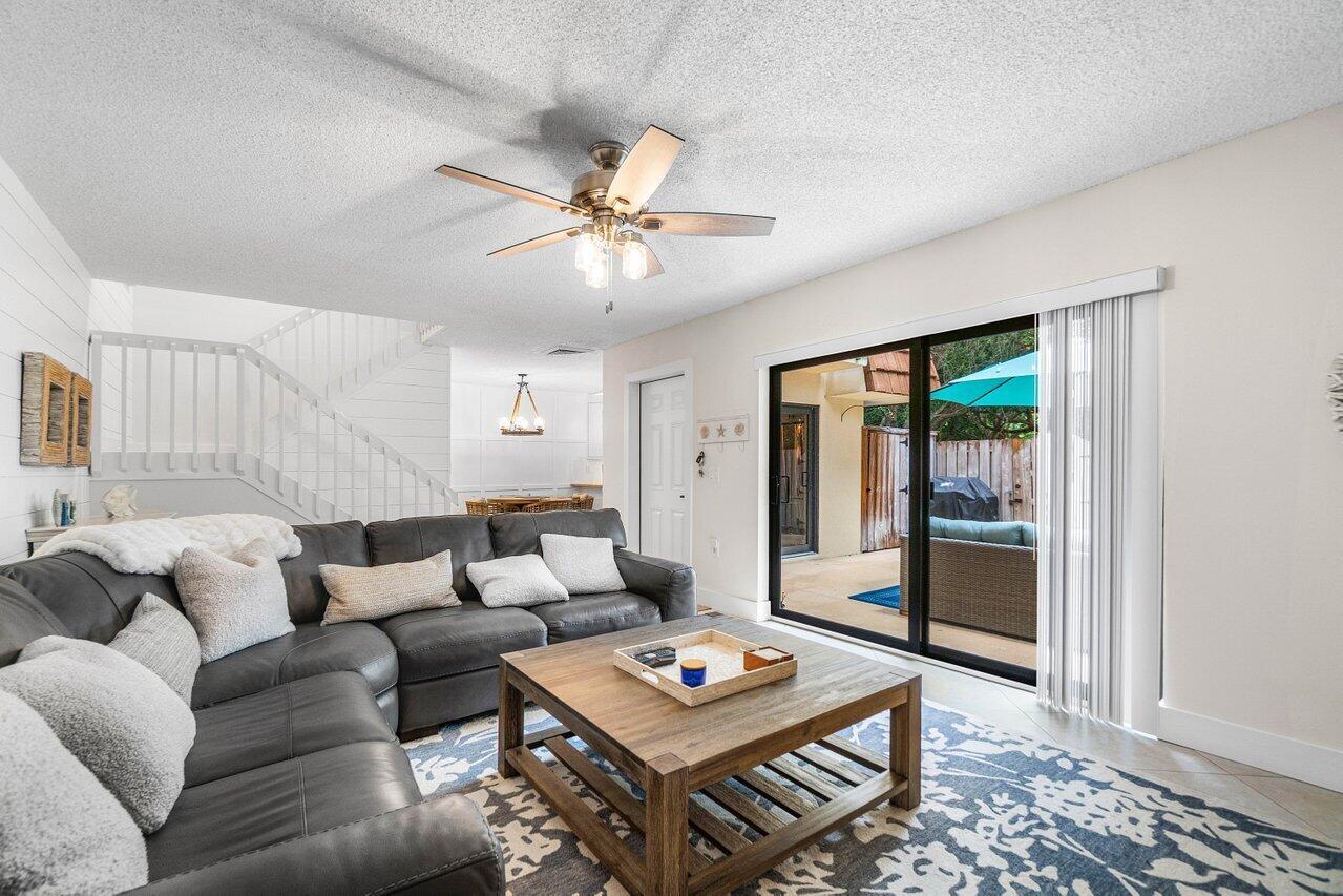 This beautifully renovated home, ideally located between the Intracoastal and Jupiter Beach/Juno Pier, offers luxurious coastal living just steps from resort-style amenities like a pool, tennis, pickle ball, and basketball courts. Inside, you'll find fresh paint, new baseboards, shiplap and box wall accents, and a modern kitchen with granite countertops, white shaker cabinets, custom lighting, and newer stainless steel appliances. All three bathrooms have been fully remodeled, with added upgrades including new closet doors, ceiling fans, and light fixtures. Hurricane impact sliders and a new front door ensure peace of mind, while the private courtyard--with professional grade landscape lamps that double as tiki torches--offers an inviting space to relax or entertain. This is a ONE OF A KIND