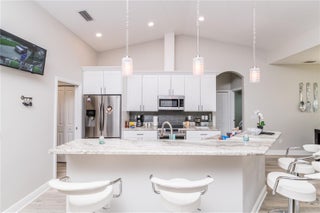 Absolutely Stunning Newer Construction home. Boasting 4 Bedrooms and absolutely Loaded with upgrades. Sitting on over a quarter Acre Lot. No CDD fees, No HOA Fees. Hurricane Impact Windows and Doors, Porcelain Tile throughout, Solid Custom Wood Cabinets with soft close drawers, with countertops enrobed in Granite, all stainless appliances, Custom Ceiling Fans, LED lighting throughout.. Large Principal room with oversized Walk-In Closet. Custom finishes Blinds Throughout from blinds to Crown Moldings, 12' Vaulted Ceilings. Completely fenced and gated with an outdoor oasis that has an large screened in enclosure boasting an oversized pool with spa, outdoor kitchen built in grill, covered seating area with fan and electric. Peaceful and serene then the Huge XXXL covered building next to the