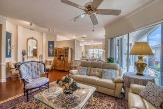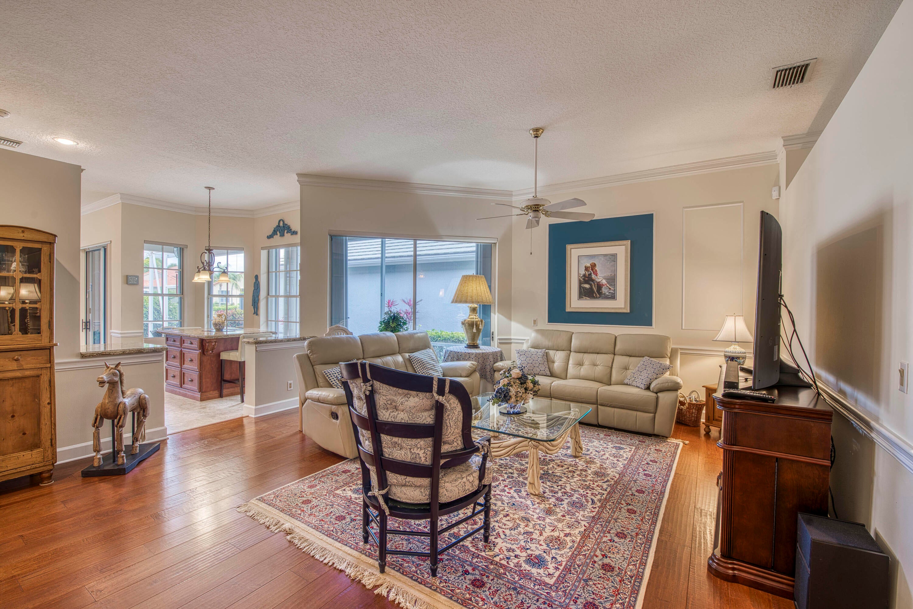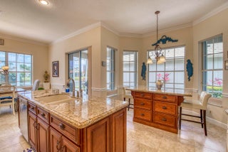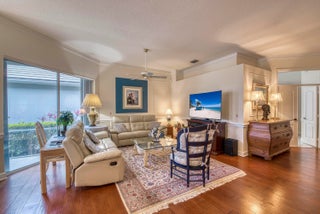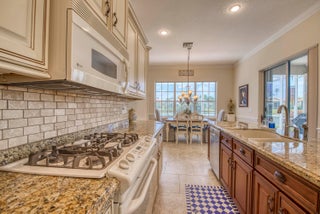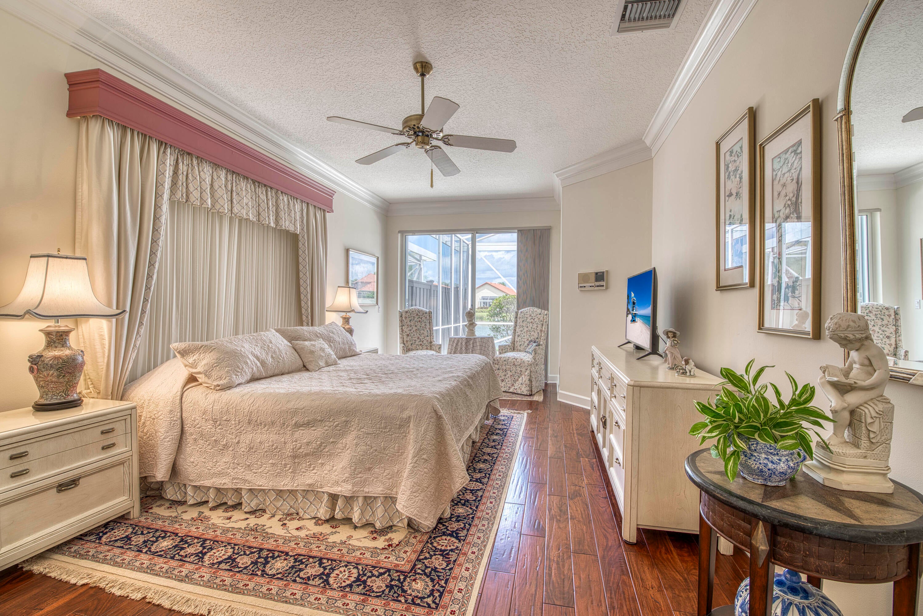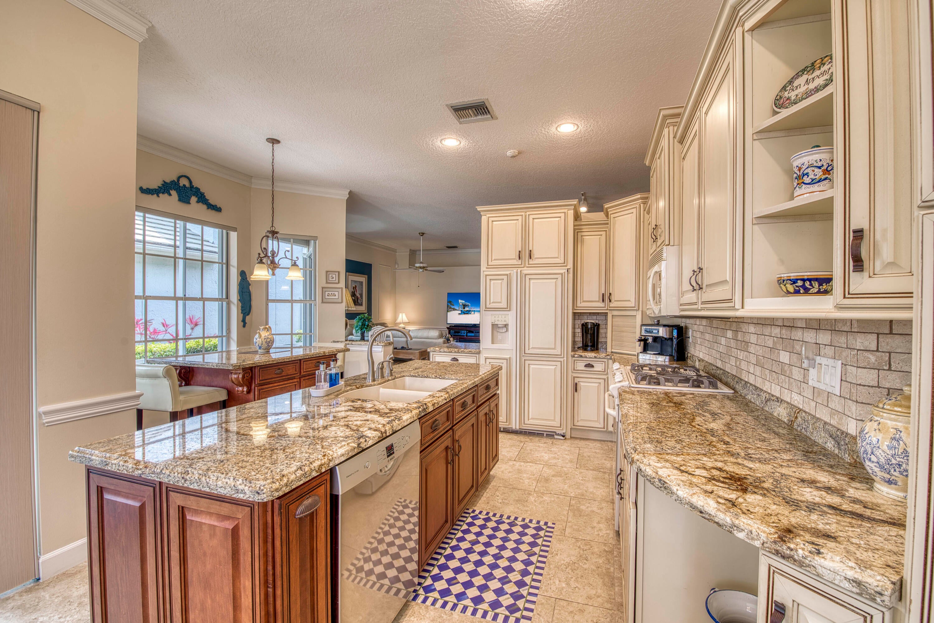 Experience effortless Florida living in this meticulously maintained 3-bedroom, 3-bath residence nestled within the exclusive Masters at Eagleton Pointe at PGA National. Perfectly positioned for easy access to parks, recreation, and world-class community amenities, this home blends comfort, style, and convenience. The updated Tuscan-inspired kitchen showcases custom alabaster-toned cabinetry, coordinated granite countertops, a stone backsplash, and a cozy snack bar, perfect for casual meals and relaxed gatherings. The expansive primary suite offers a true retreat, complete with a tranquil seating area, sophisticated en-suite bath, walk-in closet, and sliding doors leading to the covered patio for seamless indoor-outdoor living. Additional highlights include a spacious laundry room withabundant storage and a dedicated sink, as well as a versatile convertible bedroom ideal as a home office or guest suite. Step outside to a private, screened-in patio surrounded by lush tropical landscaping and serene lake views, a perfect backdrop for both relaxation and entertaining. Whether you're enjoying the lanai or the outdoor seating area, this home is designed to embrace the very best of the Florida lifestyle