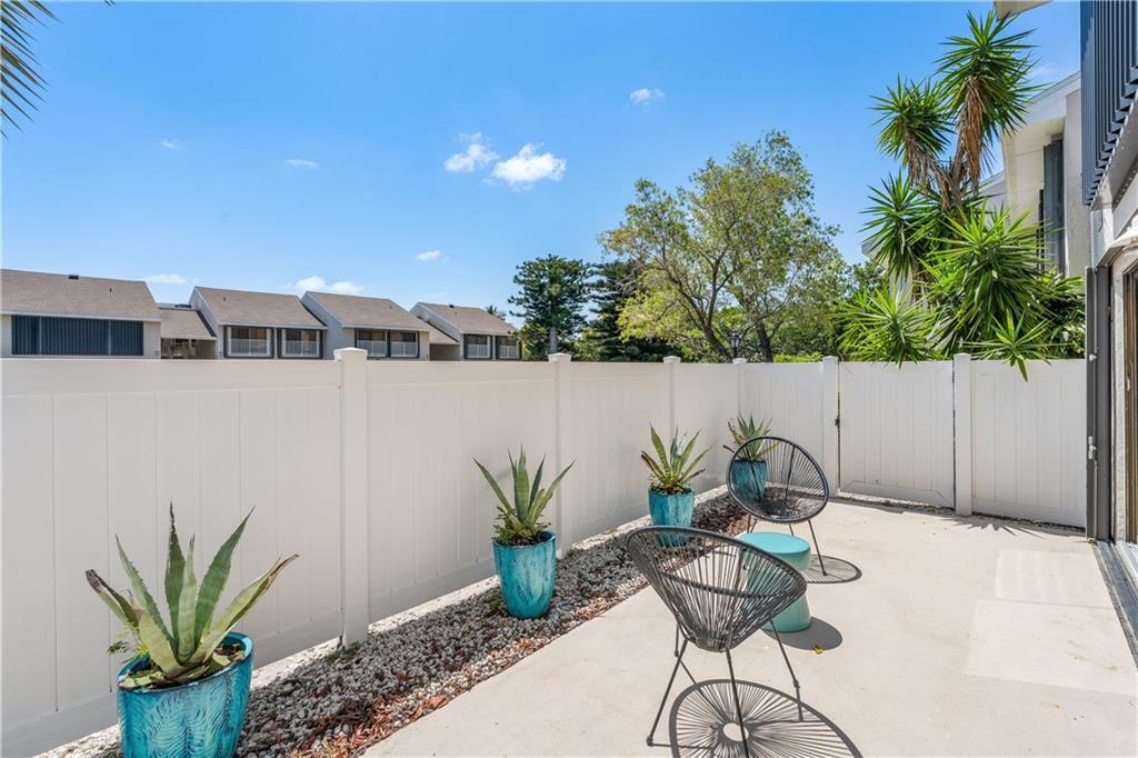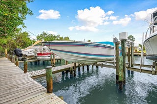 Live the Florida dream in this modern coastal townhome nestled in a premier waterfront community. Available but sold separately is a boat slip w/13,000 lb lift, you're just minutes from open water via the Fort Pierce Inlet--ideal for effortless days on the boat. Unwind on the screened porch overlooking a private, fenced yard or take advantage of the community's boardwalks, tennis courts, & pool w/both beach & Intracoastal access. Inside, enjoy a sun filled layout w/multiple sliders, a serene master suite with dual vanities, and stylish, relaxed furnishings--negotiable to make your move seamless.