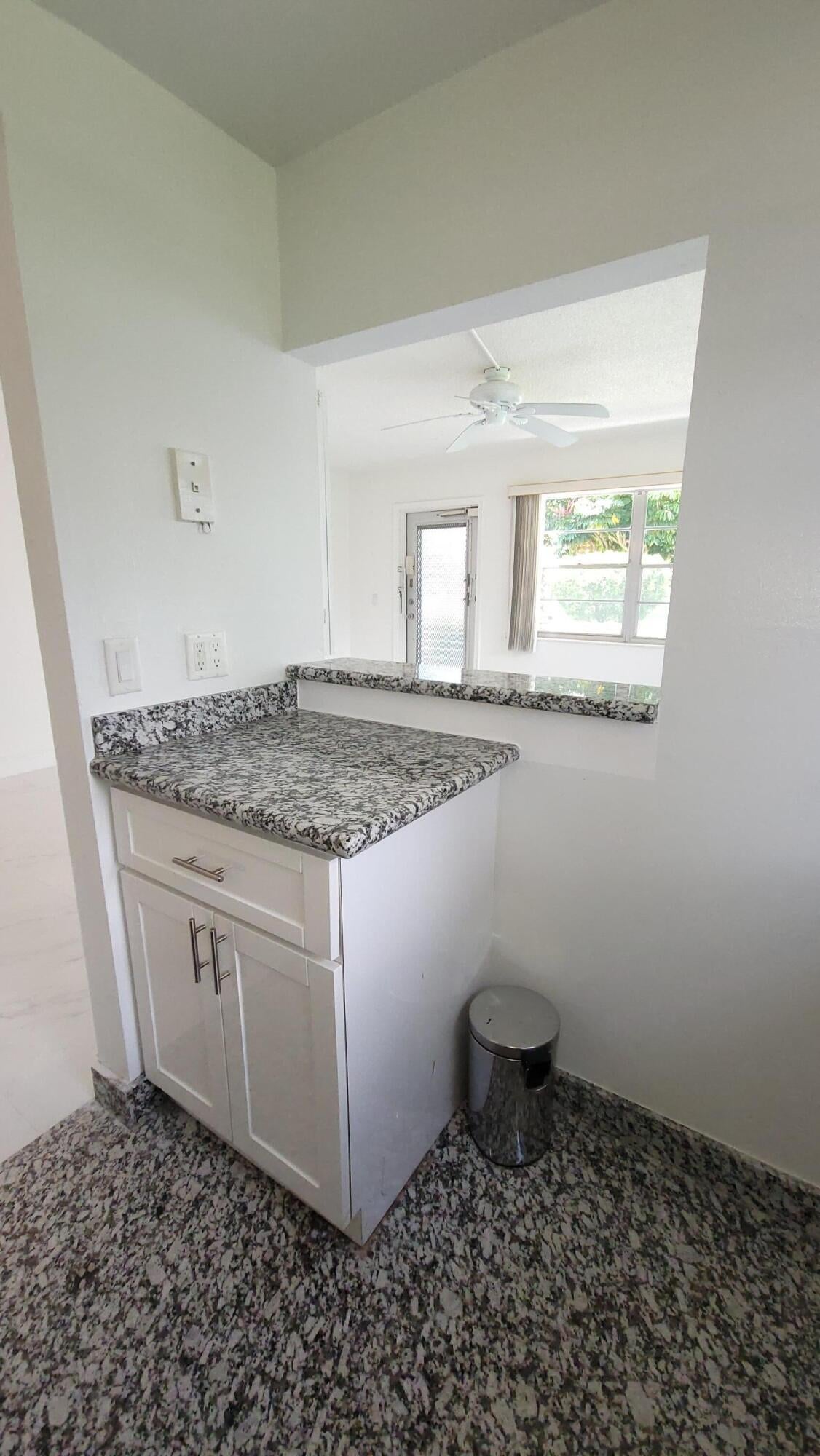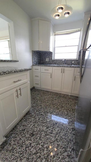 Beautiful ground floor, corner unit in Century Village. Welcome to the paradise of South Florida, resort-style social living at its absolute best. Enjoy wonderful garden views from this beautifully renovated, one bedroom, one and one-half bath condo located in sunny West Palm Beach Florida, and experience the distinct Century Village ''way of life'' with luxurious recreational facilities and abundant social activities. Very private corner or end unit. Renovations include tile floors throughout, solid wood kitchen cabinets, glass tile backsplash and granite countertop, and newer appliances. The building is in excellent shape, recently painted and with non-slip walkways. Association has good reserves, NO planned or upcoming special assessments, no mortgages, no rentals, no pets. Welcome to the paradise of South Florida, resort-style social living at its absolute best. When you become the proud owner of a Century Village condominium, you begin the journey to experience the distinct Century Village "way of life" with luxurious recreational facilities and abundant social activities. Century Village West Palm Beach is an age restricted (+55) active adult community with 24- hour security and manned gated entrances. Century Village is situated on 29 acres, securely fenced just East of Florida's Turnpike with its two manned gates, one located on Okeechobee Blvd. and East Drive, and another on Haverhill Road and Century Blvd. Century Village is within 5 miles of the Palm Beach International Airport, Florida's Turnpike is less than one mile, I-95 is only three miles away, the Intracoastal waterway, and our pristine world-famous beaches are within 8 miles. Also within 5 miles is Rosemary Square (AKA City Place), our downtown entertainment, dining, and shopping hot spot. Palm Beach, one of the most beautiful and desirable locations in the world, is within a 20-minute drive. The Village boasts 7,854 units in 356 buildings with 309 associations (corporations). There is no master association which is unique in the state of Florida. Rather, the United Civic Organization (UCO) acts as an advisory group to the associations which send delegates to UCO meetings. The community newspaper is the UCO Reporter which is operated by the UCO Board. The magnificent 92,000 square foot Clubhouse features amenities including barber, beauty parlor, fitness center, theater, billiards, library, card playing and activity rooms, as well as an indoor pool and saunas. The newly remodeled 1209-seat theater hosts current run movies and live entertainment. Free private bus transportation within the village as well as frequent trips to shopping venues and other activities outside of the village. There are fifteen pools ensuring everyone has the possibility of living within walking distance to a pool. Other activities include tennis, petanque, shuffleboard, biking, sailing, canoeing, or just riding around in your golf cart. There is even an on-site drug store, limited medical services and free ambulatory services. The restoration of the clubhouse (which was damaged by Hurricane Frances) took many months and approximately 6 million dollars to complete. Most impressive is that this renovation required no special assessments to the members. The building is now complete and boasts a magnificent theater offering live shows by well-known entertainers and current run movies. There is a large party room that seats 512 people with a large dance floor and stage, card room, meeting rooms, hobby and craft rooms, billiard room, sewing room, music room, two exterior swimming pools and one indoor heated saltwater swimming pool, as well as shuffleboard, handball, bocce, and racquet ball courts. This beautiful new building was completely remodeled, upgraded and rebuilt to current code, including impact windows so there is no need for hurricane shutters on the building. The clubhouse is not owned by the associations, but by Beneson Capital Partners in New York, and is managed by WPRF, Inc. In addition to the clubhouse there is a large fitness center in the Hastings section of the Village that has free weights, exercise classes, various exercise machines, a resistance pool, and a regular swimming pool where water aerobics are offered. Also, for our residents we have a courtesy bus system which takes residents throughout the Village as well as to nearby stores, malls, restaurants, houses of worship and various excursions. While there are no restaurants in the Village there is a Walgreen's Drug Store, a hair salon and a doctor's office.