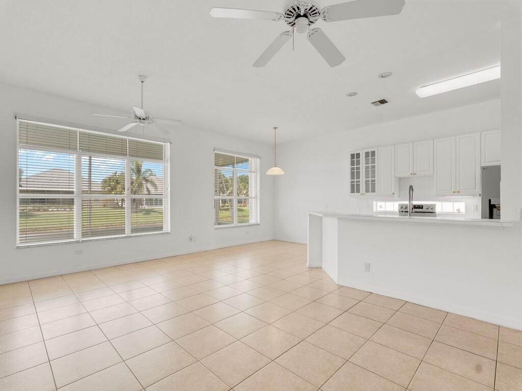 BRAND-NEW ROOF, BRAND-NEW LG STAINLESS STEEL APPLIANCES, NEW INTERIOR AND EXTERIOR PAINT, AND NEW CARPET IN BEDROOMS, ALL DONE MAY 2025. MOVE IN CONDITION! CBS Construction, 2 bedrooms, 2 baths, Den and a 2 Car Garage. Open Kitchen offers white cabinetry, and plenty of storage. Tile flooring throughout main living areas. Enjoy peace of mind with Hurricane Shutters, Re-Piped plumbing, Water Heater 2021 and A/C with UV light and smart thermostat 2021. Relax and unwind in the spacious screened-in patio overlooking a serene lake view perfect for morning coffee and evening sunsets. Kings Isle offers Resort-Style amenities, a vibrant calendar of social activities, and conveniently located near shopping, restaurants, medical facilities, and I-95. COME ENJOY THE ROYAL LIFE!