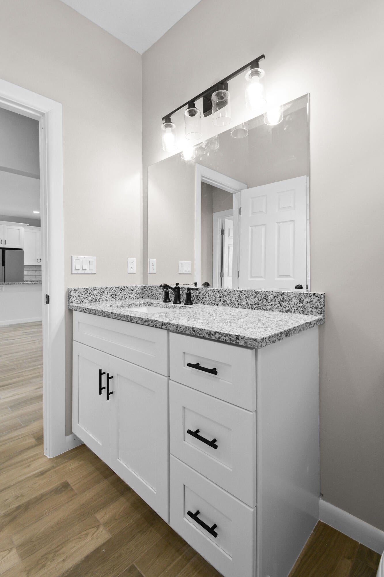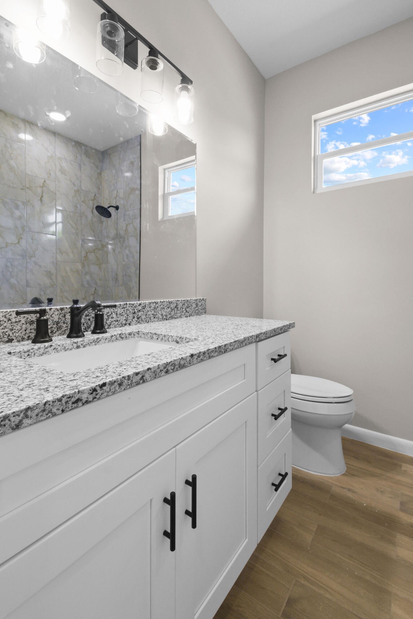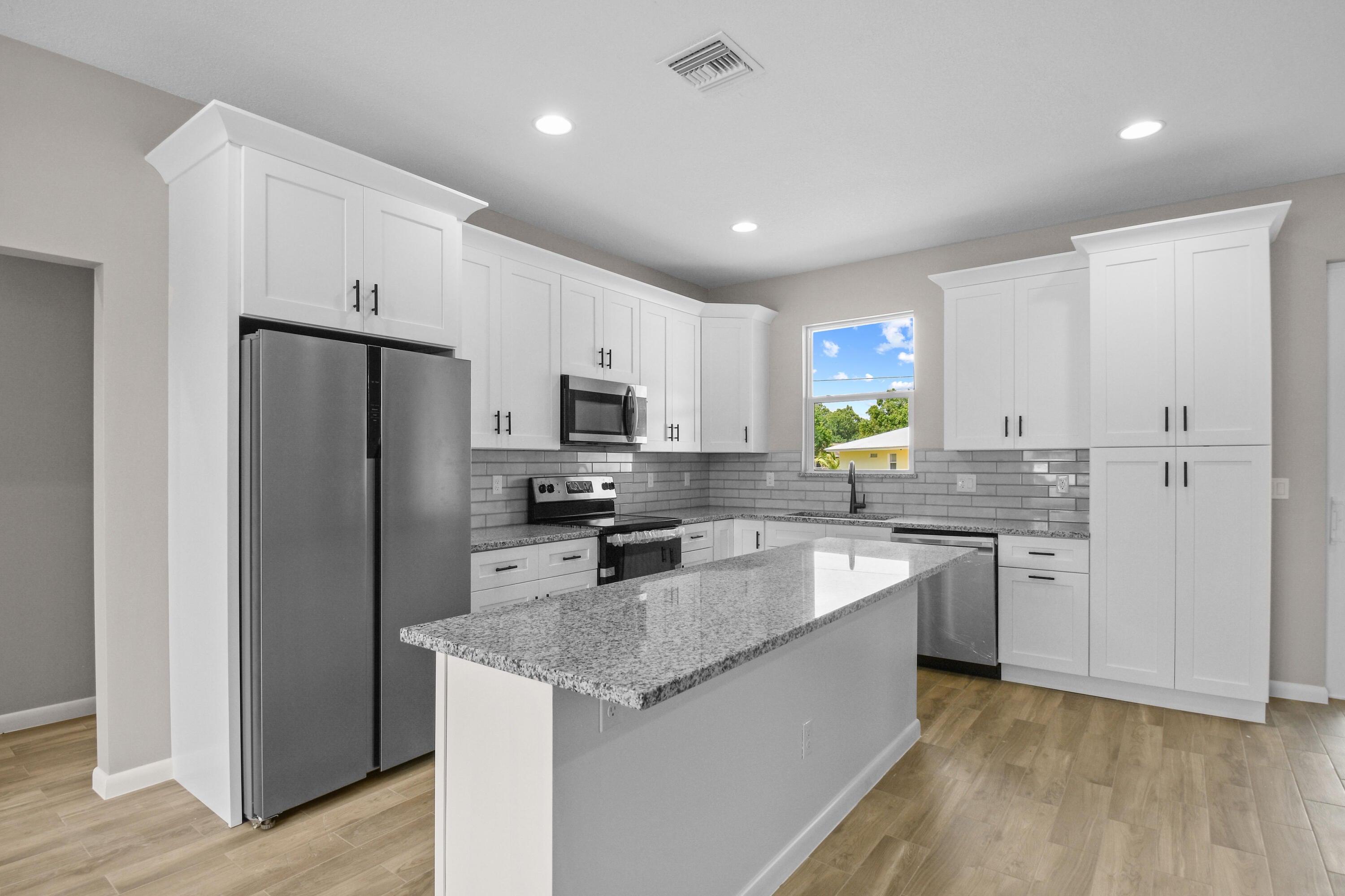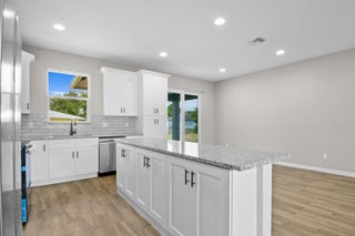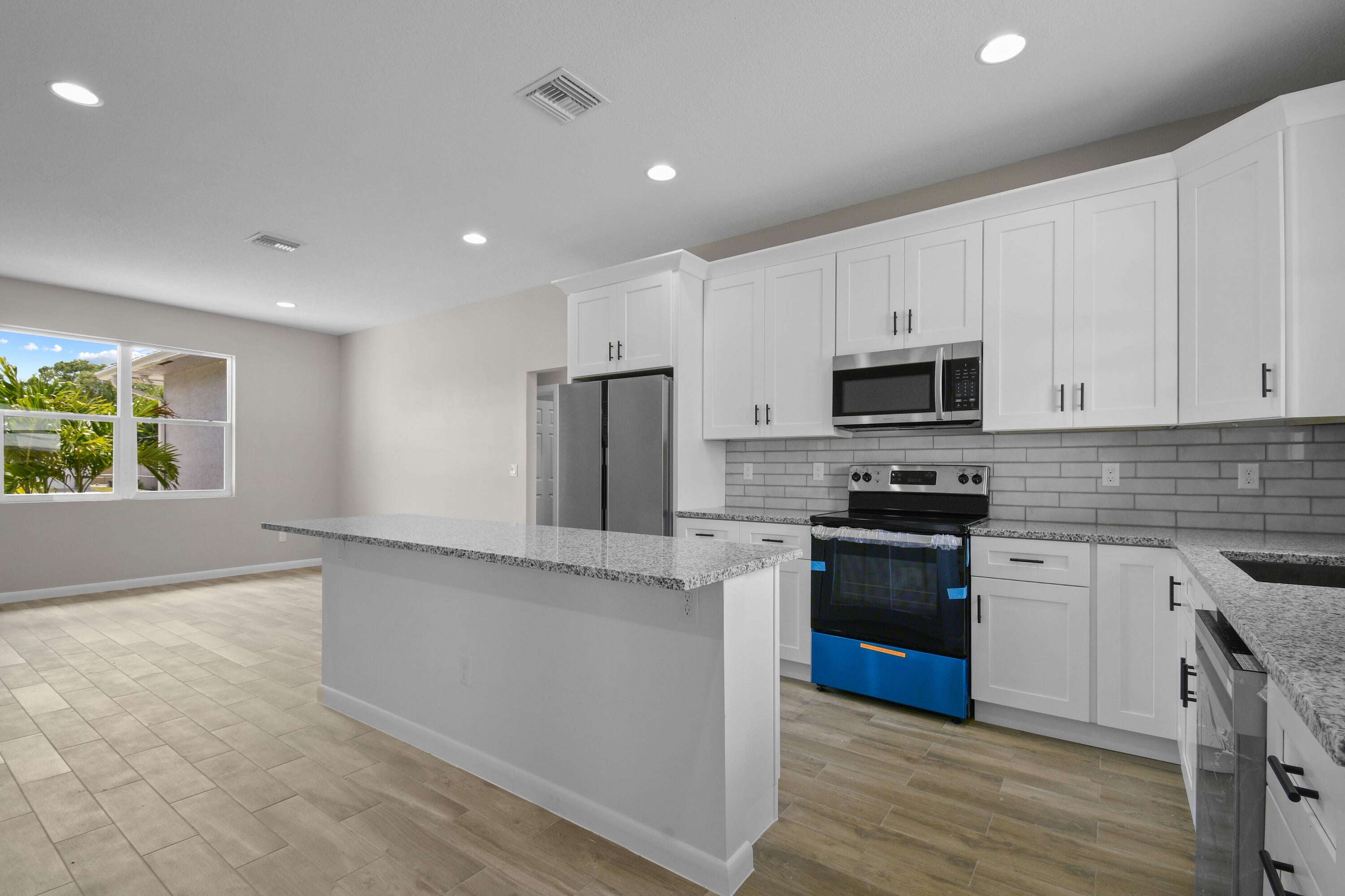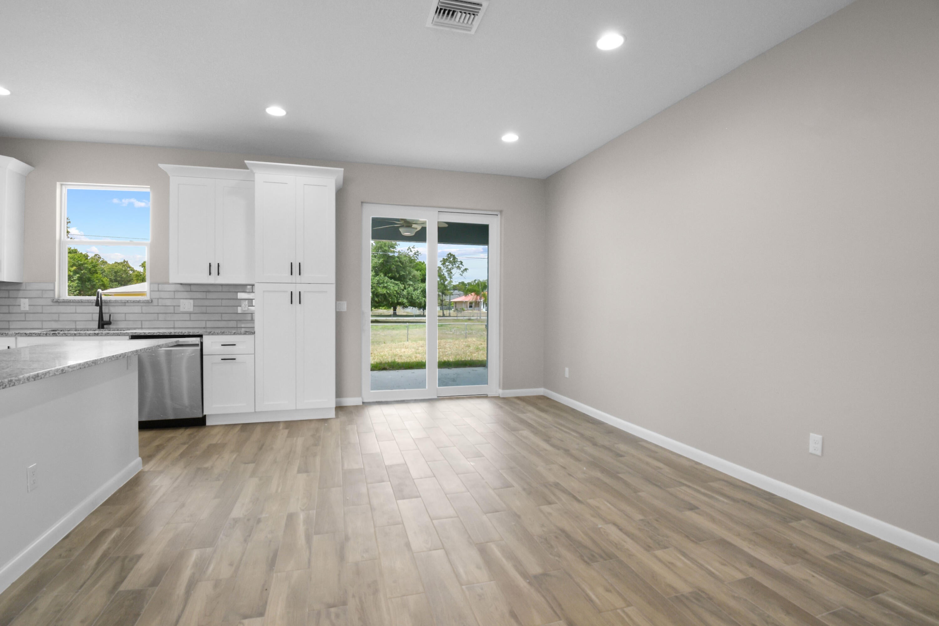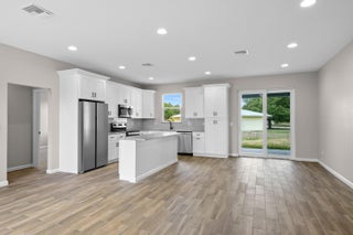 Brand new construction on an oversized lot, featuring a durable metal roof and impact-resistant windows. Inside, you'll find an open-concept layout with wood-look tile flooring that extends throughout the entire home, creating a seamless and modern feel. The kitchen showcases classic white shaker cabinets, striking granite countertops, a charming window above the sink, and stainless-steel appliances. The spacious primary suite includes a generous walk-in closet and a beautifully appointed bathroom with double vanities and a walk-in shower.Step outside to a covered back patioideal for entertainingand enjoy the added convenience of a side-mounted water softener. For extra functionality, the garage boasts an 8-foot door, offering greater clearance than standard options.