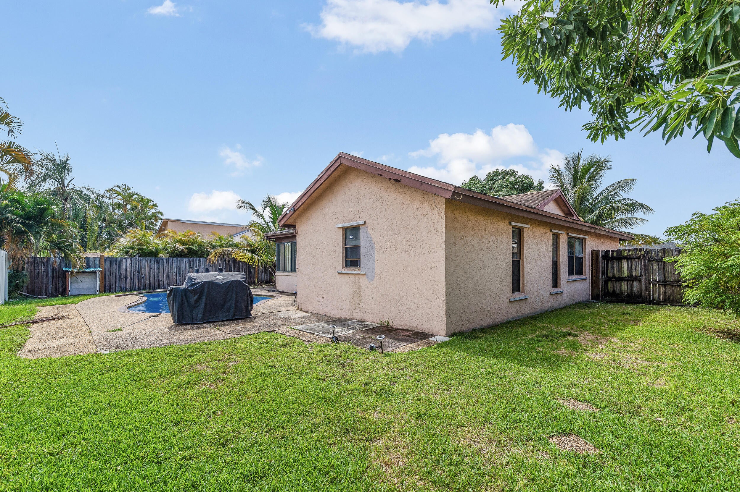 Welcome to Lauderhill, where opportunity is knocking.Tucked away on 47th Ct, shaded by a towering mango tree and a swaying coconut palm, this 3 bedroom, 2 bathroom home is full of potential. Inside, you'll find marble flooring and a solid foundation ready for your vision.Step outside to a spacious backyard with a private pool that's waiting to become the centerpiece of your weekends and gatherings. With some updates, 8611 NW 47th Ct is your chance to buy into South Florida living and create your own masterpiece.The location is hard to beat- schools, shopping, and everyday essentials are all close by. This isn't just a house, it's an opportunity to build something truly special.