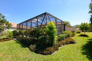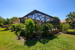AVAILABLE JUST IN TIME BEFORE NEW SCHOOL YEAR STARTS. Largest Corner Lot in Island Point. 3/2/2 Pool Home with secondary Master Suite, Island Point in PGA Village has the added convenience of having the Clubhouse within the community. Large backyard with view of lake and preserve for added privacy. Enjoy the stunning recently refinished pool with a totally covered lanai, 8-inch crown moldings, Plantation shutters, Newer A/C, Newer pool pump, Newer Water Htr, Granite Counters, New SS Appliances. HOA dues include lawn care, sprinkler system, cable, internet, & all of PGA Village's amenities and activities., has something for everyone with pickleball, tennis, heated pool, exercise facility, playground, library, billiards, conference rooms, social events and more. For the avid golfer, GOLFMEMBERSHIPS are available (but not mandatory!). Close to I95, Cleveland Clinic hospital, Mets Stadium, Tradition, Restaurants, Walmart, Publix, and Golf Courses. Plus!! fruits trees which some have already produced like Avocados, Mangoes, Orange, Kumquat and Lemons.