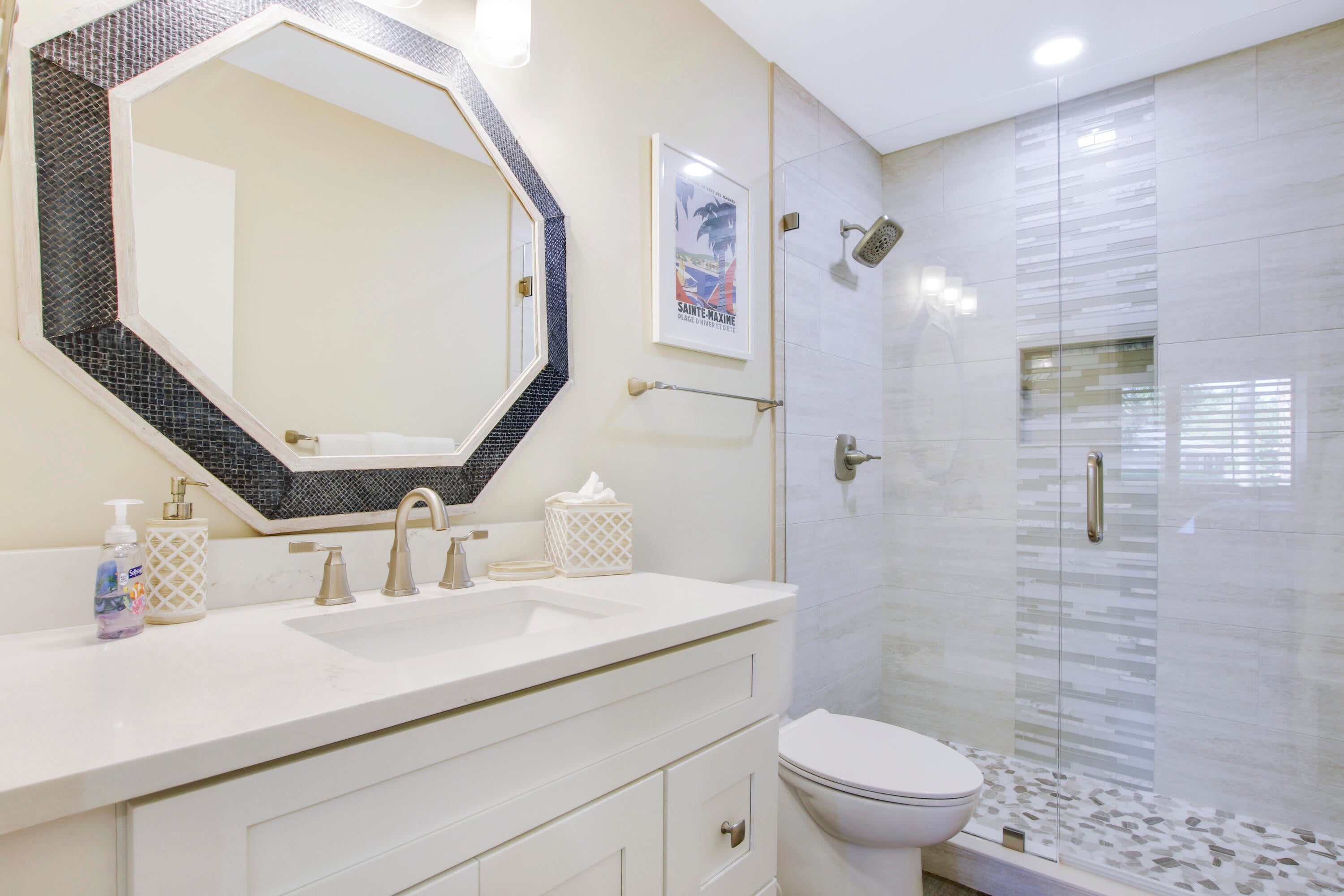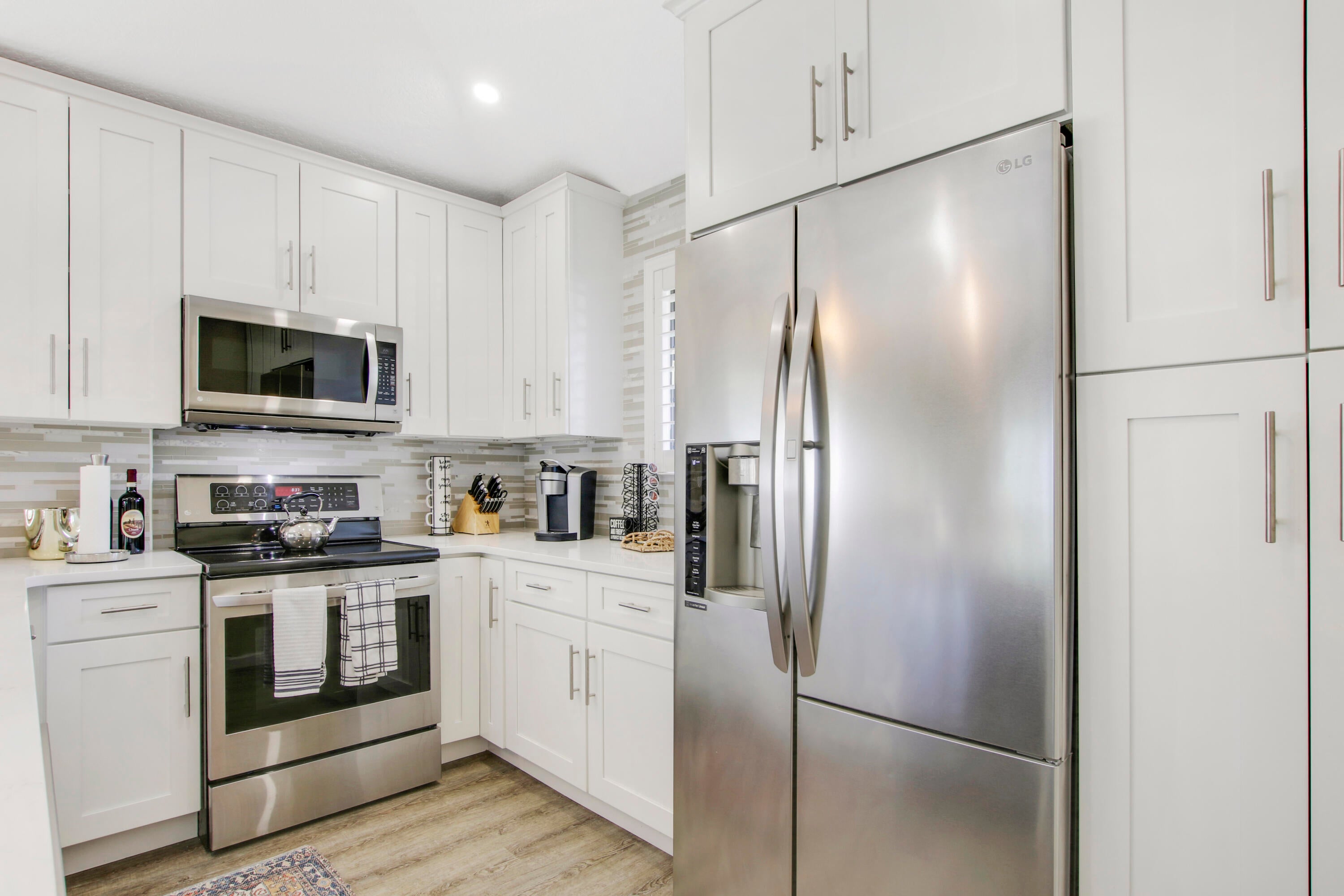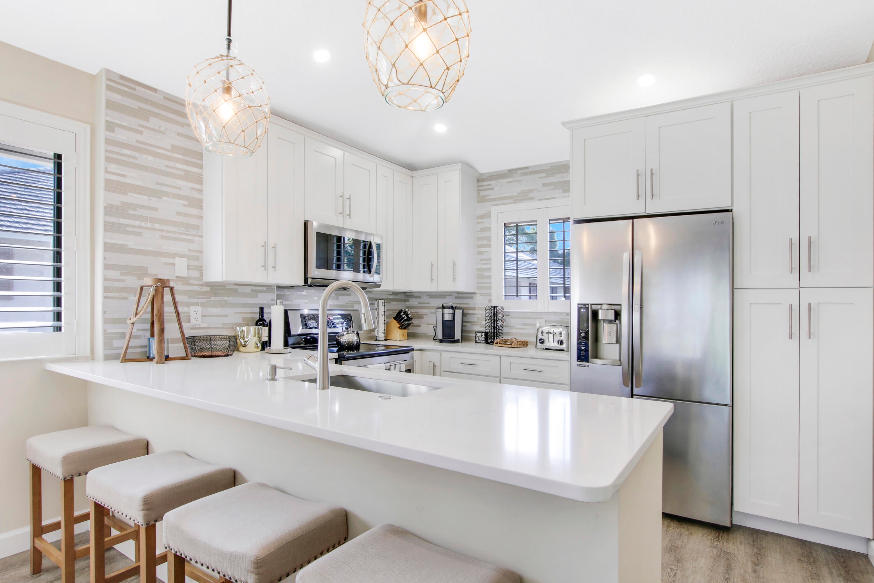 Discover paradise in this beautifully renovated 2-bedroom cottage, perfectly designed for your short-term stay. Immaculate & well-appointed, it is equipped w/ everything you need for a comfortable experience.Step into the master bedroom, where a luxurious king bed & ensuite bathroom featuring a walk-in shower await. The guestroom is thoughtfully designed w/ 2 full beds, comfortably accommodating up to four additional guests. A separate tiled shower bathroom is conveniently located just outside the guestroom.This elegant unit offers the convenience of an indoor washer/dryer, cable, WiFi & all utilities. Whether you are on a leisurely getaway or a business trip this property is the perfect place for relaxation & productivity. Rates vary by season.