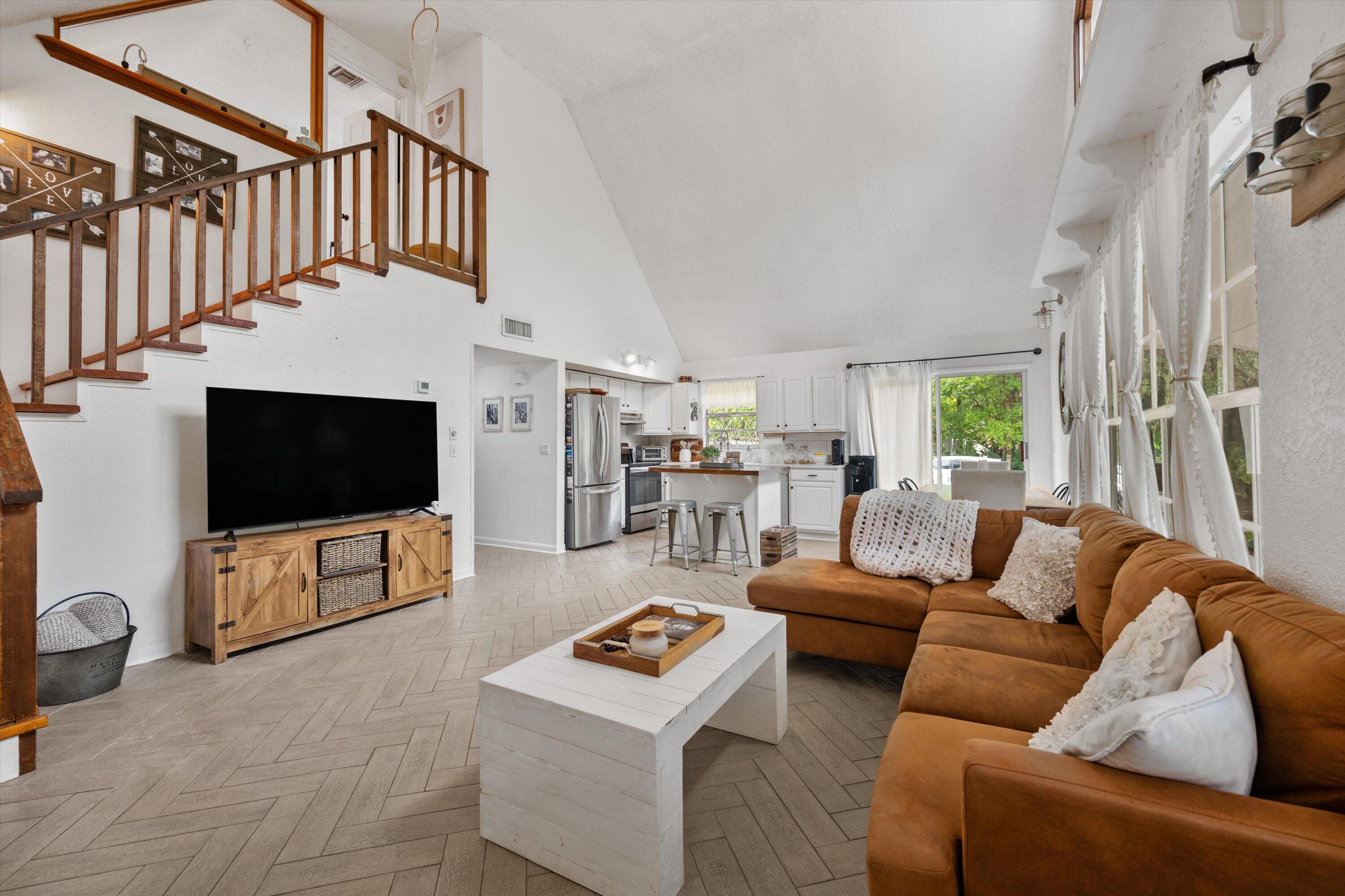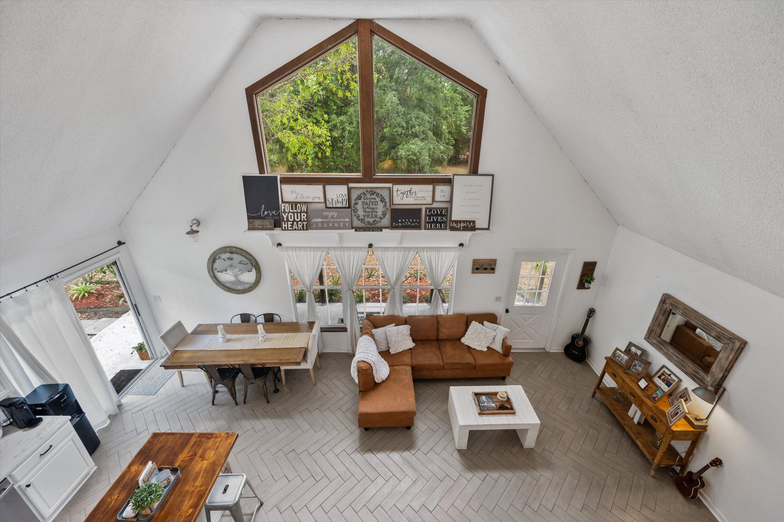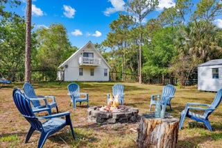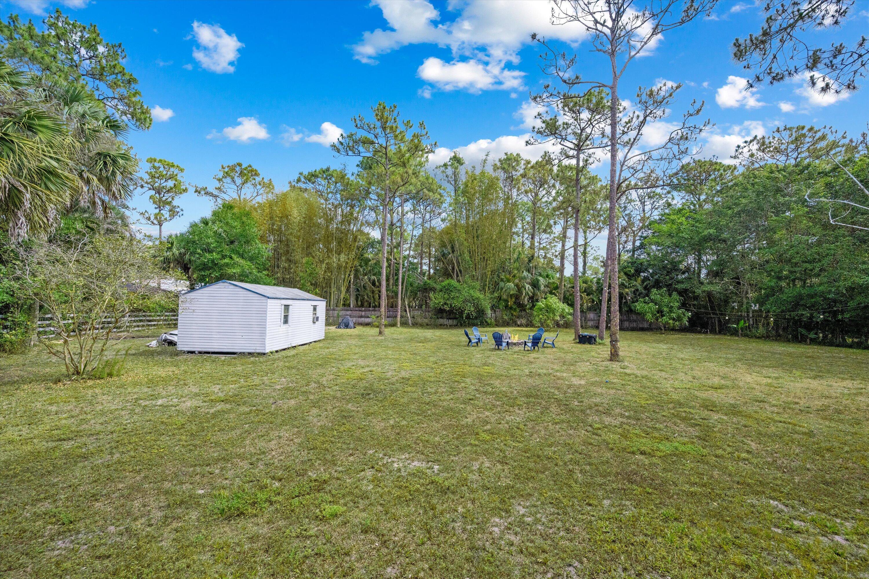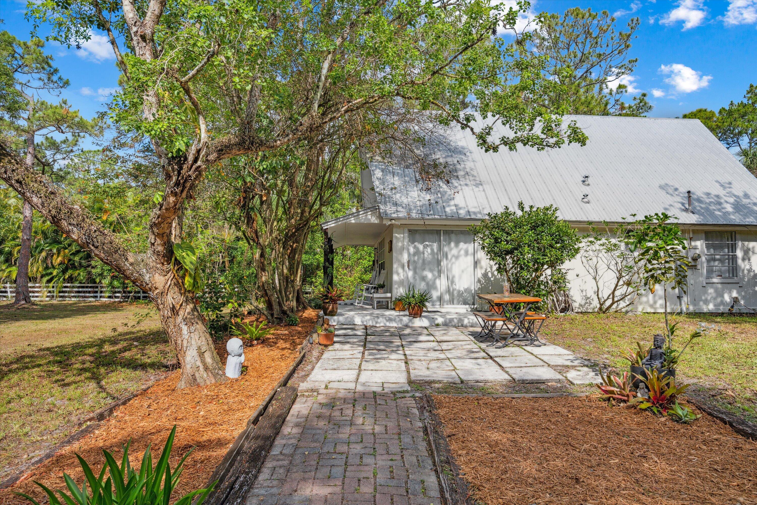 Tucked away on a quiet street in Jupiter Farms, this cozy A-frame home offers the perfect blend of natural beauty, functional updates, and laid-back Florida living. Surrounded by nature and set on 1.20 acres of fully fenced land, the property is ideal for those who appreciate space, privacy, and versatility.The interior features soaring vaulted ceilings and large windows that flood the home with natural light. The kitchen is modernly updated with white cabinets, stainless steel appliances, and an open layout that flows into the living area. A designated dining space and small island with a breakfast bar make it both functional and inviting. Wood-look tile flooring adds warmth and durability throughout the main level. The master bedroom is upstairs with updatedluxury vinyl plank flooring, a renovated bathroom, and custom barn doors on the closet. Step out onto the private master balcony and take in the peaceful views of your beautiful property Downstairs are two more bedrooms, a full updated bathroom, and a laundry closet with custom made barn doors. Recent improvements include: 2017 metal roof New A/C system (2022) New hot water heater (2021) New septic drain field (2020) Fresh interior and exterior paint New well tank with a 5-year warranty Outside, enjoy a tranquil front pond, mango and banana trees, a fire pit gathering area, and three backyard shedsone with power, A/C, and a concrete slab. There's also an additional slab ready for your RV, boat, or extra parking needs. A new front gate adds to the property's security and curb appeal. No HOA means endless possibilities - bring your chickens, horses, goats, or other farm animals. Zoned for A-rated schools and just minutes from the beach, I-95 and the Turnpike, local parks including Riverbend Park with 600+ acres of trails and kayaking, and all the conveniences of Indiantown Roads restaurants and shops. Whether you're looking for a quiet homestead, weekend escape, or space to grow, this Jupiter Farms gem delivers.