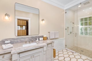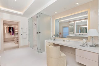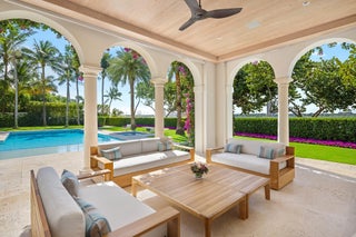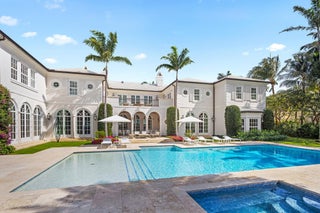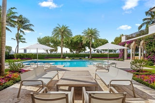 Pristine and rarely available Intracoastal front estate located in Palm Beach's serene North End. Highlights include 7BR/9.3BA, 150+/- feet of Intracoastal frontage, deep-water dock with boat lift, and over 17,000 total square feet. This rare and luxurious home boasts breathtaking lake and sunset views from all principal rooms. Gorgeous Island Colonial with stunning stone and hardwood flooring, high ceilings, and great natural light. First and second floor Primary Suites with dual baths and closets. Formal living room with fireplace and French doors leading to covered loggia. Stunning library with built-ins, formal dining room with butler's pantry, and light-filled family room. Eat-in entertaining kitchen and professional chef's kitchen both equipped with top-of-the-line appliances. Thesecond floor Primary Wing features a large open terrace with built-in cold plunge and spa. Atop the North and South Garages are two fabulous flex spaces each with a full bath and closet - one currently set up as a staff room and the other as an exercise room. Additional highlights include two laundry rooms, elevator, and ample storage space. This home is perfect for both indoor and outdoor entertaining with multiple covered loggias and spacious terraces. Large swimming pool with sun shelf and spa are surrounded by beautifully landscaped grounds.