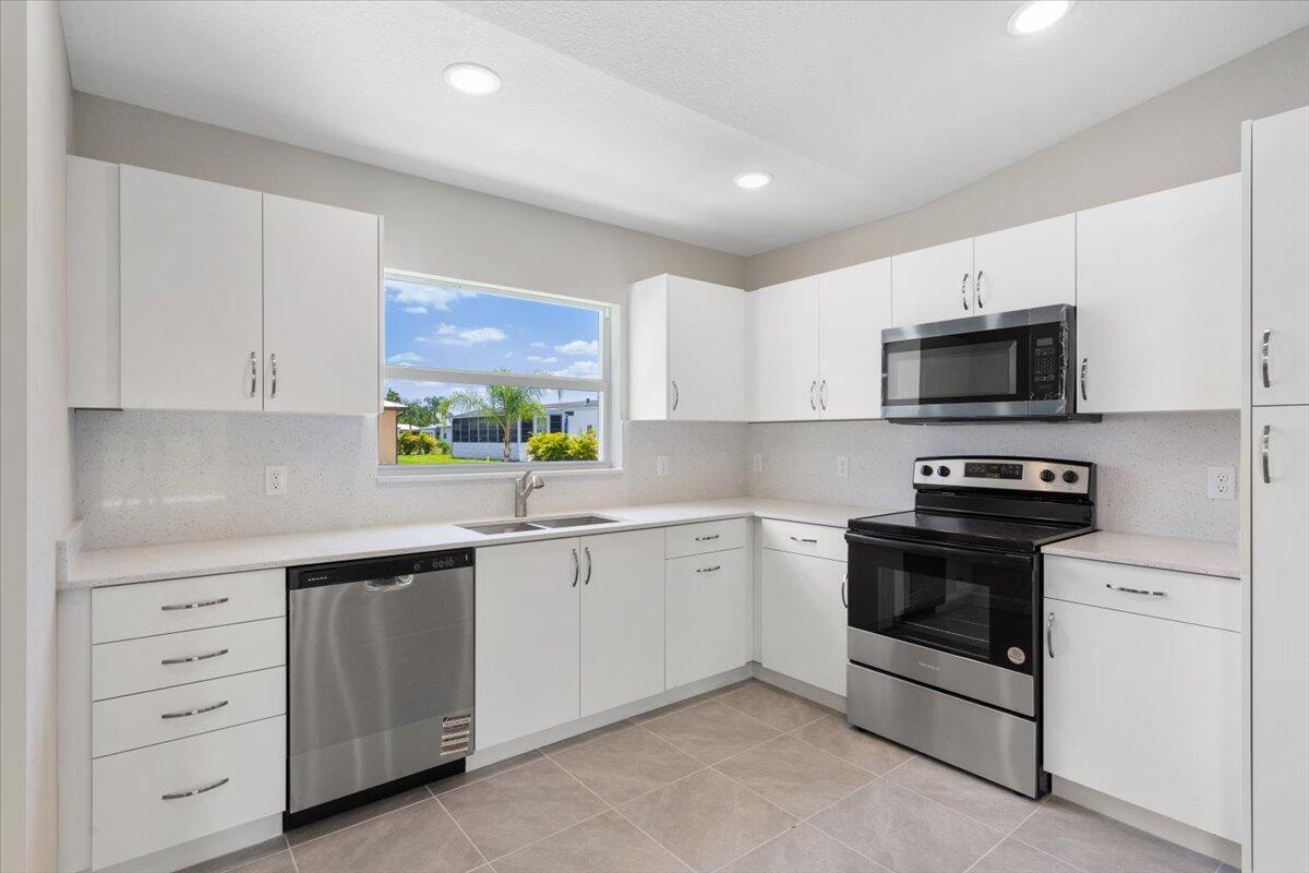 Welcome to The Braden, the newest model of the Spanish Lakes Collection. Be prepared to be wowed! This Concrete block home is located in the desirable 55+ community of Spanish Lakes 1 in Port St Lucie. 1 bedroom home with hurricane impact windows, metal roof, granite counters, R30 insulation, vaulted ceilings, recessed lighting, built-in pantry, all appliances, tankless water heater, and so much more! This is a 55+ community with all the amenities you could ever need- Private golf course ( no fees to play,) 2 pools, pickleball, tennis, shuffleboard, bocce, gym, library, cards, Mah jong, bible study, wood workshop, golf cart parades, dinners, dances, trips and so much more! Grass cutting is also included, as is trash removal. Seller financing available at 5% interest!Come and see what Spanish Lakes has to offer, it will not disappoint! The Land Lease fee is just $499 a month locked in for life!