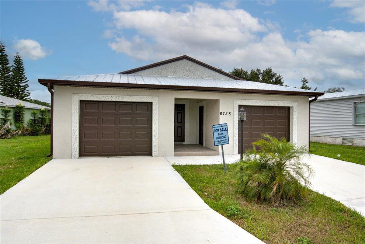 Brand New build ready for 1st owner! Come and see why people are talking about Spanish Lakes Fairways! This 3-bedroom, 2-bathroom home is waiting for you. Metal roof with 25-year warranty, hurricane impact windows, R30 insulation, white shaker cabinets throughout the home, granite counters in kitchen and bathrooms, dual master bathroom sinks, LED lighting, stainless steel appliances, the list goes on! Builder offers 5% interest on 30 30-year loan with NO closing costs.. Private 18-hole golf course ( no fees to play,) 2 pools, pickleball, tennis, shuffleboard, bocce, gym, library, cards, Mah jong, bible study, wood workshop, golf cart parades, dinners, dances, trips, and so much more! Grass cutting is also included, as is trash removal.The 55+ community monthly land lease fee is $499, LOCKED IN FOR LIFE, so it will never increase as long as you own it, ( we have options to add a child to that lifetime rent, too!)