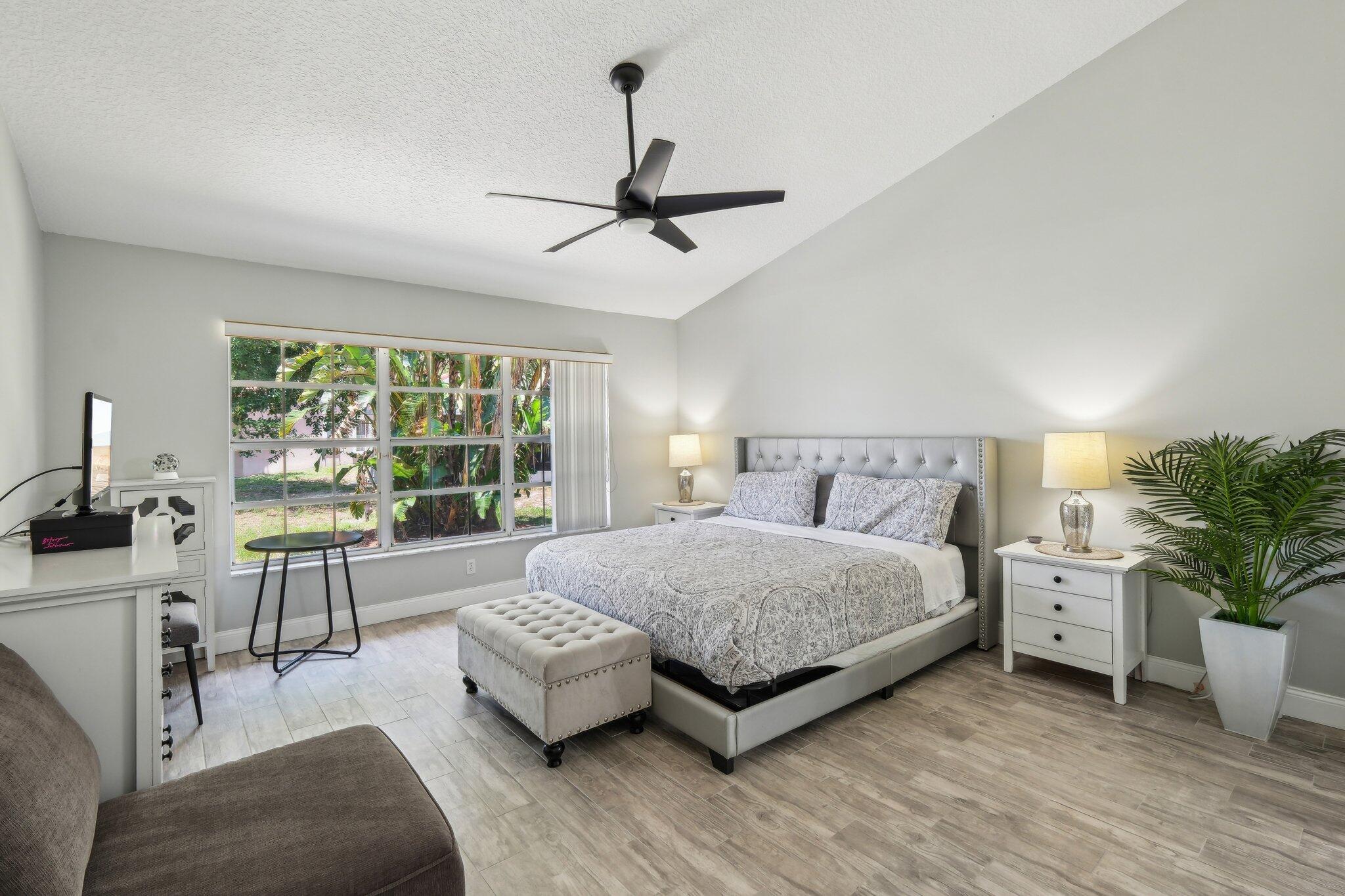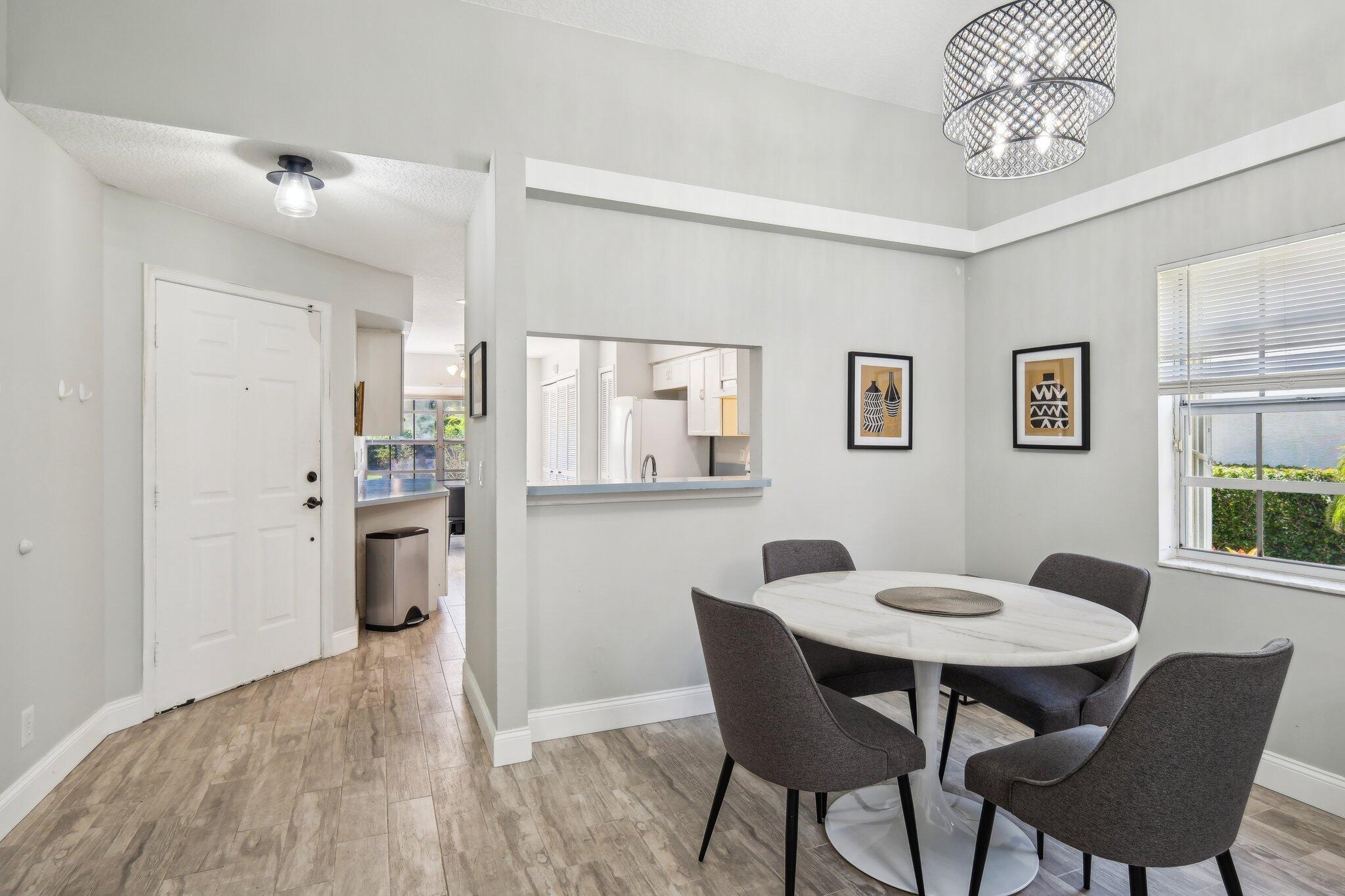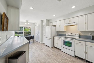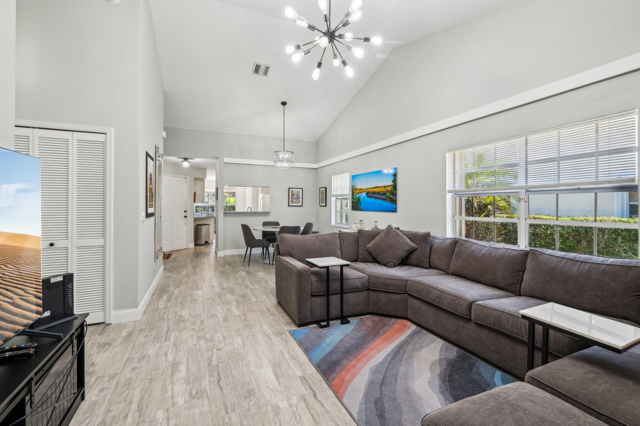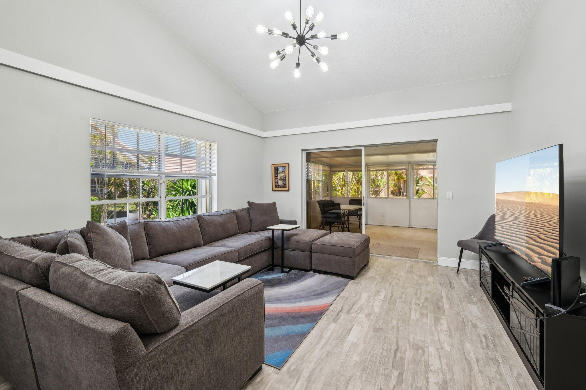 Welcome to this modern & bright 2 bed 2 bath villa with 1 car garage located in the sought after Northtree neighborhood. The spacious interior is accentuated by vaulted ceilings, wood look tile floors, chic lighting fixtures and beautifully updated bathrooms plus a screened patio for alfresco dining. Complete accordion shutters, and a 2022 A/C add value. Northtree has LOW HOA fees, is zoned for A rated schools and is walking distance to Park Vista HS & Christa McAuliffe Middle. This pet friendly community is centered around a serene lake that allows kayaking and offers a waterfront pool, tennis, volleyball & basketball courts, a tot lot, a walking/biking trail & is close to everything! This home is minutes from myriad shopping, dining and grocery options & is convenient to the turnpike.