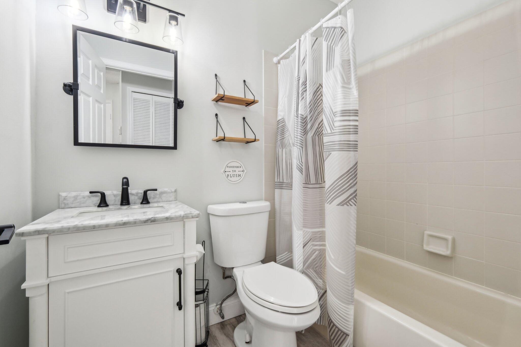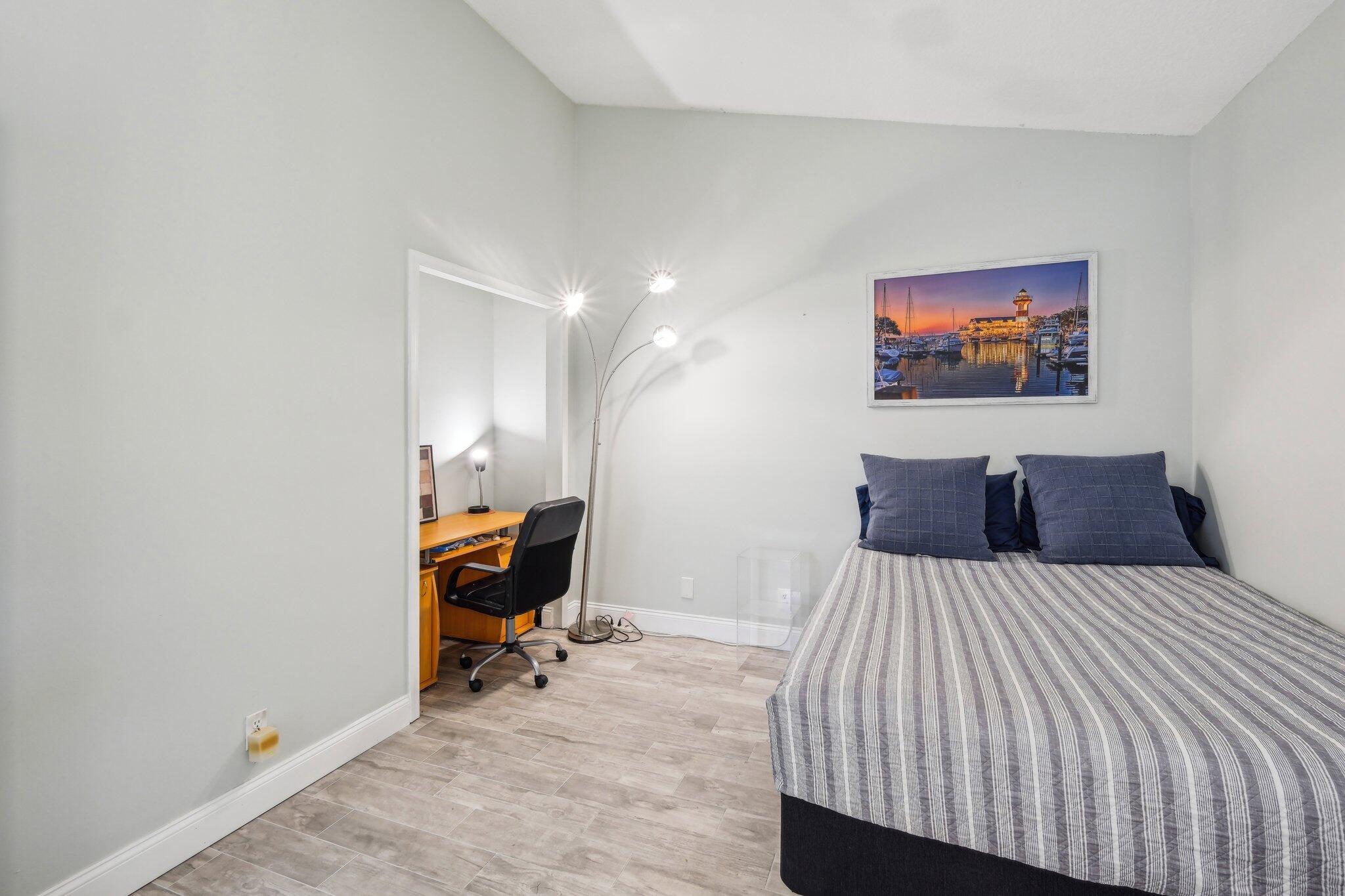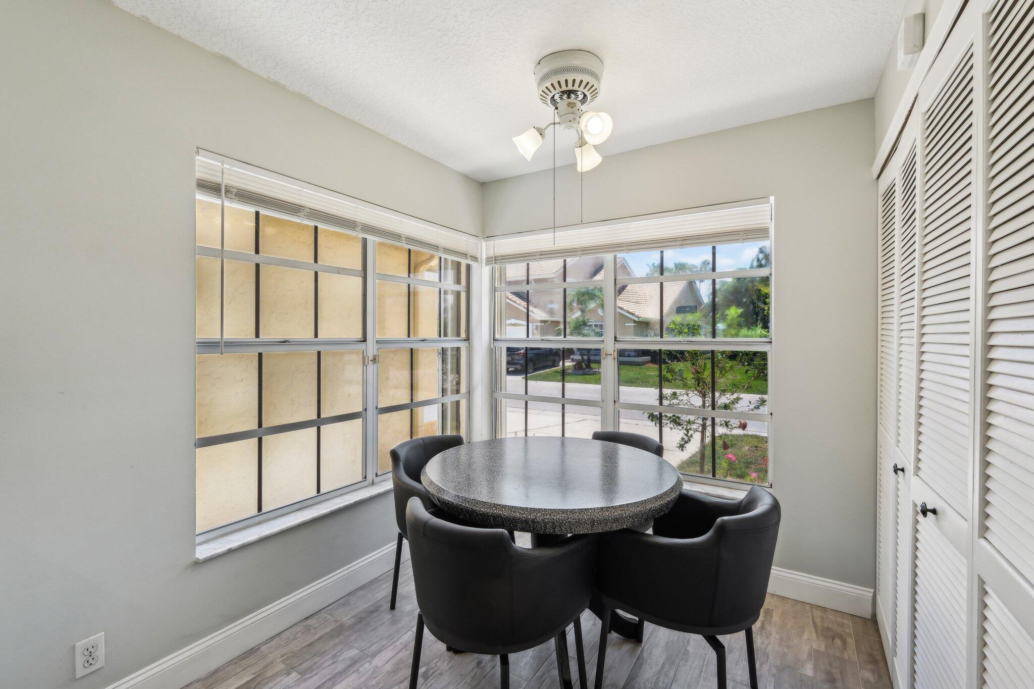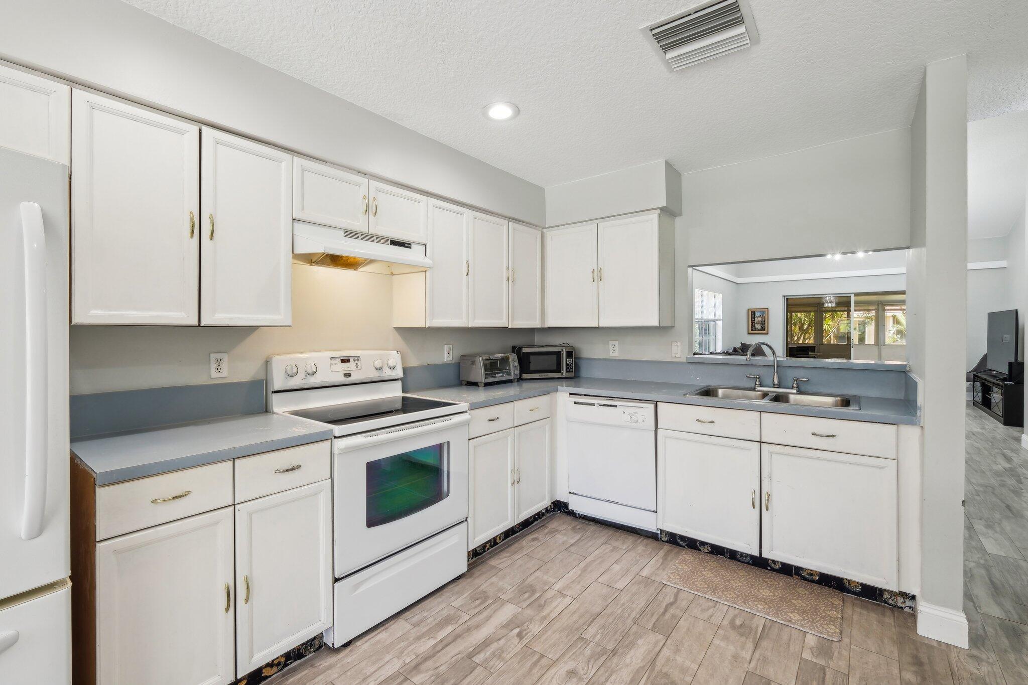 Welcome to this modern & bright 2 bed 2 bath villa with 1 car garage located in the sought after Northtree neighborhood. The spacious interior is accentuated by vaulted ceilings, wood look tile floors, chic lighting fixtures and beautifully updated bathrooms plus a screened patio for alfresco dining. Complete accordion shutters, and a 2022 A/C add value. Northtree has LOW HOA fees, is zoned for A rated schools and is walking distance to Park Vista HS & Christa McAuliffe Middle. This pet friendly community is centered around a serene lake that allows kayaking and offers a waterfront pool, tennis, volleyball & basketball courts, a tot lot, a walking/biking trail & is close to everything! This home is minutes from myriad shopping, dining and grocery options & is convenient to the turnpike.