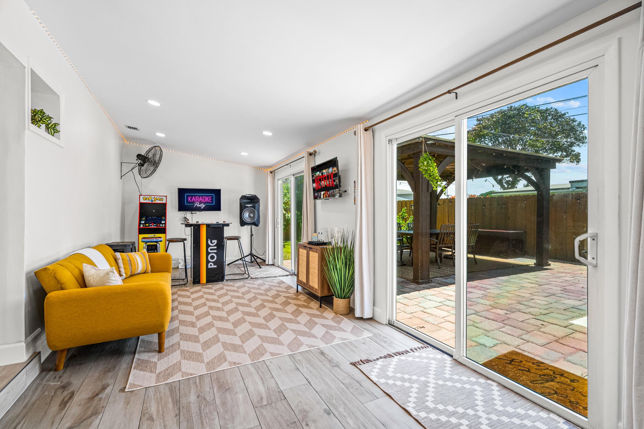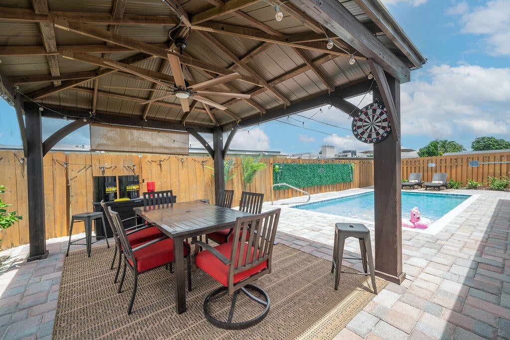 Welcome to your private oasis in the heart of Lake Osborne! This spacious and mostly furnished turnkey 4Bed/2Bath CBS home features an open-concept layout with a split-bedroom floor plan, offering the ideal blend of comfort, style, and location--with NO HOA and just 10 minutes from the Beach. Enjoy Florida living in your own backyard retreat, complete with a resurfaced pool with 2023 saltwater system and heater, a shaded gazebo, pergola, and an outdoor shower--perfect for entertaining or relaxing. Inside, you'll find a host of recent upgrades, including luxury vinyl flooring throughout, custom lighting fixtures, new kitchen appliances, and thoughtful touches like updated outlet covers, light switches, and door knobs. The kitchen showcases white cabinetry, quartz countertops and backsplash,a pantry and stainless steel GE and Maytag gas appliances, ideal for any home chef. The primary suite offers a private ensuite bath and a walk-in closet with built-ins, while the three spacious guest bedrooms share a full bath with a shower/tub combo. Additional features include: 2023 Updated Plumbing beneath the foundation, 2023 AC, 2024 Resealed Roof (2016), Fully Fenced Yard, 2024 Mailbox, Well Sprinkler system, Gas water Heater, new Dryer and exterior Ring Security cameras. Located in a quiet, pet- and family-friendly neighborhood, just a short walk or bike ride to Lake Osborne and John Prince Park, where you can enjoy fishing, jet skiing, tennis, basketball, jogging trails, and more. With convenient access to I-95, this home offers the perfect balance of tranquility and connectivity. Whether you're searching for your forever home or a great investment opportunity, this Lake Osborne gem checks every box!
