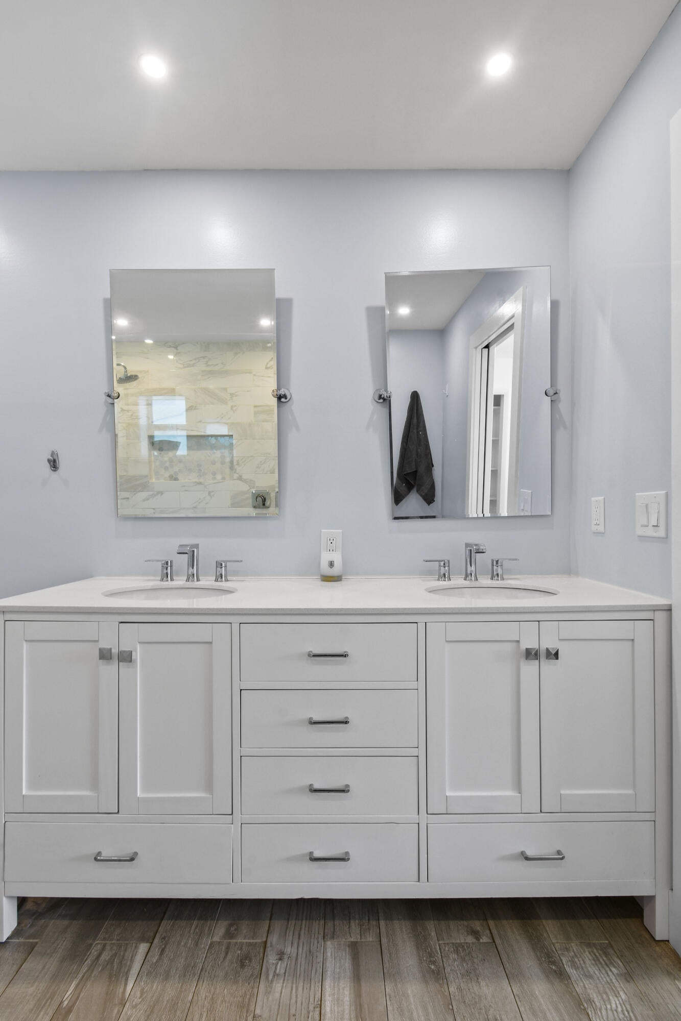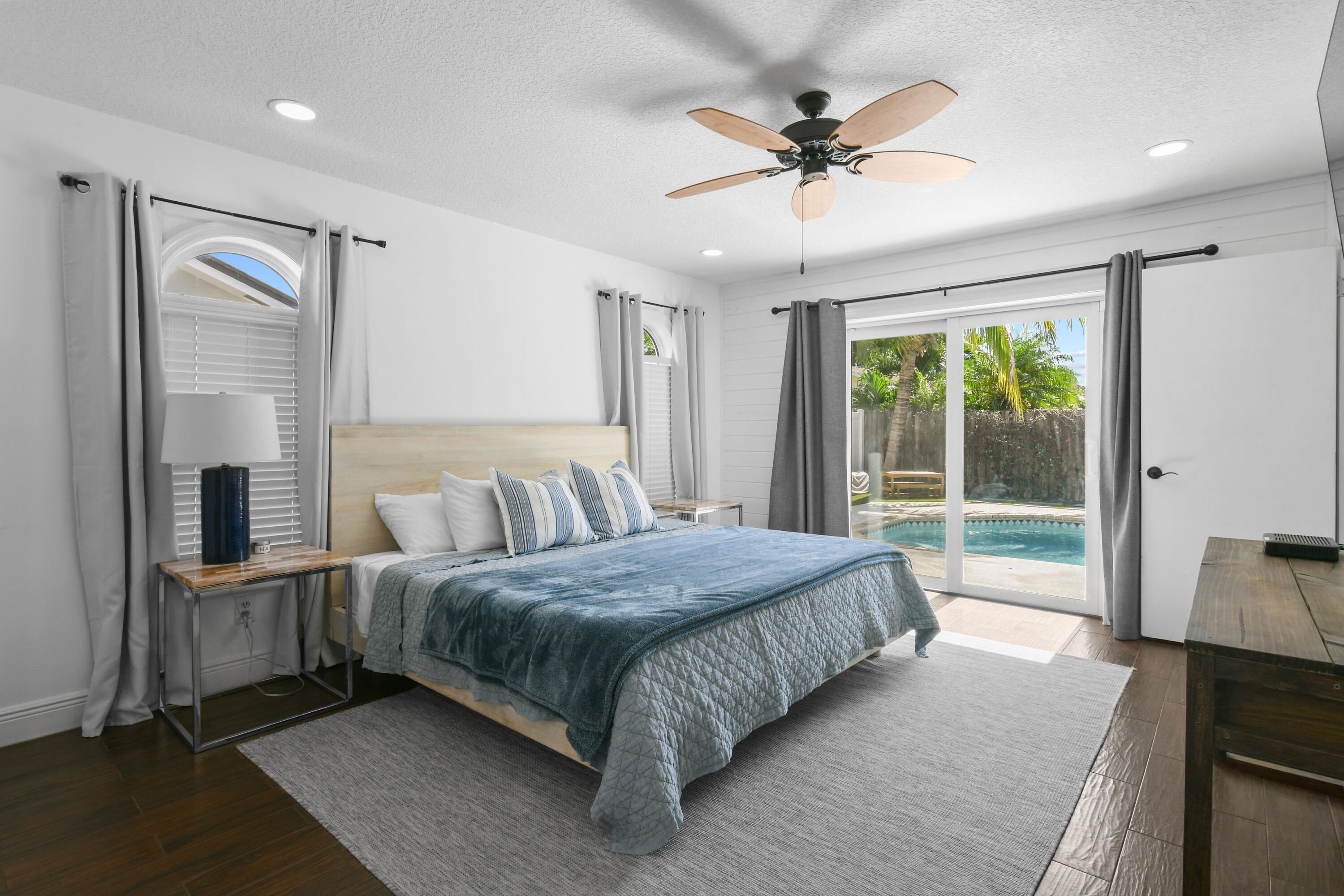 Beautifully updated home in an incredibly central location. This move in ready home features full impact glass, updated kitchen and primary bathroom, an inviting backyard that's primed to entertain you and your guests, and a driveway big enough to host them! (+2 car garage!) Abundant natural light throughout. Primary bedroom recently outfitted with a brand new bathroom and custom closet buildout. Elegant backyard features ample covered and uncovered patio space, pool, and pet friendly turf throughout. Garden Woods is a lovely non-HOA neighborhood that is at the absolute center of all that Palm Beach Gardens has to offer. Don't miss out!