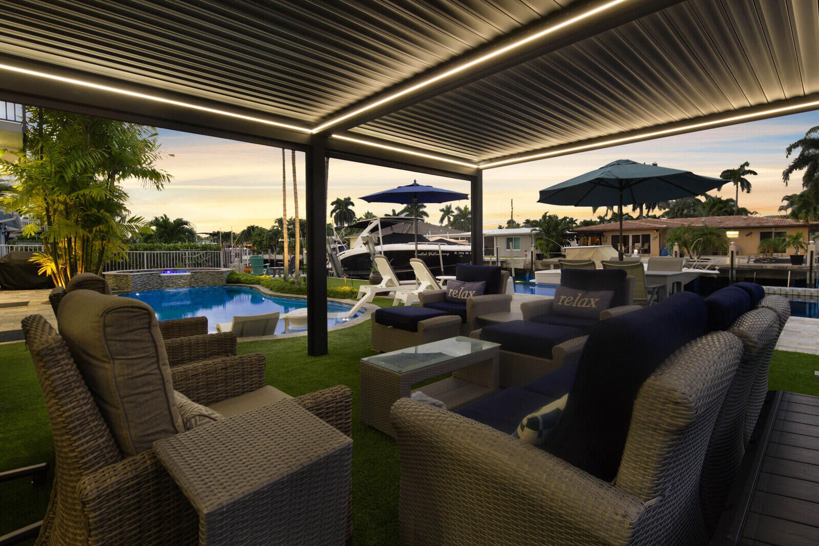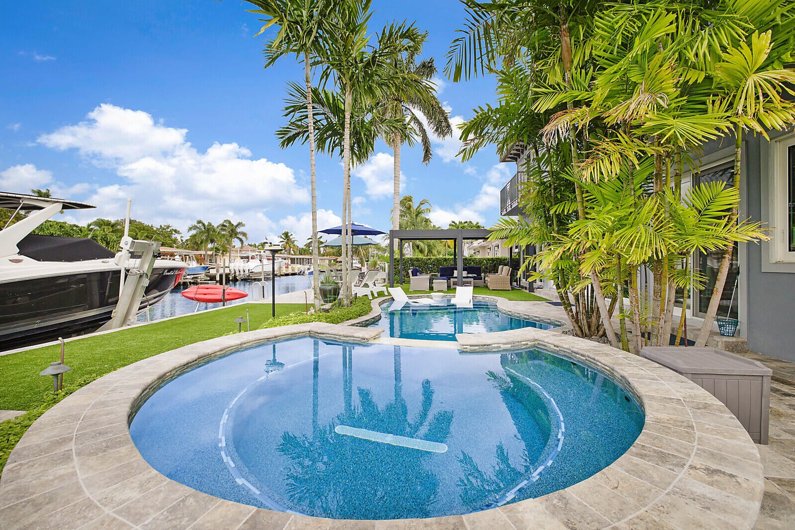 Welcome to luxury waterfront living reimagined--this custom-designed 5-bedroom, 4.5-bath home in Pompano Beach offers the ultimate blend of style, technology, and South Florida lifestyle. Tucked away in one of the area's best-kept secret waterfront communities, this residence is built for boaters and dreamers alike. With direct ocean access, a 10,000 lb boat lift, new seawall cap, and a fully equipped concrete dock (power + water pedestals), your next adventure is just steps away. (Note: 2 fixed bridges with 14' clearance.) Inside, discover a bright, open layout with elegant finishes, soaring ceilings, and a 500-sq-ft flex room--perfect for a media room, home office, gym, or creative space. The chef's kitchen is a showstopper with high-end JennAir appliances, gas cooking, dual sinks, potfiller and thoughtful custom touches throughout. Tech-savvy buyers will love the smart home features, including centralized lighting, security, whole-house audio, WiFi repeaters inside and out, and two Tesla chargers. There's even a whole-house water filtration system for clean, fresh water everywhere. Unwind in spa-inspired bathrooms featuring a steam shower in the primary suite and a jetted tub upstairs. Outside, enjoy your saltwater pool and spa, mosquito misting system, and gas heatingall controlled with iLink technology for year-round comfort. Built to impress and built to last with an all-aluminum roof, insulated windows, and four zoned A/C systems. Bonus: Seller is motivated and open to seller financing depending on termsa rare opportunity to own a luxury waterfront home with flexible options. Don't miss outcome see this exceptional property and make it yours today!