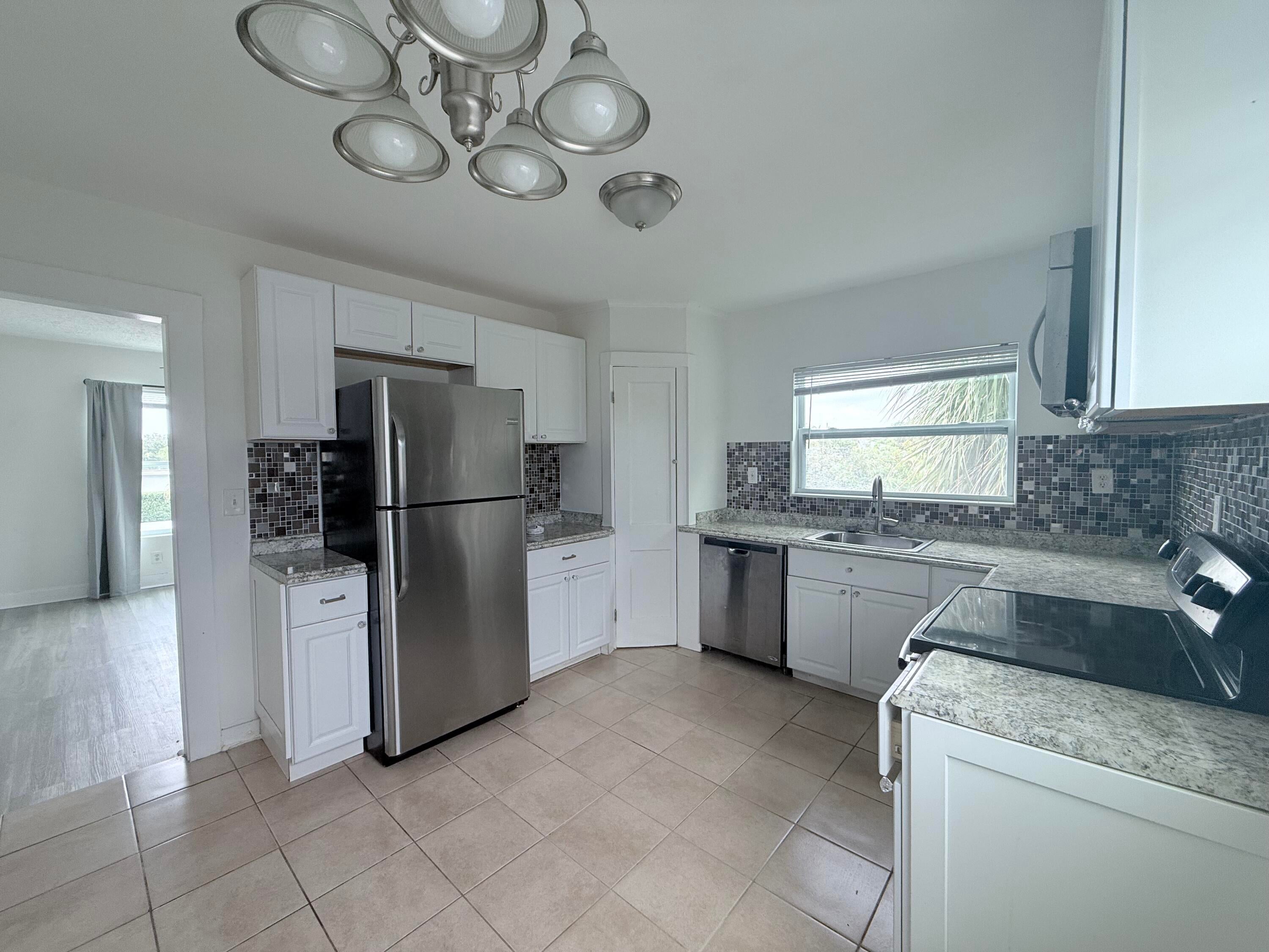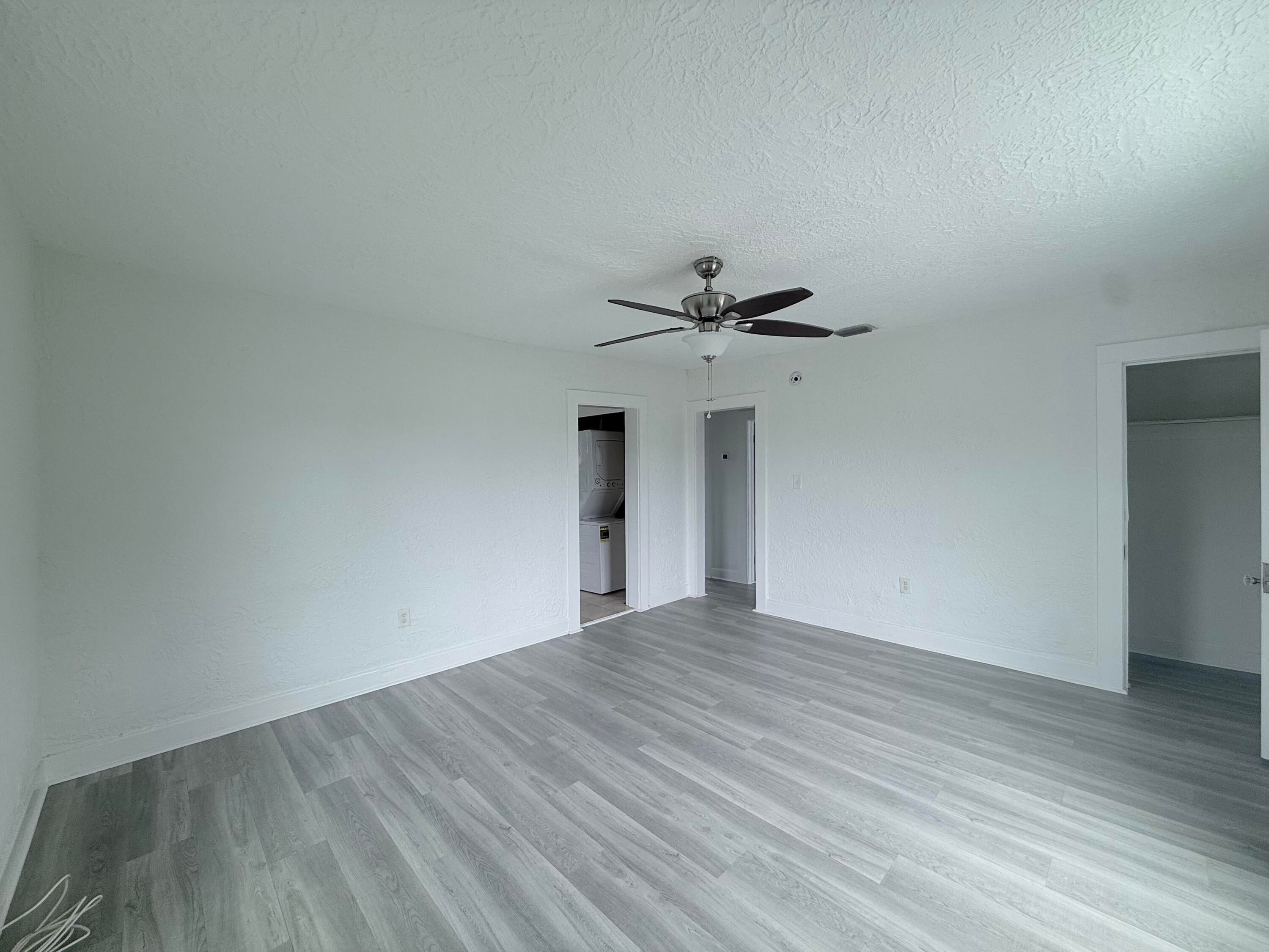 2 Bedroom, 1 bath second floor unit in a triplex with no carpet! Ready for move-in. Enjoy renovated bathroom with walk-in shower, stainless steel appliances in the kitchen, in-unit washer/dryer. Designated parking spot in the private driveway and plenty of street parking. Conveniently located near I-95 and downtown West Palm Beach. Water, sewer, and trash is included.