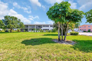 Location, Location, Location. Welcome to this charming 1 Bedroom, 1 Bathroom ground floor condo in the most private & peaceful location in this Gated 55 and older Community. Freshly painted with high-quality Sherwin Williams paint throughout. Enjoy the convenience of tile flooring, new air conditioning and water heater, a walk-in shower, new window treatments, new flat top range. Residents have access to resort-style amenities, including a huge Clubhouse,18 pools, bus service, and a short walk to a nearby place of worship & a short walk to the gym. Live the lifestyle you deserve in this lovely condo. Not many ground floor units available. Book your showing now. Bring offers, the seller is motivated!