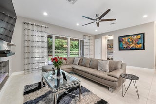 Beautifully designed 2-bedroom + den home in the sought-after Valencia Sound of Boynton Beach. Open floor plan offers flexibility and flow, with the den easily convertible to a third bedroom to suit your needs. Gourmet kitchen features a built-in pantry, high-end appliances, a gas stove, and a large island with quartz countertops, perfect for hosting. Cozy up by the electric fireplace in the spacious living area. Primary suite with two walk-in closets and an oversized bathroom for ultimate comfort and privacy. A two-car garage and natural gas add convenience to this thoughtfully designed home. Large screened-in patio with room for a pool to customize your outdoor living space. Community offers resort-style amenities, including a clubhouse, fitness center, pools, tennis courts, and more.