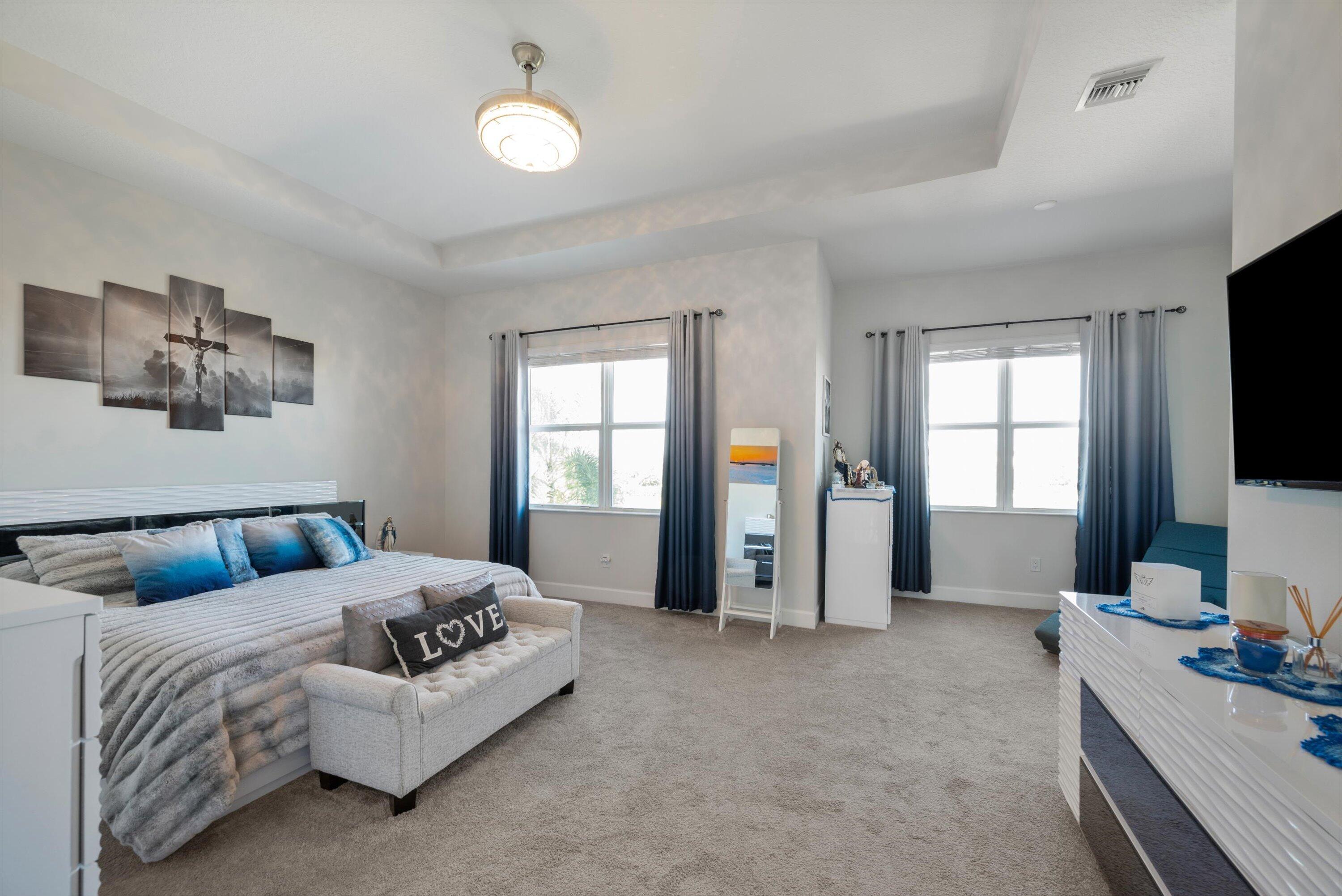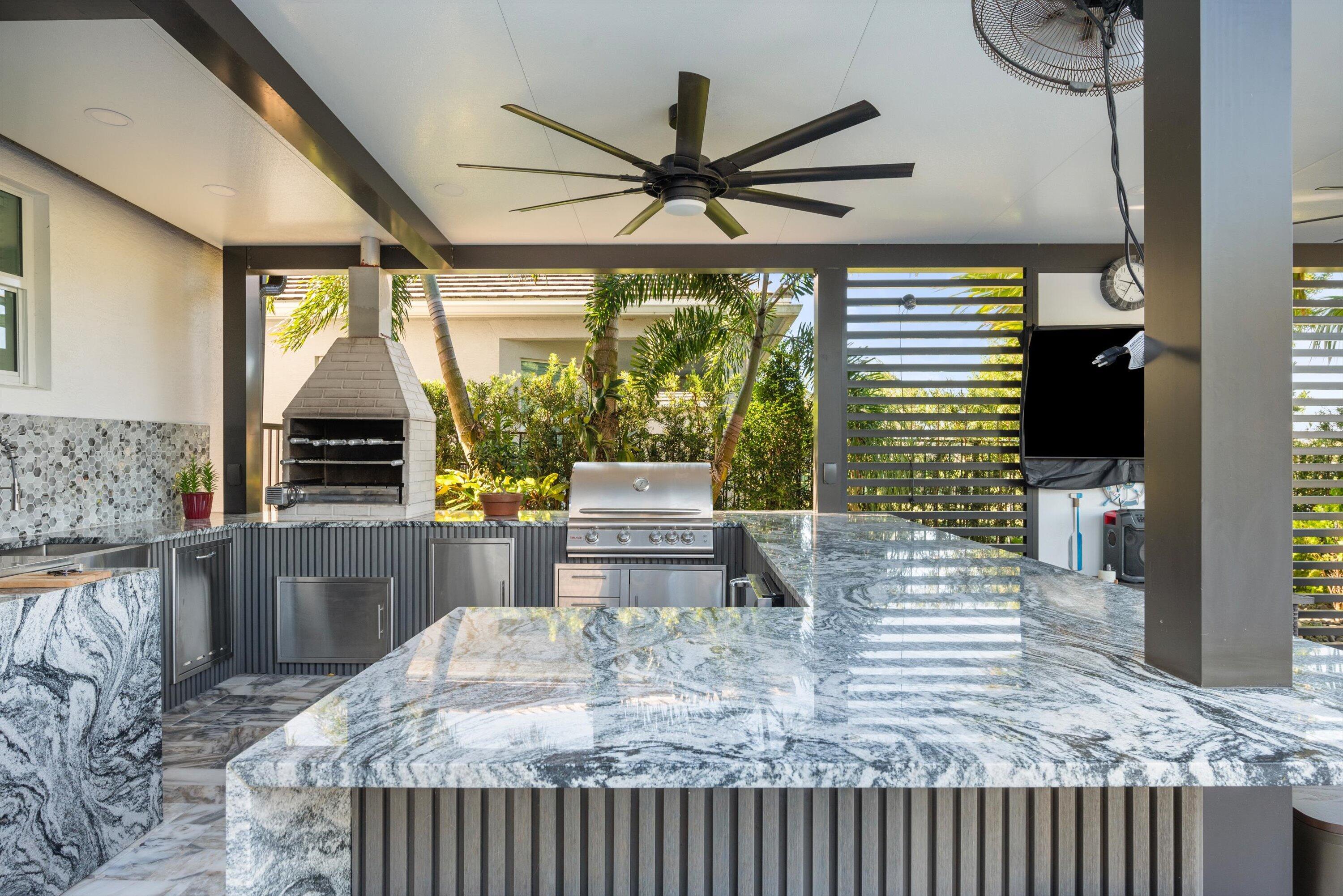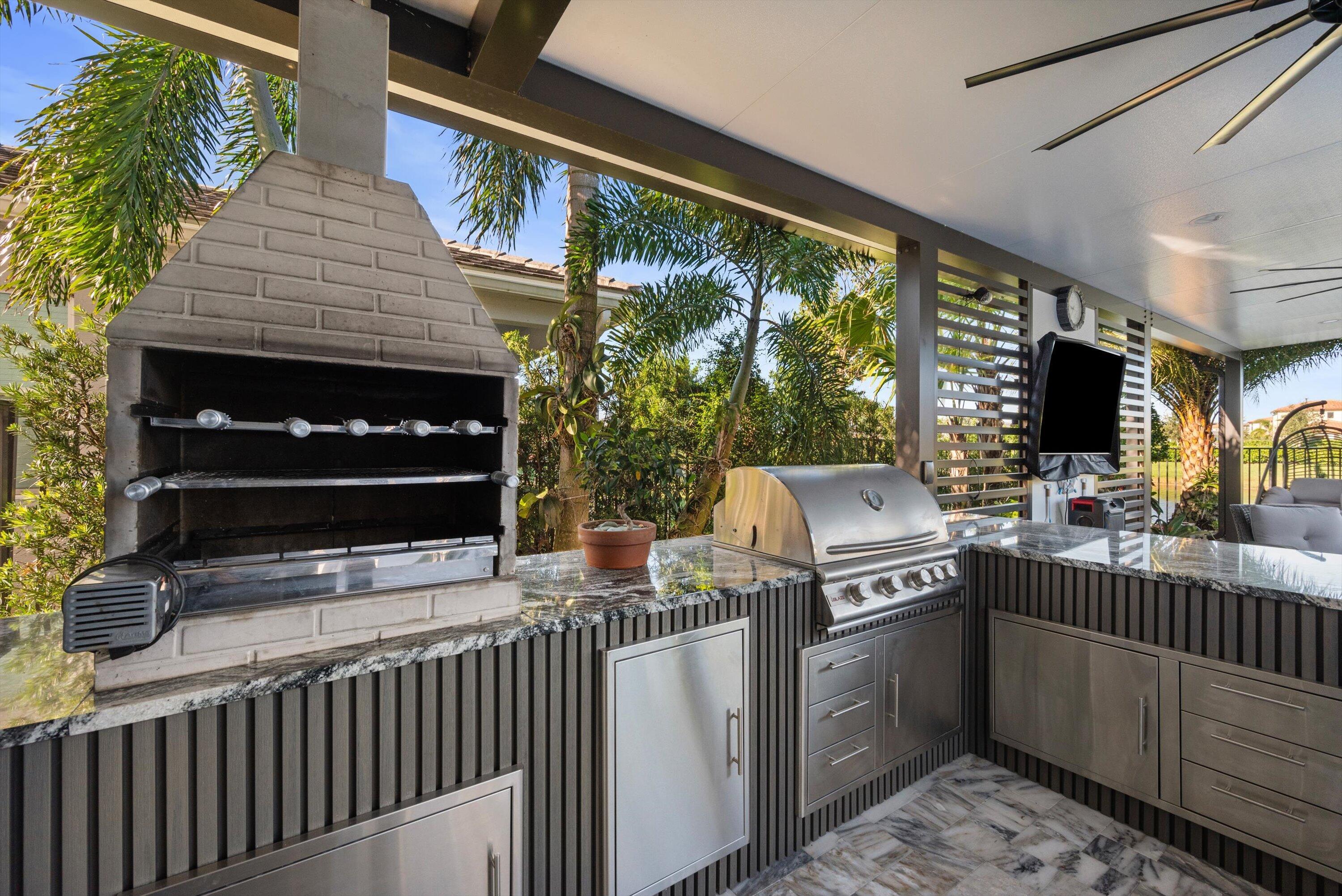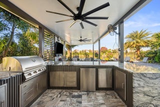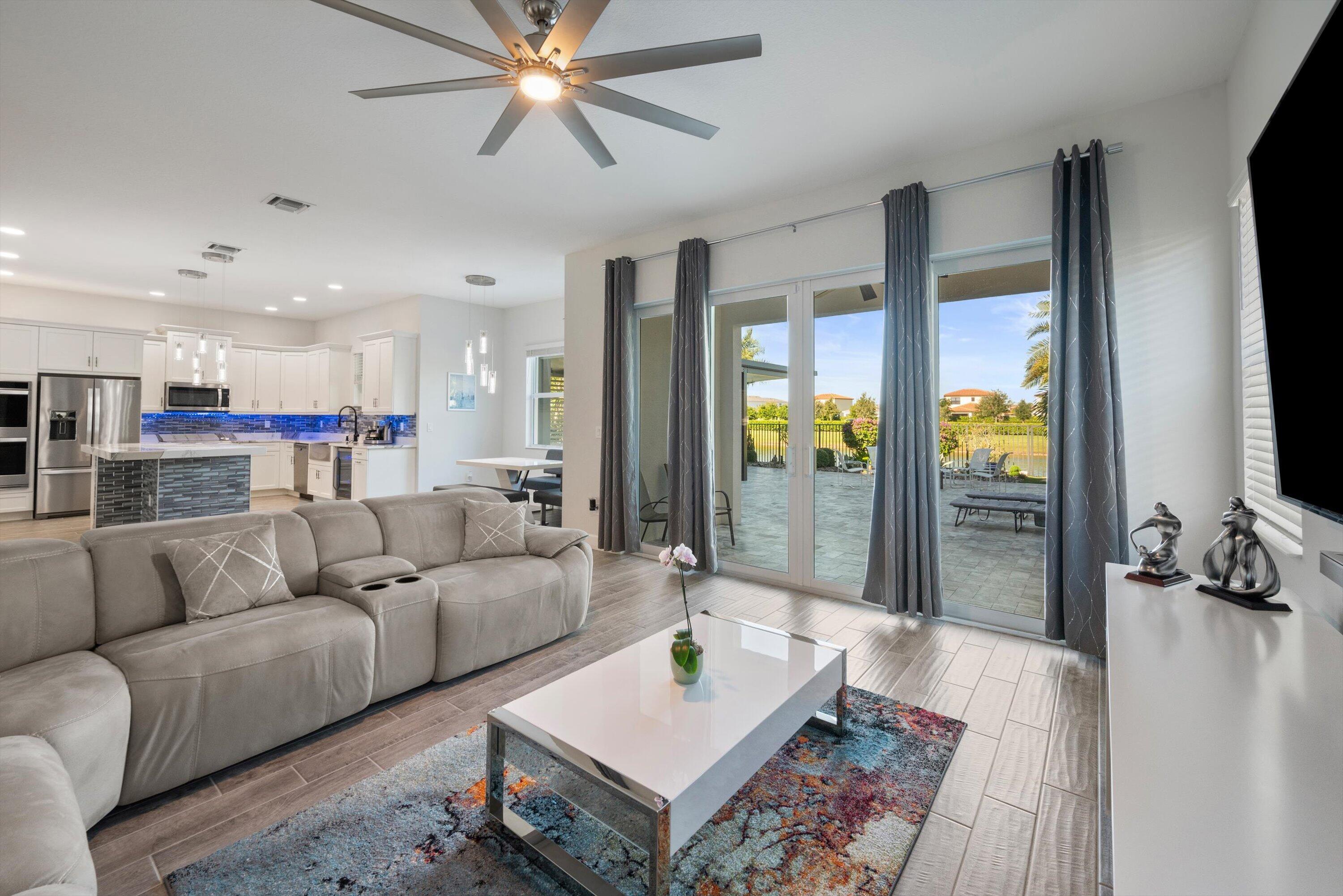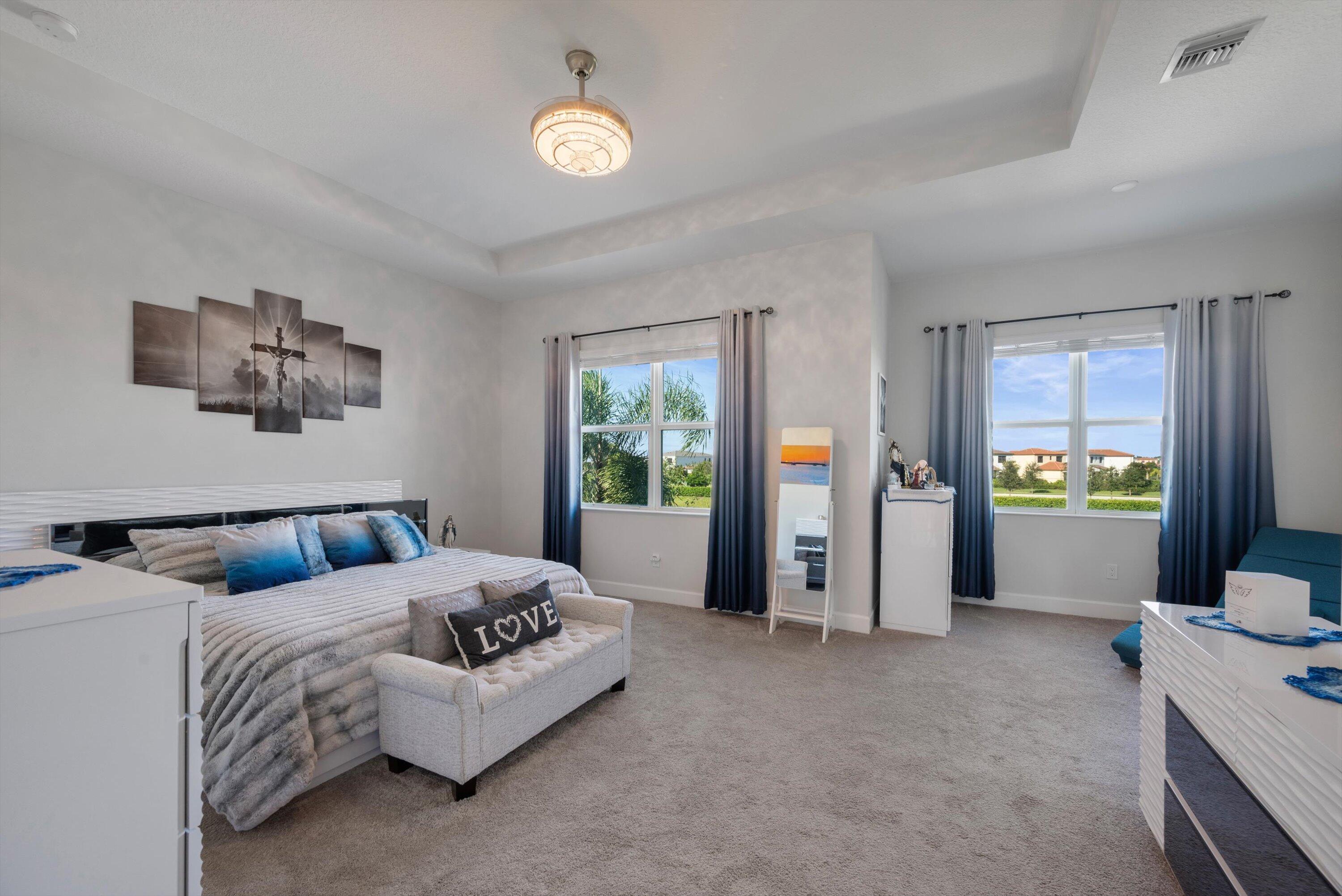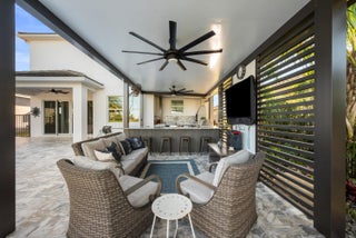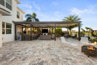 Welcome to this meticulously designed 5-bedroom, 4-bathroom, 3-car garage home located in the highly sought-after community of The Groves at Westlake, offering breathtaking lake views. This impressive Laurel Grand model boasts an open floor plan with soaring high ceilings, creating a spacious and inviting atmosphere throughout. The heart of the home features top-of-the-line stainless steel appliances, sleek quartz countertops, and plenty of storage for the culinary enthusiast. Enjoy peace of mind with premium impact-resistant windows and doors, ensuring safety and energy efficiency. Step outside to your private oasis, featuring a pergola, marble pavers, a custom outdoor kitchen and a large TV - perfect for entertaining or relaxing by the lake. Both front and back yards have beenbeautilandscaped with meticulous attention to detail, adding curb appeal and outdoor elegance. Experience the vibrant Westlake community, filled with amenities designed to enhance your lifestyle. Enjoy a resort-style pool complete with a 3-story water slide and splash pad, a snack shack, an outdoor concert pavilion, basketball courts, an adult swimming pool, and a playground. For your furry companions, the dog park provides a perfect space to run and play. Stay active on the new fitness trail featuring 9 obstacles or visit the BMX park for some exhilarating fun. You'll also have access to Westlake's highly acclaimed A-rated schools, ensuring exceptional education and enriching opportunities.