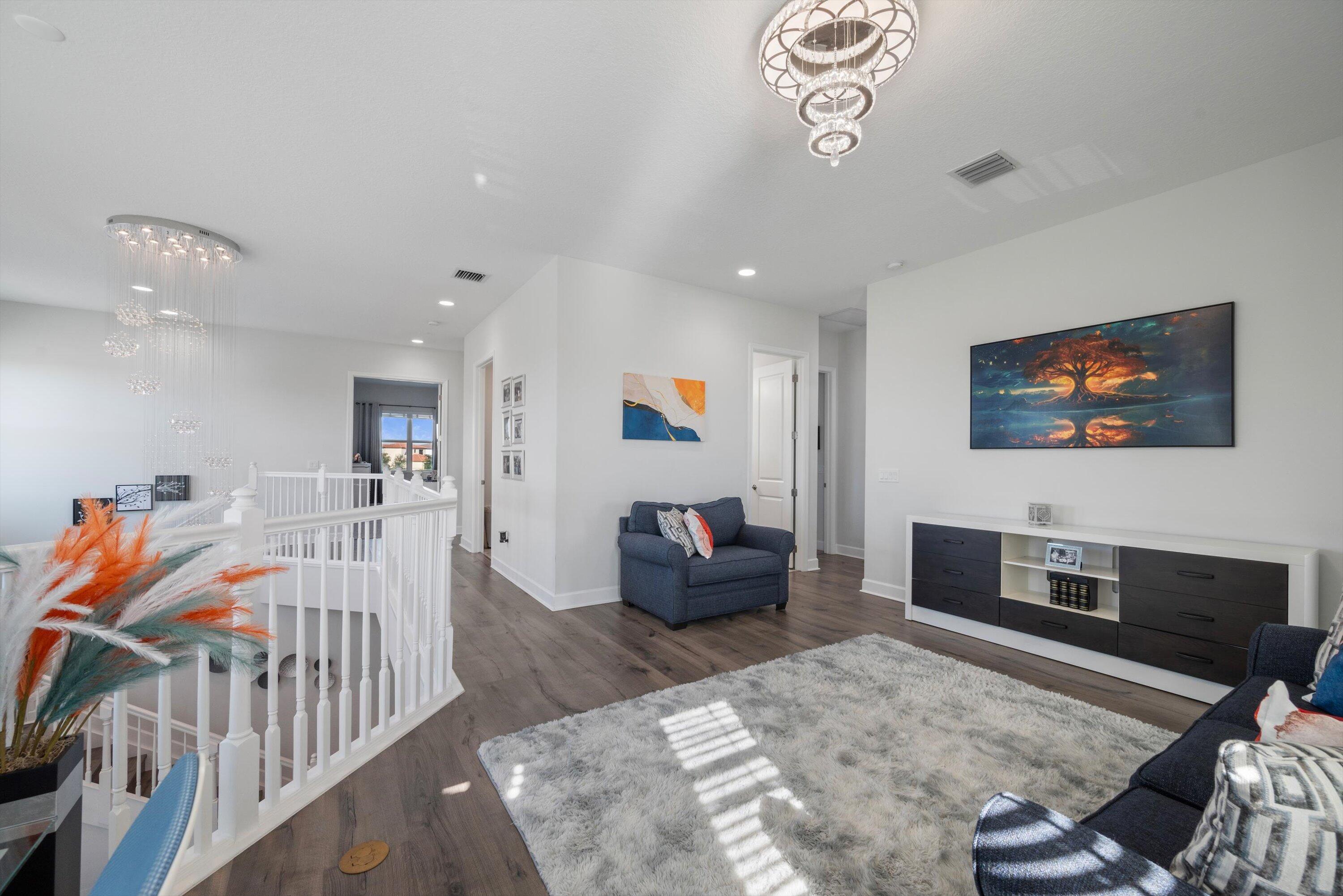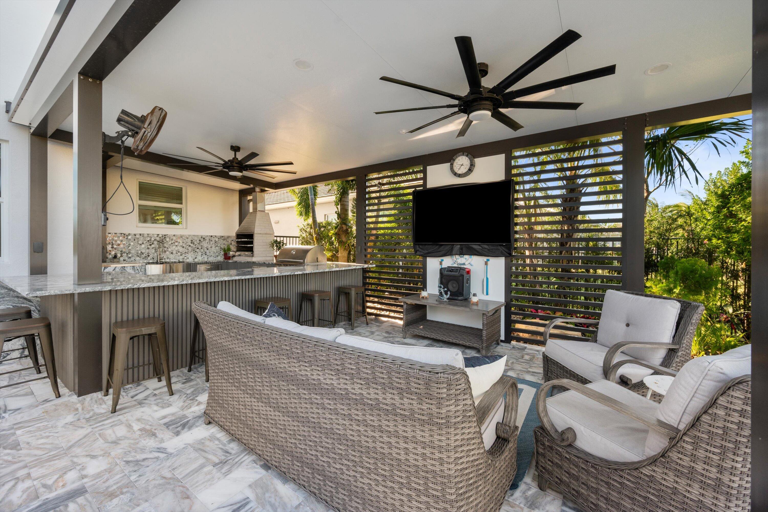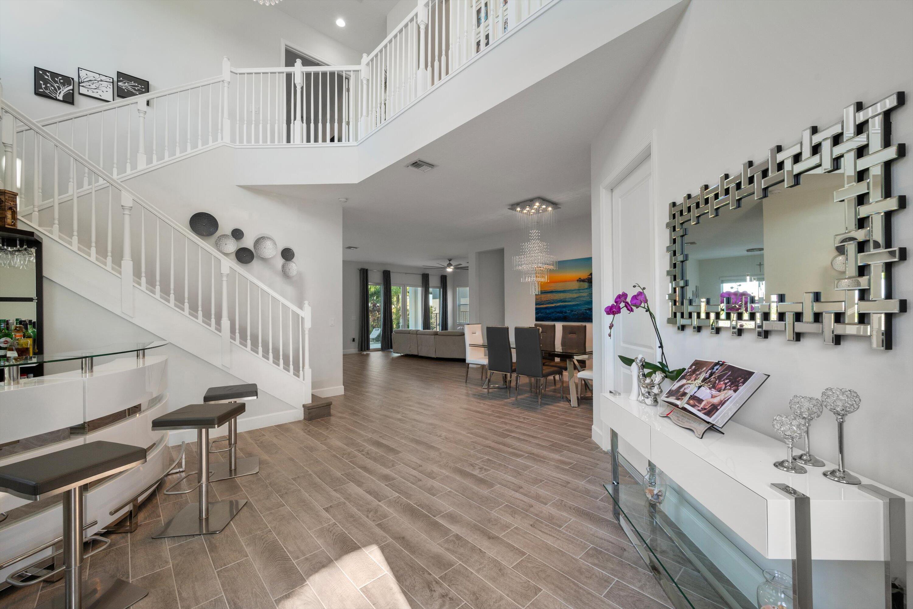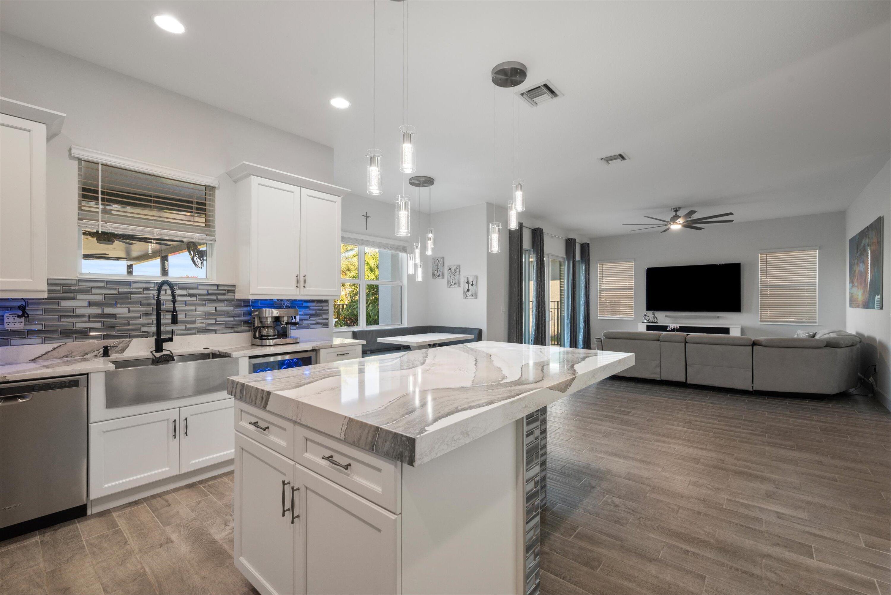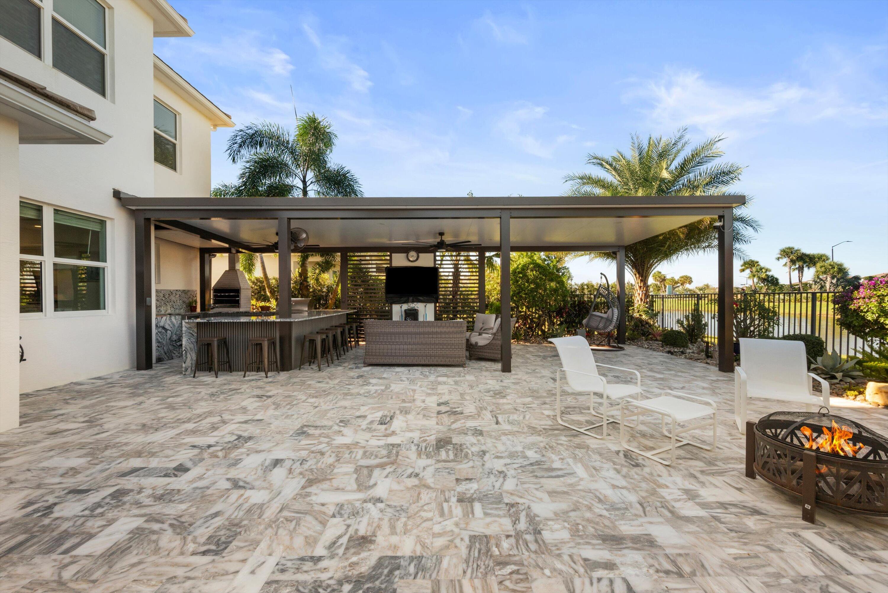 Welcome to this meticulously designed 5-bedroom, 4-bathroom, 3-car garage home located in the highly sought-after community of The Groves at Westlake, offering breathtaking lake views. This impressive Laurel Grand model boasts an open floor plan with soaring high ceilings, creating a spacious and inviting atmosphere throughout. The heart of the home features top-of-the-line stainless steel appliances, sleek quartz countertops, and plenty of storage for the culinary enthusiast. Enjoy peace of mind with premium impact-resistant windows and doors, ensuring safety and energy efficiency. Step outside to your private oasis, featuring a pergola, marble pavers, a custom outdoor kitchen and a large TV - perfect for entertaining or relaxing by the lake. Both front and back yards have beenbeautilandscaped with meticulous attention to detail, adding curb appeal and outdoor elegance. Experience the vibrant Westlake community, filled with amenities designed to enhance your lifestyle. Enjoy a resort-style pool complete with a 3-story water slide and splash pad, a snack shack, an outdoor concert pavilion, basketball courts, an adult swimming pool, and a playground. For your furry companions, the dog park provides a perfect space to run and play. Stay active on the new fitness trail featuring 9 obstacles or visit the BMX park for some exhilarating fun. You'll also have access to Westlake's highly acclaimed A-rated schools, ensuring exceptional education and enriching opportunities.