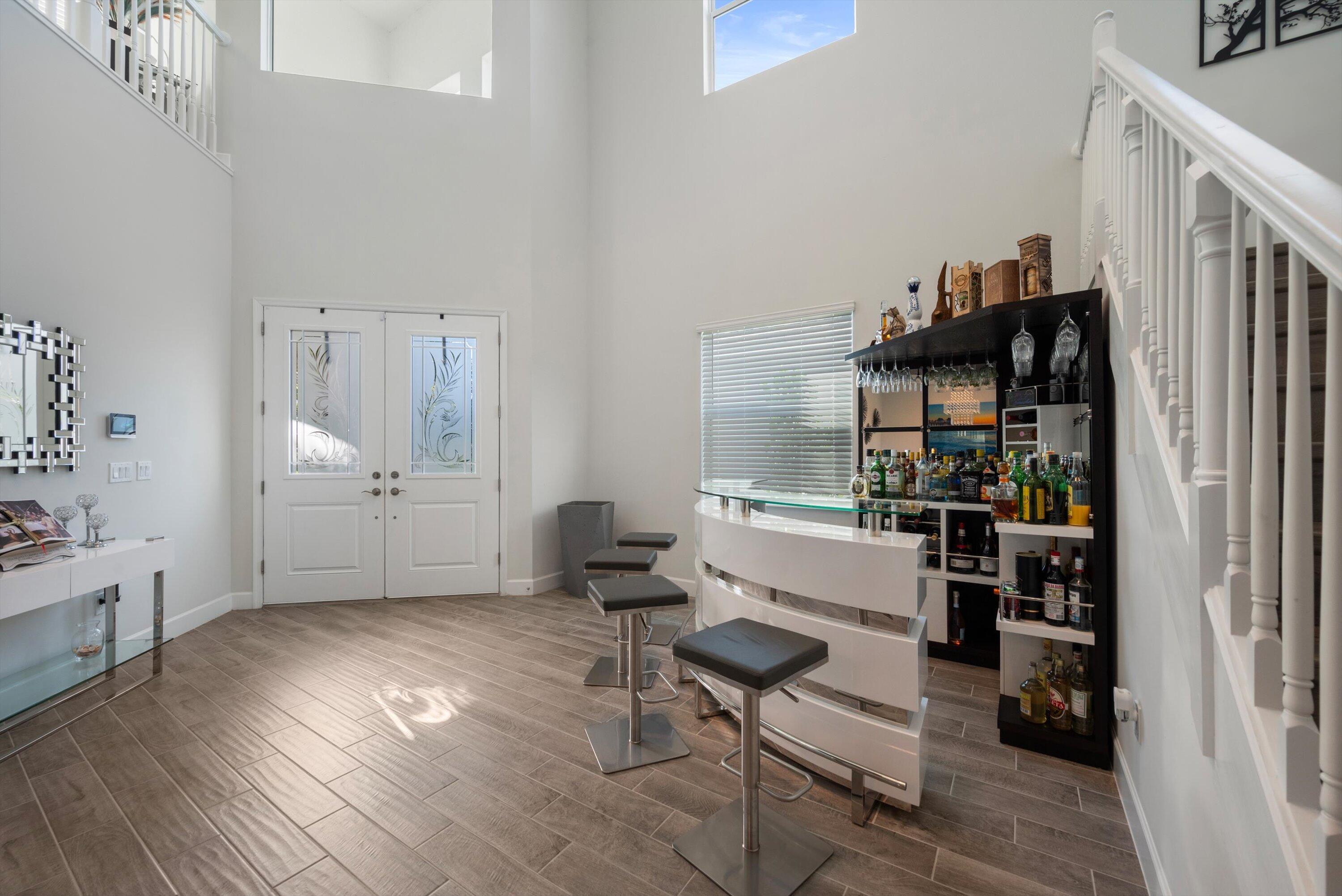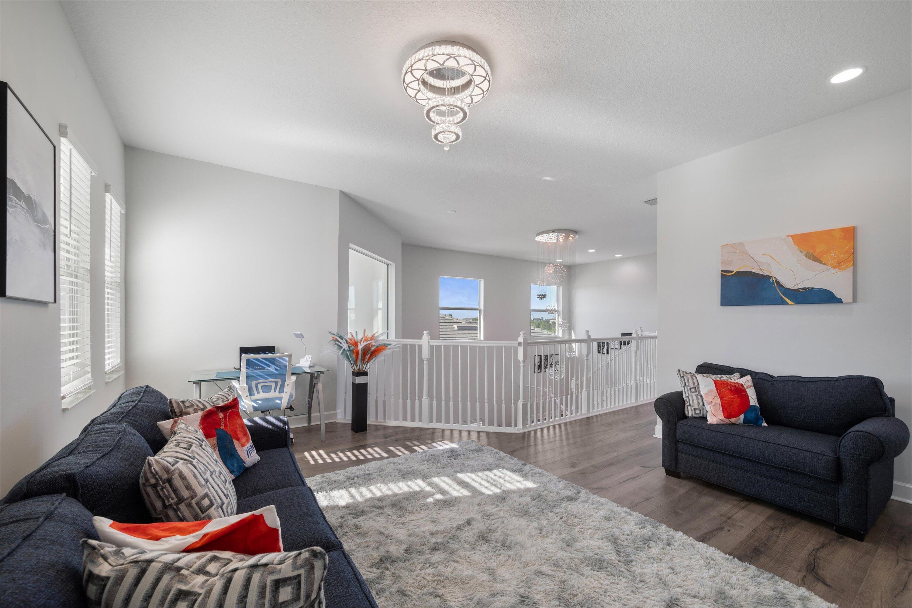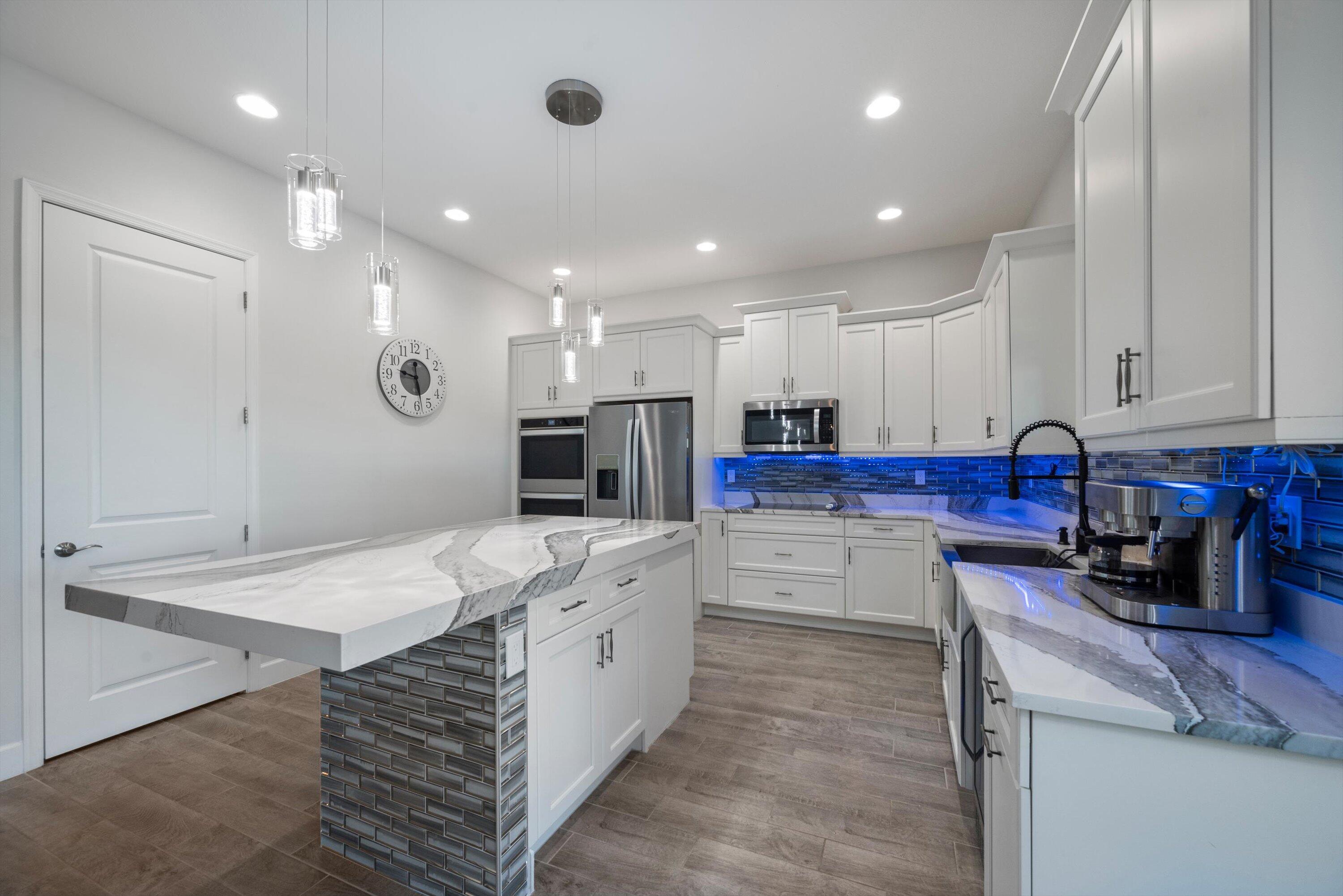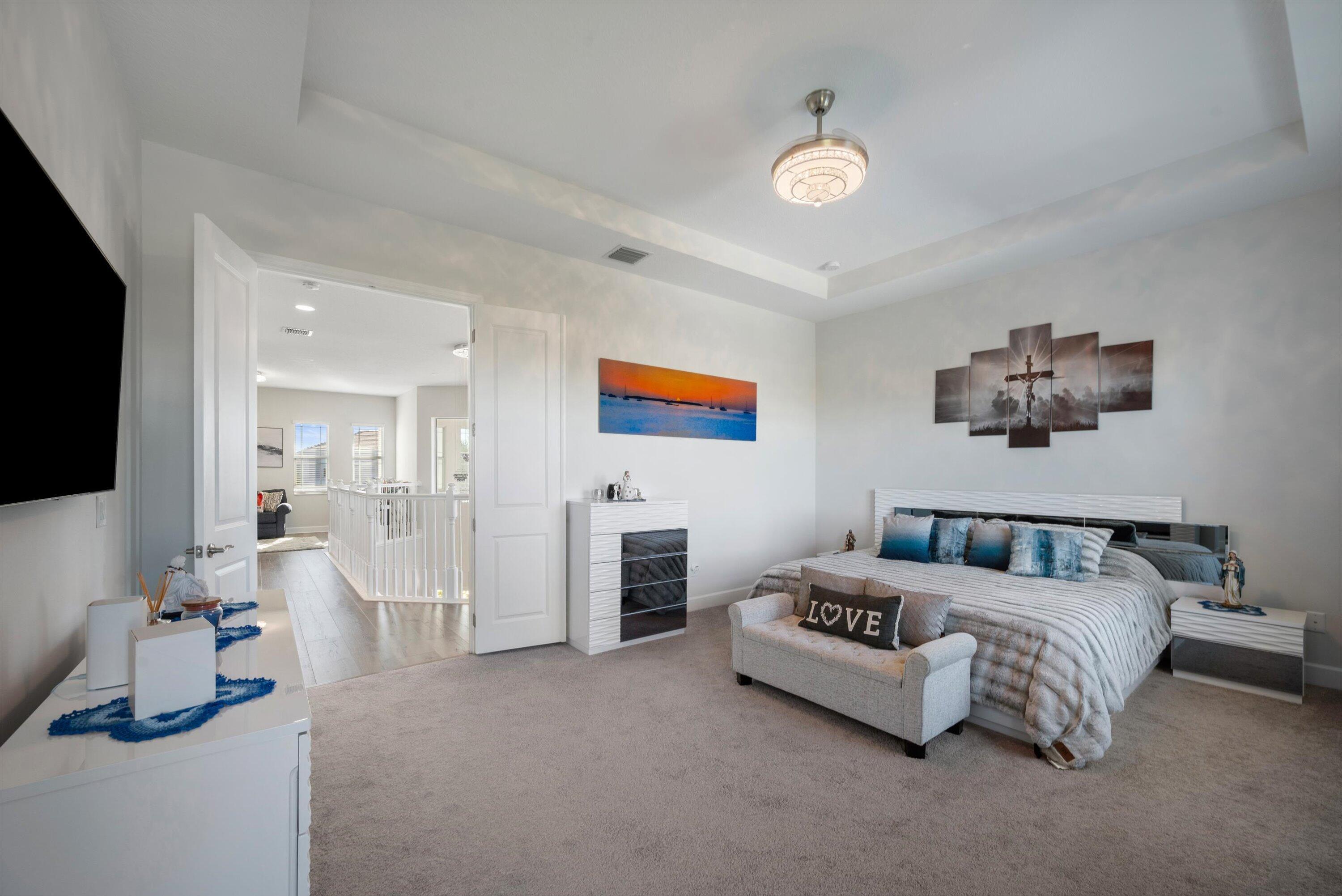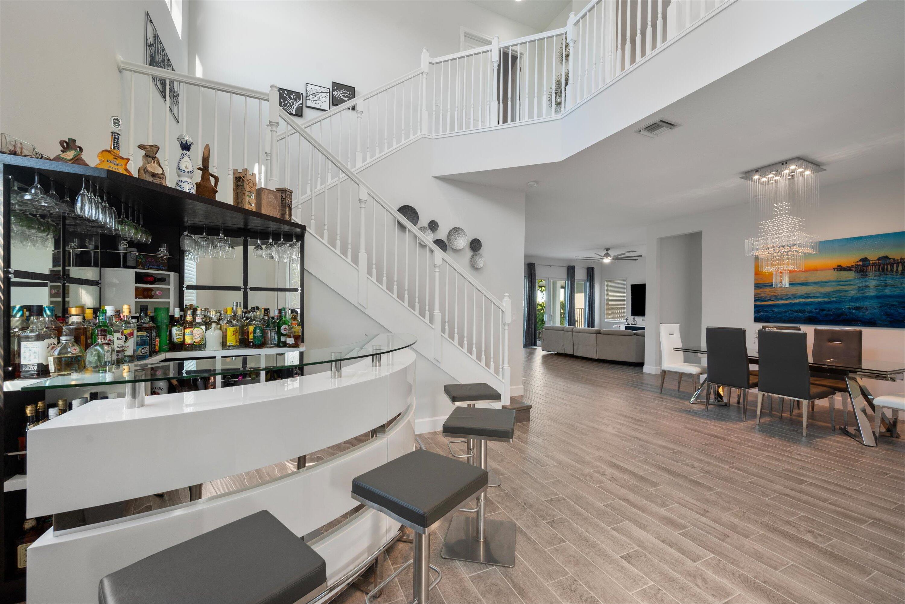 Welcome to this meticulously designed 5-bedroom, 4-bathroom, 3-car garage home located in the highly sought-after community of The Groves at Westlake, offering breathtaking lake views. This impressive Laurel Grand model boasts an open floor plan with soaring high ceilings, creating a spacious and inviting atmosphere throughout. The heart of the home features top-of-the-line stainless steel appliances, sleek quartz countertops, and plenty of storage for the culinary enthusiast. Enjoy peace of mind with premium impact-resistant windows and doors, ensuring safety and energy efficiency. Step outside to your private oasis, featuring a pergola, marble pavers, a custom outdoor kitchen and a large TV - perfect for entertaining or relaxing by the lake. Both front and back yards have beenbeautilandscaped with meticulous attention to detail, adding curb appeal and outdoor elegance. Experience the vibrant Westlake community, filled with amenities designed to enhance your lifestyle. Enjoy a resort-style pool complete with a 3-story water slide and splash pad, a snack shack, an outdoor concert pavilion, basketball courts, an adult swimming pool, and a playground. For your furry companions, the dog park provides a perfect space to run and play. Stay active on the new fitness trail featuring 9 obstacles or visit the BMX park for some exhilarating fun. You'll also have access to Westlake's highly acclaimed A-rated schools, ensuring exceptional education and enriching opportunities.