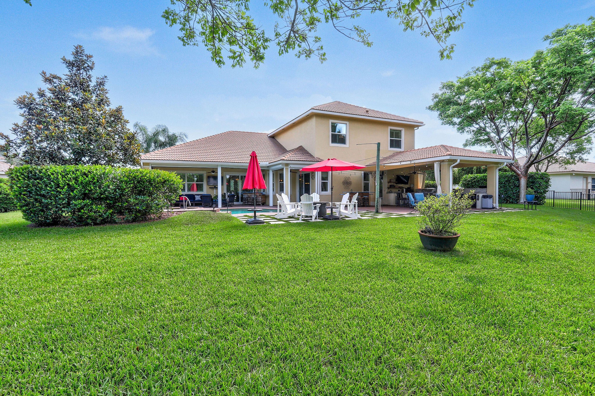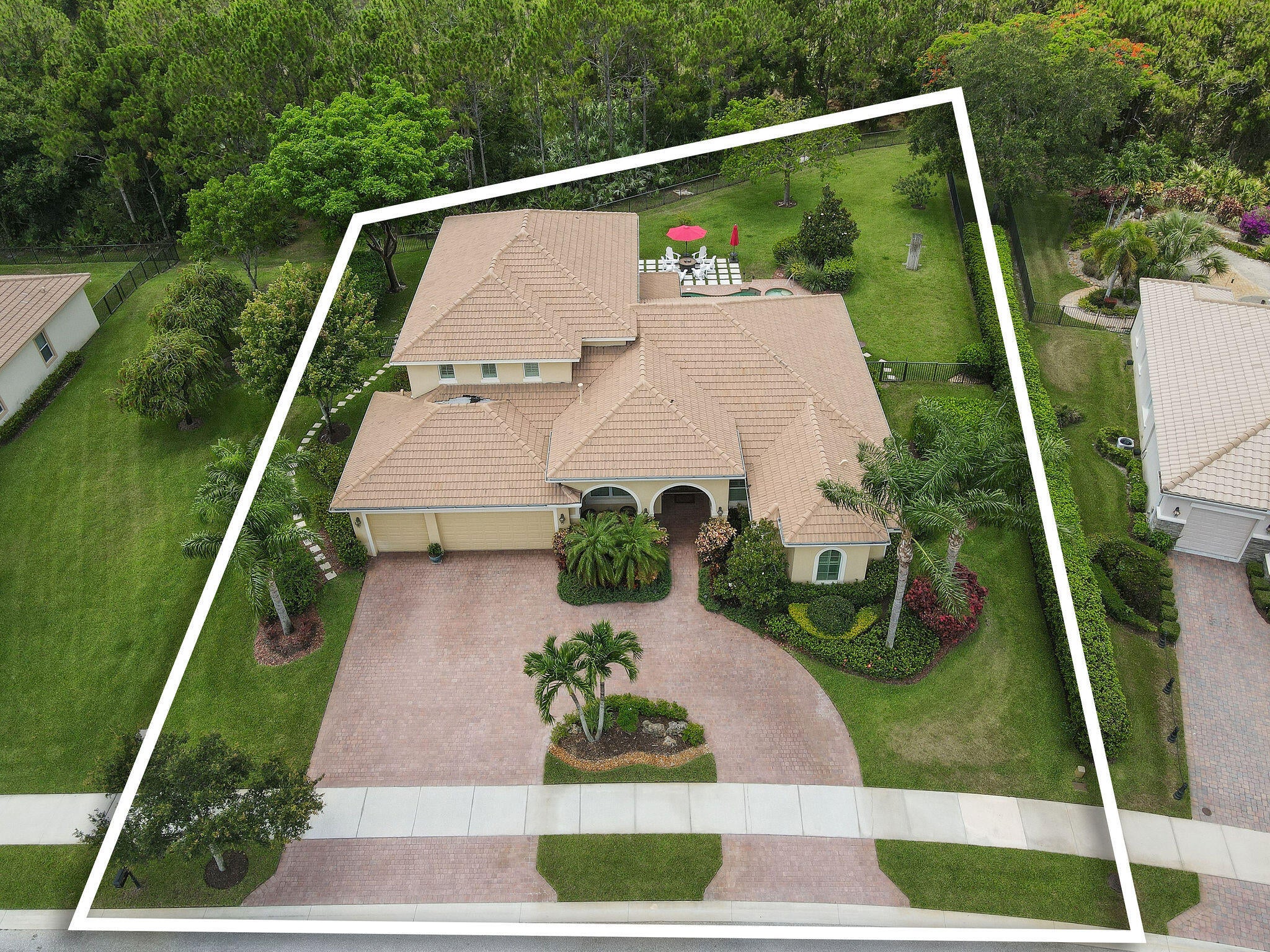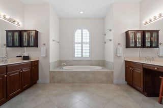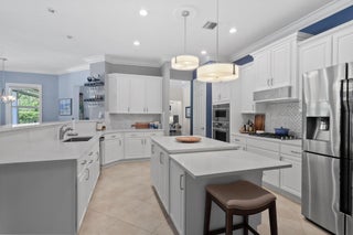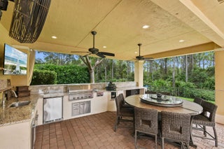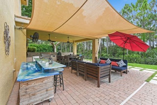 Spacious 5BR/4BA home with 4,000+ SF in the desirable gated community of Tres Belle. Impeccably maintained and ideal for entertaining, it features a massive covered outdoor addition with a top-tier summer kitchen, plus expanded patios perfect for year-round enjoyment. The private fenced yard backs to serene Pine Hammock views. Inside boasts a fully remodeled gourmet kitchen with Wolf gas cooktop, quartz counters, coffee bar, and two large pantries. Flooring includes timeless 20'' tile and new high-performance designer flooring. Primary and guest suites are on the main floor. Enjoy 3-zone A/C, Generac generator, and countless upgrades. See ''more'' for a full list.Interior: "2021 Kitchen. White Cabinets/painted. Wolf Gas Cooktop, Gourmet Oven, and Speed Oven (microwave- convection combo) New quartz countertops. Expanded Island features Pie Rolling area and 2 appliance pop ups for Mixer and Food Processor. GE SS DW. Fridge is SS Samsung. Wine cooler added in 2021. "Hot/Cold water hookup under kitchen island, if new owner wants to add sink. "Coffee Bar added in 2018 on wall next to pantry. "Custom Shelving in Walk-in Pantry. - Features additional under stairs storage. 2 pantries. "Kitchen banquette storage under seats "Crown Molding entire main floor "Tray Ceiling in Dining Room, Living Room, and Primary Bedroom "Added a 3rd AC unit for Primary Bedroom and office. (Located in one of the Primary closets) "Main and Upstairs Lennox HVAC systems with air cleaner replaced 2023. "Primary bedroom has two Custom Closets with built in drawers and shelves. "Toto WASHLET toilet in baster bath. "Updated stairway "Upstairs Bedroom has a walk-in closet with custom shelving. "Loft upstairs set up as media room for movies and sports entertainment. "All Bedrooms, office and stairs have newly installed designer high performance flooring ($15,000) "Main living area and all Baths Tile. "Plantation Shutters in all bedrooms "Garage 2 Ceiling mounted Storage racks. "ADT alarm system "Taexx built-in pest control system (in wall tube system) Front Exterior "Front Doors Iron and Impact Glass. "Motion sensor light at front door. "Circular driveway Backyard Entertainment Area "Pool/Hot Tub - Salt System Aqua Link System Colored Lights - Heated/Gas (2015). Pool and Hot Tub each have a safety handrail. "Outdoor kitchen Covered 16'x22' Green Egg, 2 Burner Gas Stove, Refrigerator, Sink w/ Hot/Cold Water, 36" Gas Grill, Large Under sink Storage, Pullout Garbage, Drawer and cabinet storage under grill. All SS. Granite counter tops. 2019. ($75,000) "Total of 4 ceiling fans in lanai and outdoor kitchen, plus one large, high velocity oscillating Fan in Kitchen area. "Sail Shade covers another 20'x 22' area with string lights. 2019 "All Season Motorized Hurricane Shades for Large Lanai Area. 2021 ($30,000) "Outdoor kitchen has hurricane only shades that need to be fitted via toggle bolts. Easy up and down installation to cover 2 complete sides and the side with countertop. 2019 ($7,500) "Additional Water and Gas Hookups on side of Primary Bedroom to add fireplace or additional kitchen. Yard/Exterior/Generator "2 Outside TV's staying "Backyard Perimeter Fence "Preserve view from back yard, additional fence gate to Preserve area. Beautiful pine hammock w/ deer. "Privacy Hedges both sides of the back yard. "Well for irrigation "Generac Generator for Kitchen Appliances, Pool, Downstairs AC and downstairs lights. 2014 ($9,000 - Natural gas, runs every week. Service contract, 2X per year). "Improved gutter system, added to total perimeter.