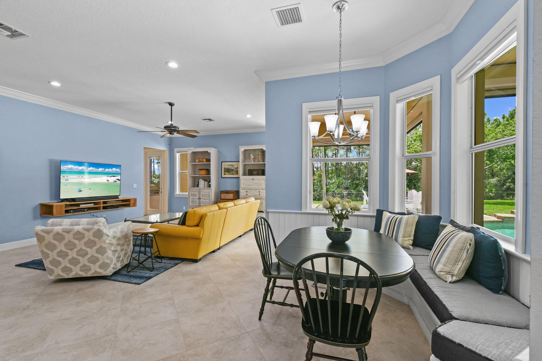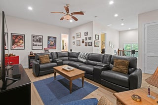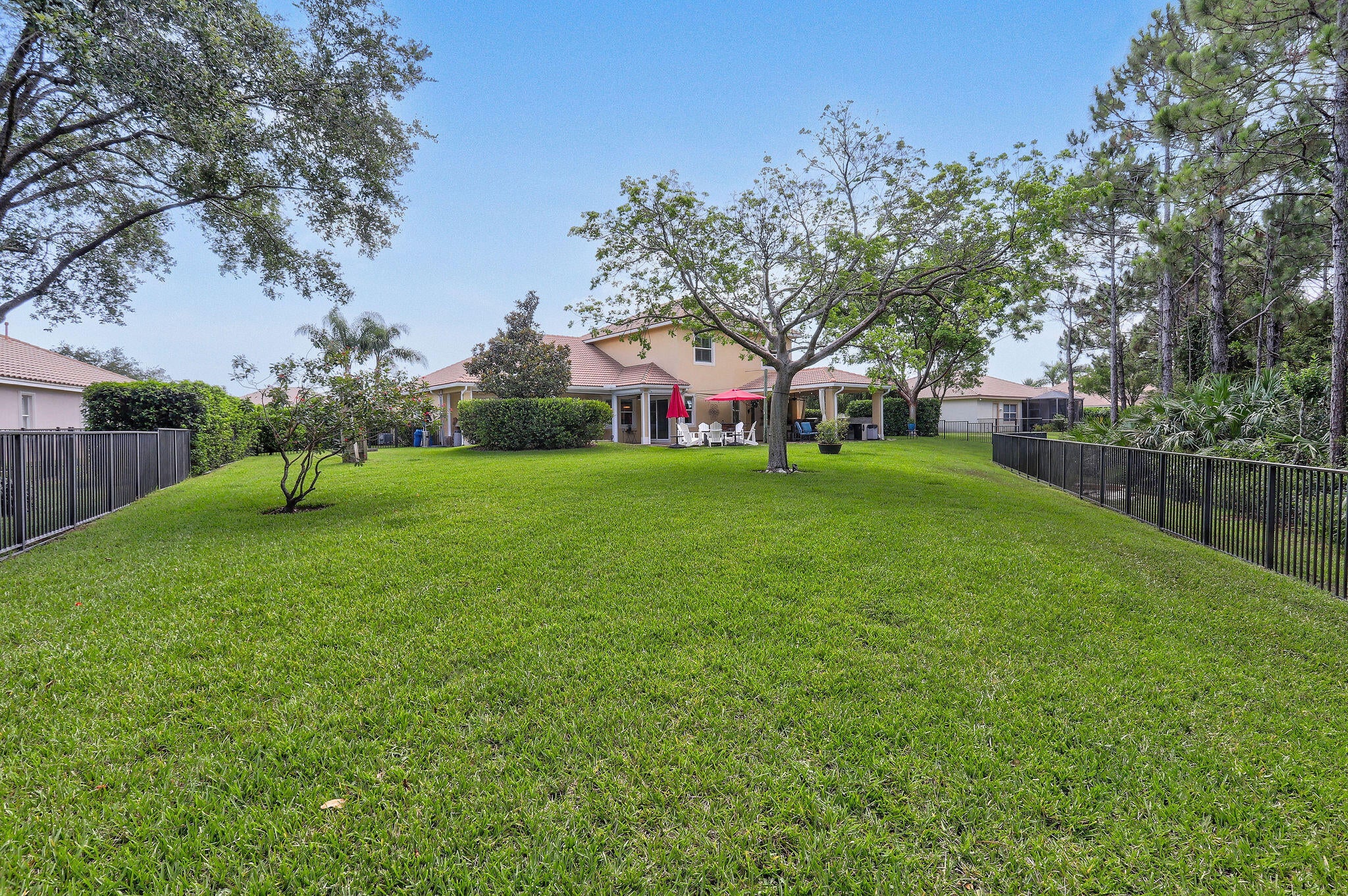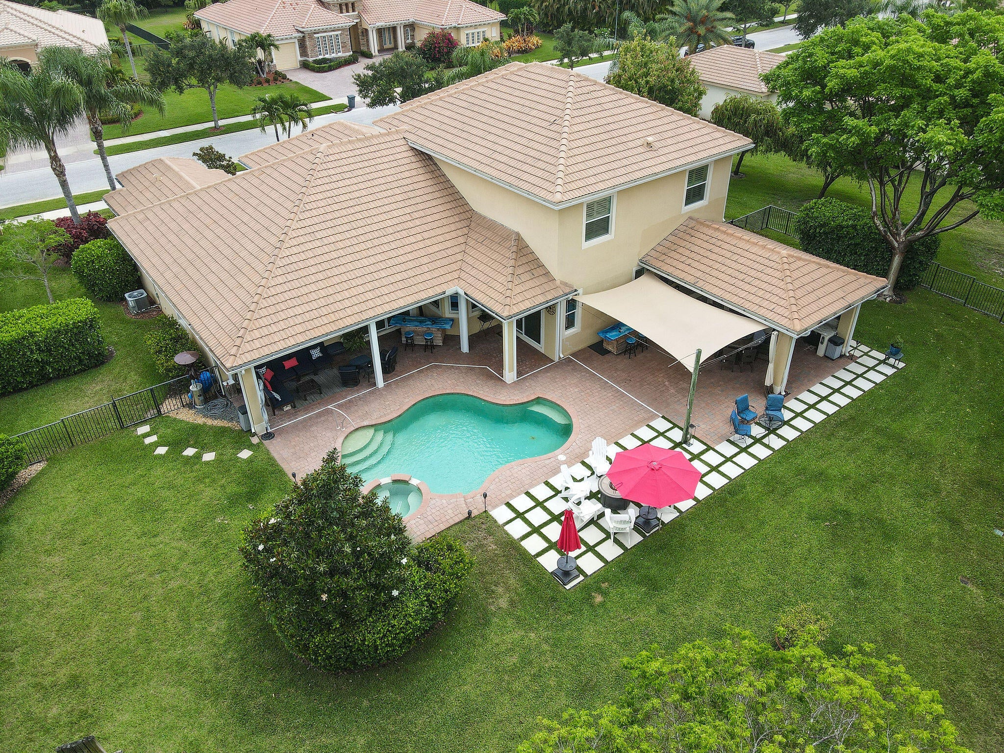 Spacious 5BR/4BA home with 4,000+ SF in the desirable gated community of Tres Belle. Impeccably maintained and ideal for entertaining, it features a massive covered outdoor addition with a top-tier summer kitchen, plus expanded patios perfect for year-round enjoyment. The private fenced yard backs to serene Pine Hammock views. Inside boasts a fully remodeled gourmet kitchen with Wolf gas cooktop, quartz counters, coffee bar, and two large pantries. Flooring includes timeless 20'' tile and new high-performance designer flooring. Primary and guest suites are on the main floor. Enjoy 3-zone A/C, Generac generator, and countless upgrades. See ''more'' for a full list.Interior: "2021 Kitchen. White Cabinets/painted. Wolf Gas Cooktop, Gourmet Oven, and Speed Oven (microwave- convection combo) New quartz countertops. Expanded Island features Pie Rolling area and 2 appliance pop ups for Mixer and Food Processor. GE SS DW. Fridge is SS Samsung. Wine cooler added in 2021. "Hot/Cold water hookup under kitchen island, if new owner wants to add sink. "Coffee Bar added in 2018 on wall next to pantry. "Custom Shelving in Walk-in Pantry. - Features additional under stairs storage. 2 pantries. "Kitchen banquette storage under seats "Crown Molding entire main floor "Tray Ceiling in Dining Room, Living Room, and Primary Bedroom "Added a 3rd AC unit for Primary Bedroom and office. (Located in one of the Primary closets) "Main and Upstairs Lennox HVAC systems with air cleaner replaced 2023. "Primary bedroom has two Custom Closets with built in drawers and shelves. "Toto WASHLET toilet in baster bath. "Updated stairway "Upstairs Bedroom has a walk-in closet with custom shelving. "Loft upstairs set up as media room for movies and sports entertainment. "All Bedrooms, office and stairs have newly installed designer high performance flooring ($15,000) "Main living area and all Baths Tile. "Plantation Shutters in all bedrooms "Garage 2 Ceiling mounted Storage racks. "ADT alarm system "Taexx built-in pest control system (in wall tube system) Front Exterior "Front Doors Iron and Impact Glass. "Motion sensor light at front door. "Circular driveway Backyard Entertainment Area "Pool/Hot Tub - Salt System Aqua Link System Colored Lights - Heated/Gas (2015). Pool and Hot Tub each have a safety handrail. "Outdoor kitchen Covered 16'x22' Green Egg, 2 Burner Gas Stove, Refrigerator, Sink w/ Hot/Cold Water, 36" Gas Grill, Large Under sink Storage, Pullout Garbage, Drawer and cabinet storage under grill. All SS. Granite counter tops. 2019. ($75,000) "Total of 4 ceiling fans in lanai and outdoor kitchen, plus one large, high velocity oscillating Fan in Kitchen area. "Sail Shade covers another 20'x 22' area with string lights. 2019 "All Season Motorized Hurricane Shades for Large Lanai Area. 2021 ($30,000) "Outdoor kitchen has hurricane only shades that need to be fitted via toggle bolts. Easy up and down installation to cover 2 complete sides and the side with countertop. 2019 ($7,500) "Additional Water and Gas Hookups on side of Primary Bedroom to add fireplace or additional kitchen. Yard/Exterior/Generator "2 Outside TV's staying "Backyard Perimeter Fence "Preserve view from back yard, additional fence gate to Preserve area. Beautiful pine hammock w/ deer. "Privacy Hedges both sides of the back yard. "Well for irrigation "Generac Generator for Kitchen Appliances, Pool, Downstairs AC and downstairs lights. 2014 ($9,000 - Natural gas, runs every week. Service contract, 2X per year). "Improved gutter system, added to total perimeter.