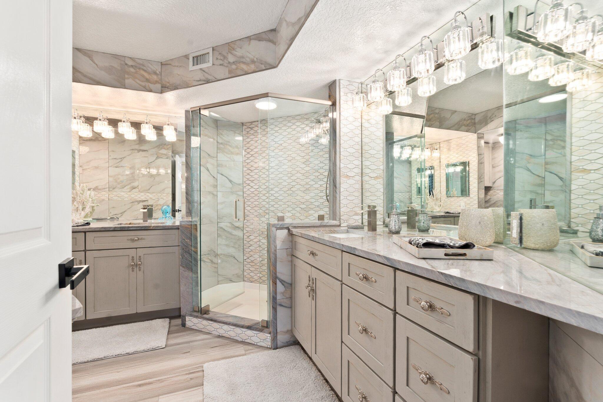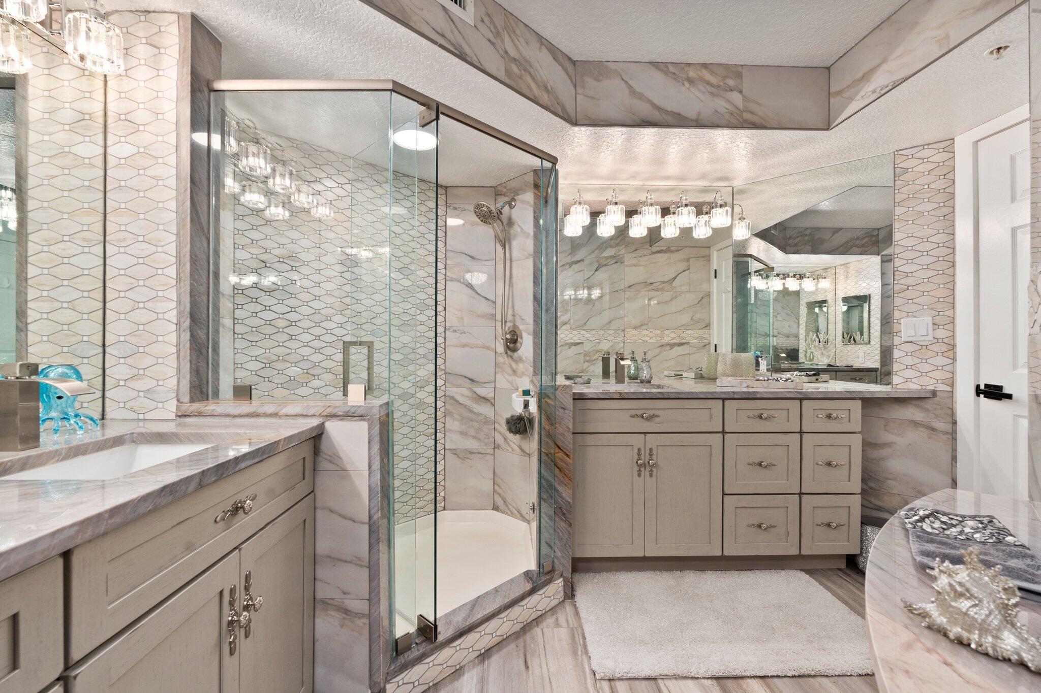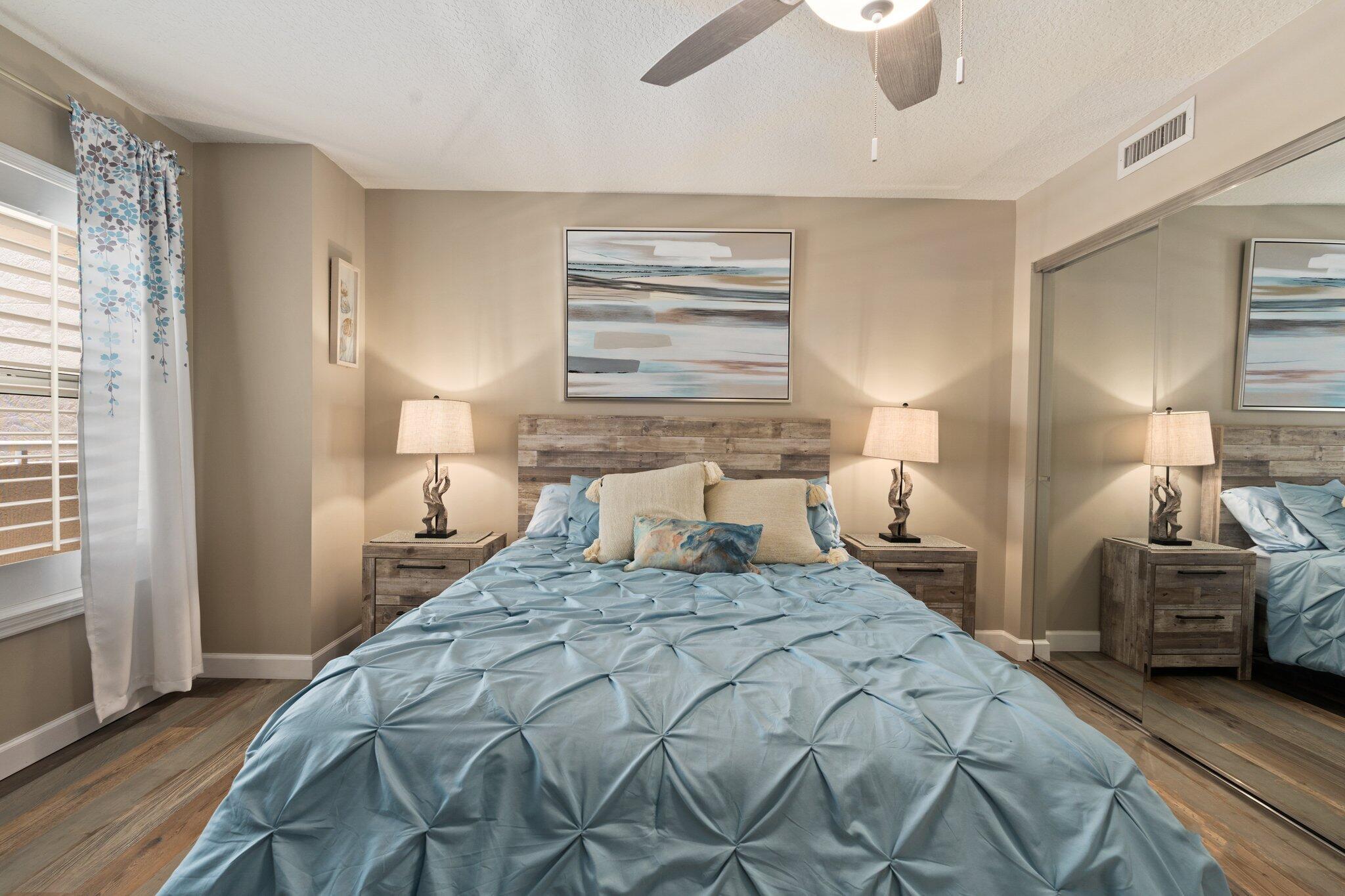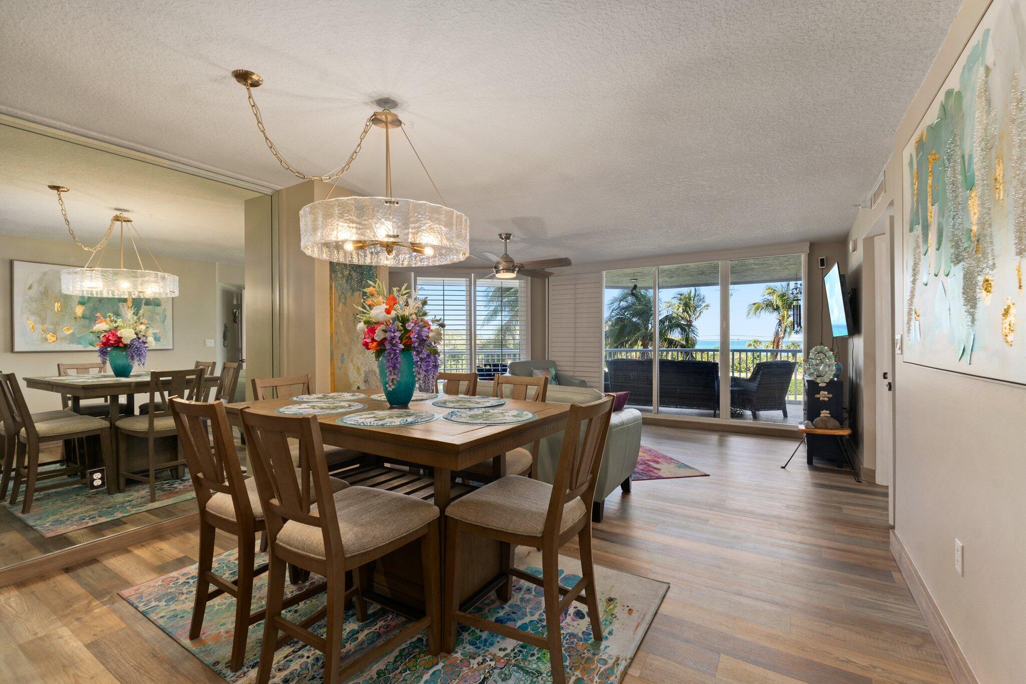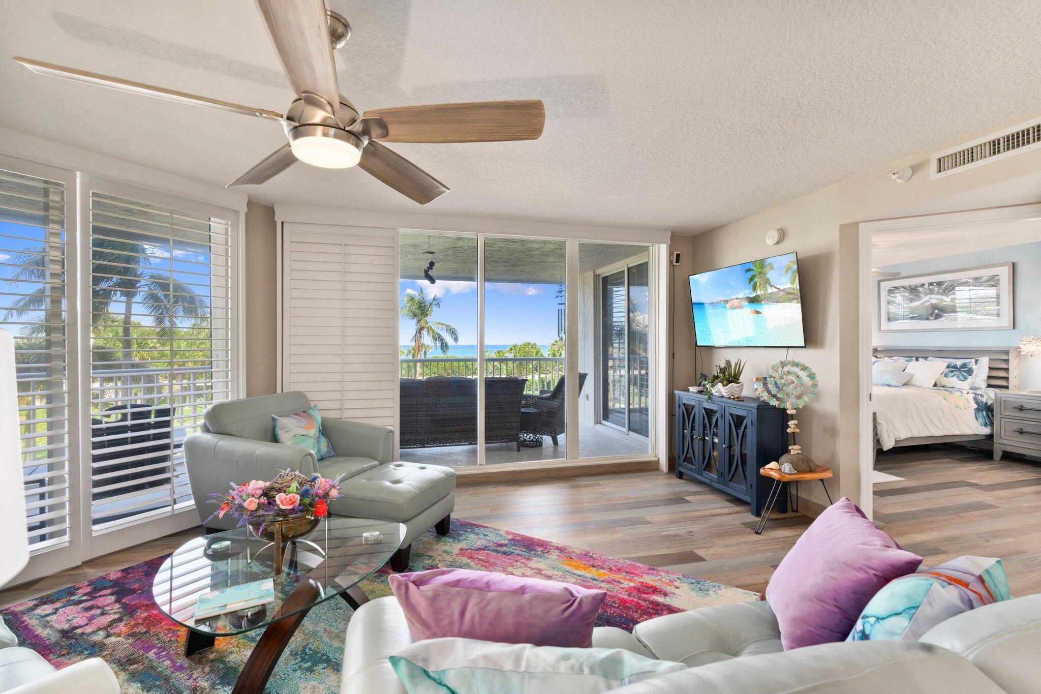 No surface has been left untouched, no detail left undone. Custom woodwork & a remarkable kitchen w/ Kraftmade cabinetry, stunning Brazilian quartzite w/ complimentary glass tile backsplash topped off w/ Seahorse pulls. The appliances are all new. Primary bathroom has breathtaking Aurora blue marble along w/ floor to ceiling porcelain tile adorned w/ marble trim. Floors have been replaced w/ a dry core luxury vinyl. Plantation shutters have been added throughout. Lighting & fans updated w/ high quality fixtures. The furnishings are the icing on the cake, so well appointed there is nothing for you to do but slip into this paradise. Covered carport incl. Seaward offers a clubhouse, resort pool, private beach access, tennis, pickle ball, shuffleboard, gym, sauna, billiards & kayak launch.